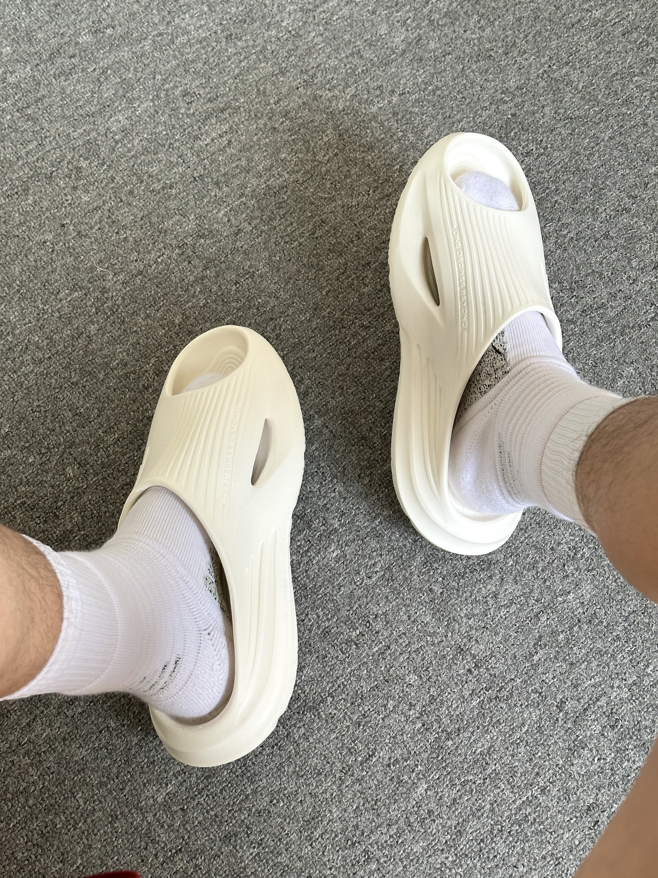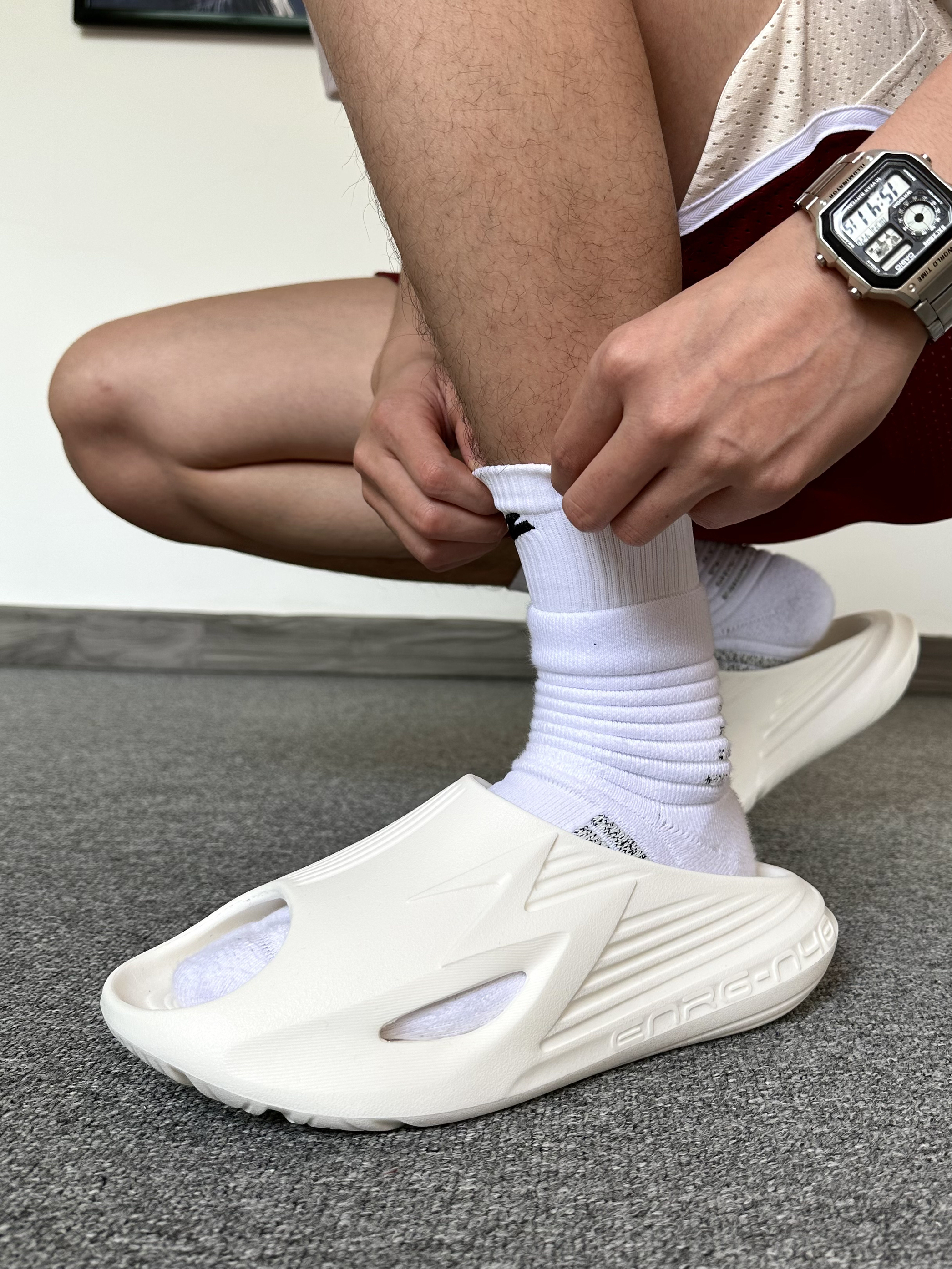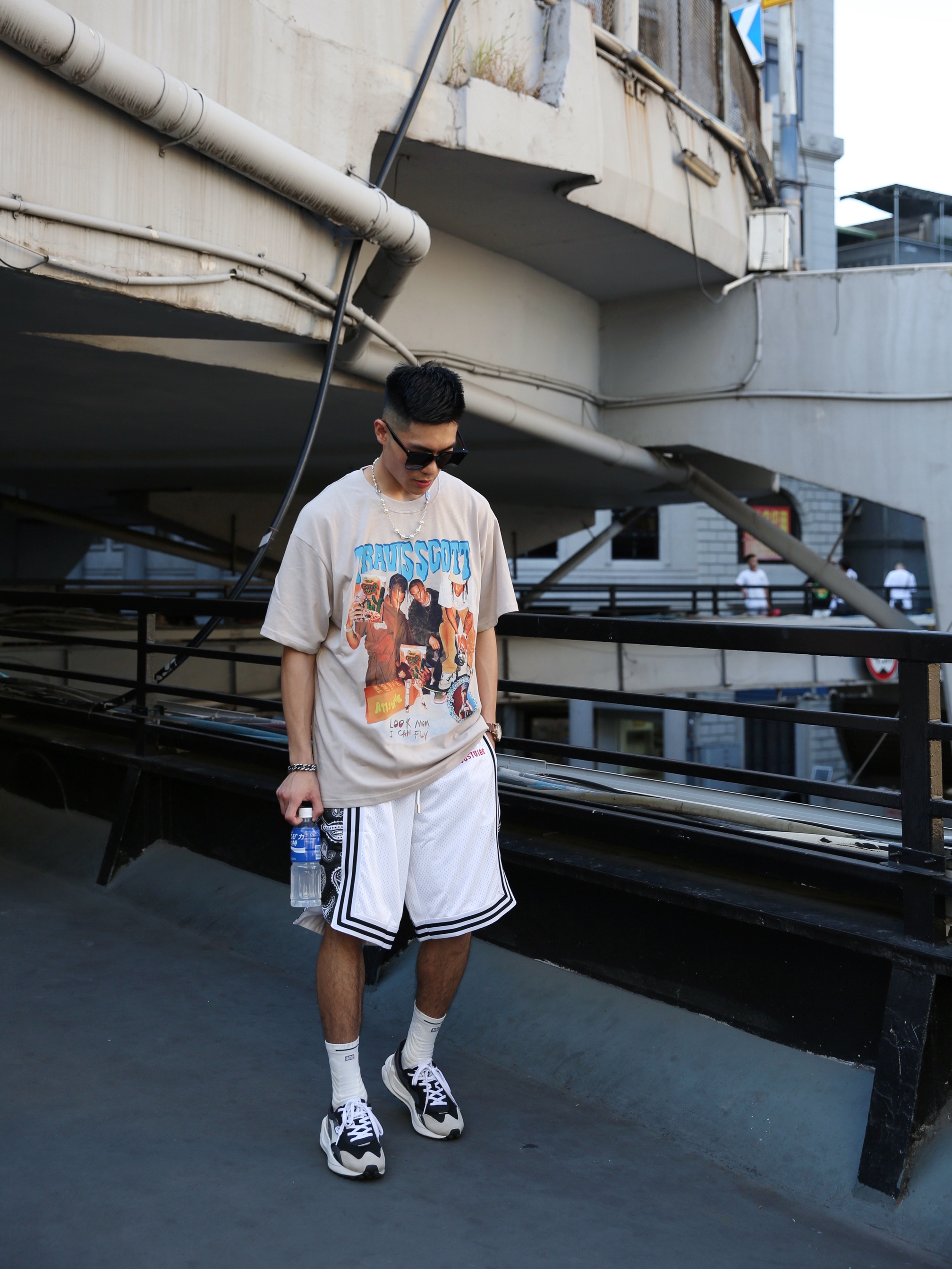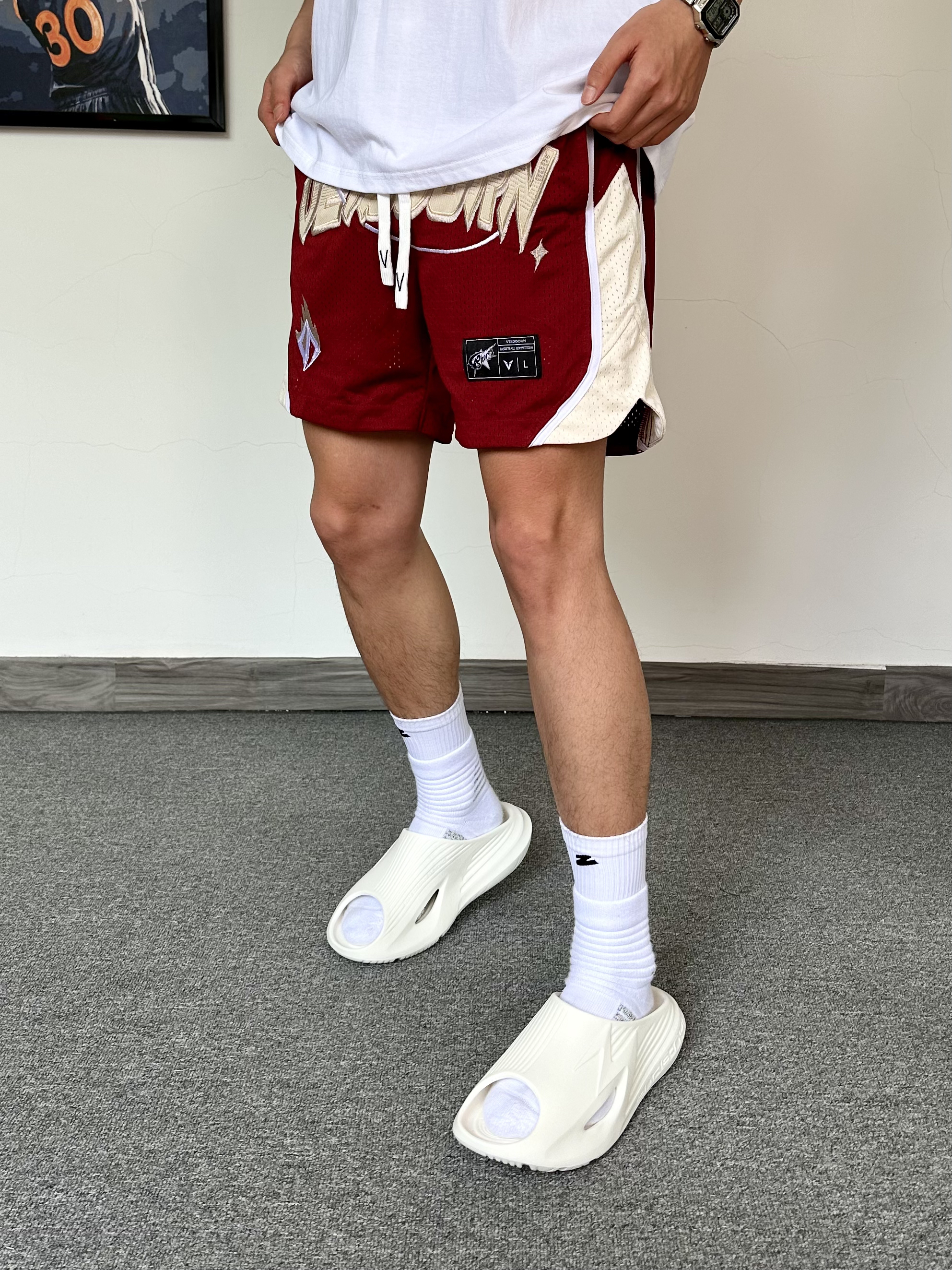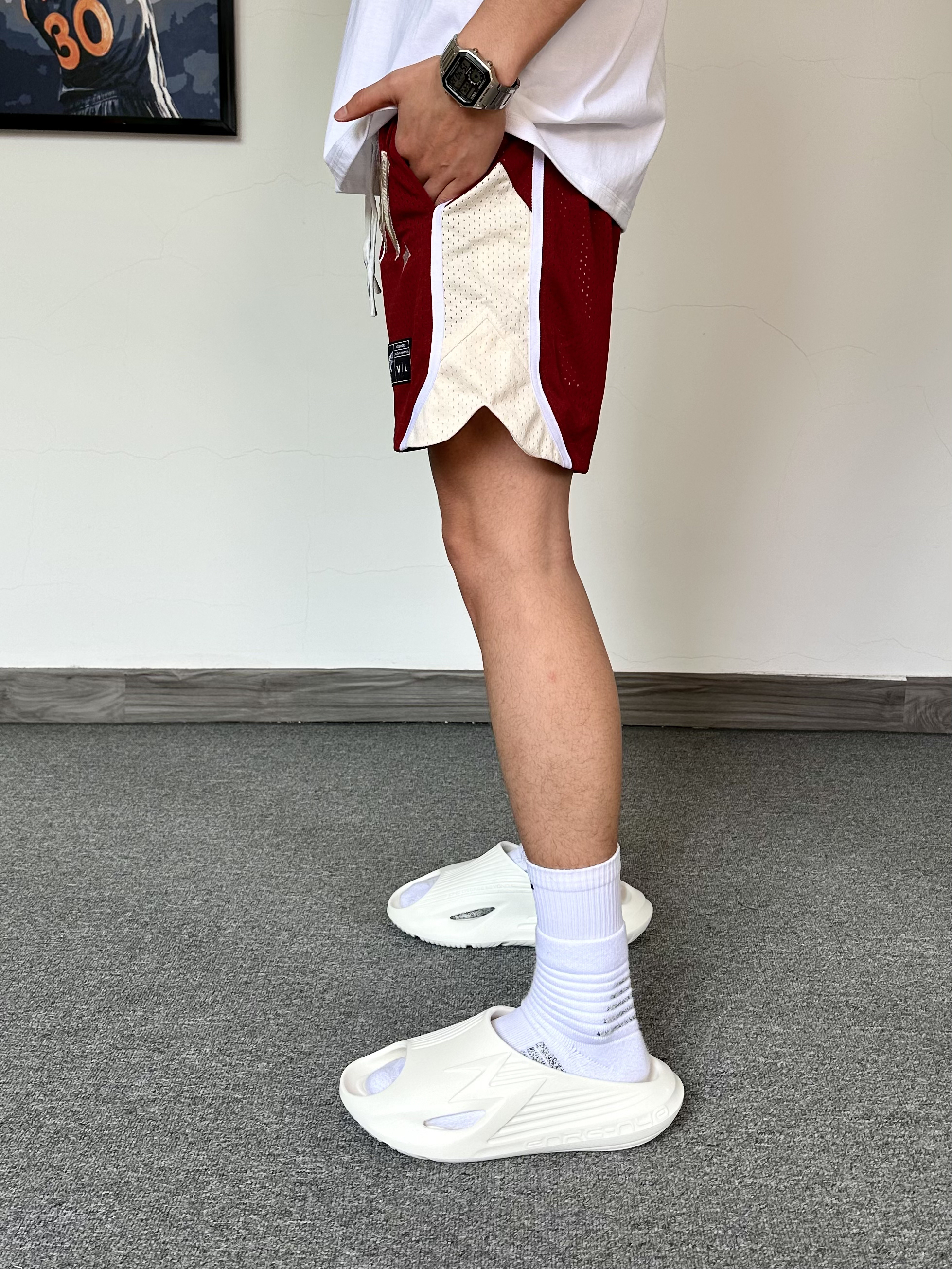美式穿搭的尽头就是拖鞋配篮球袜 真的不要太舒服 夏天这样穿,吸汗又舒适 帅气又百搭! 一整个阳光又清爽 红色复古美式短裤 也是运动感十足!