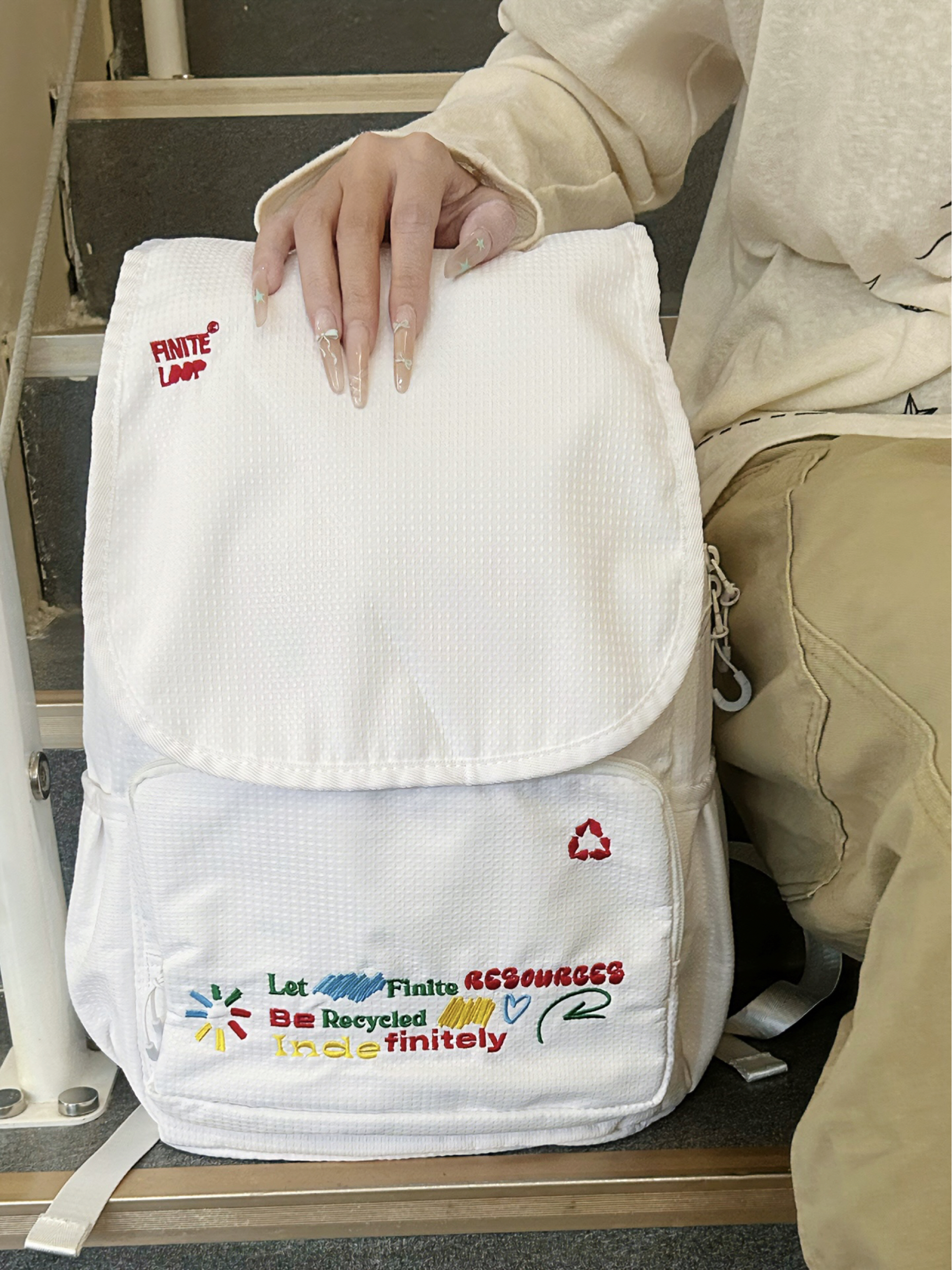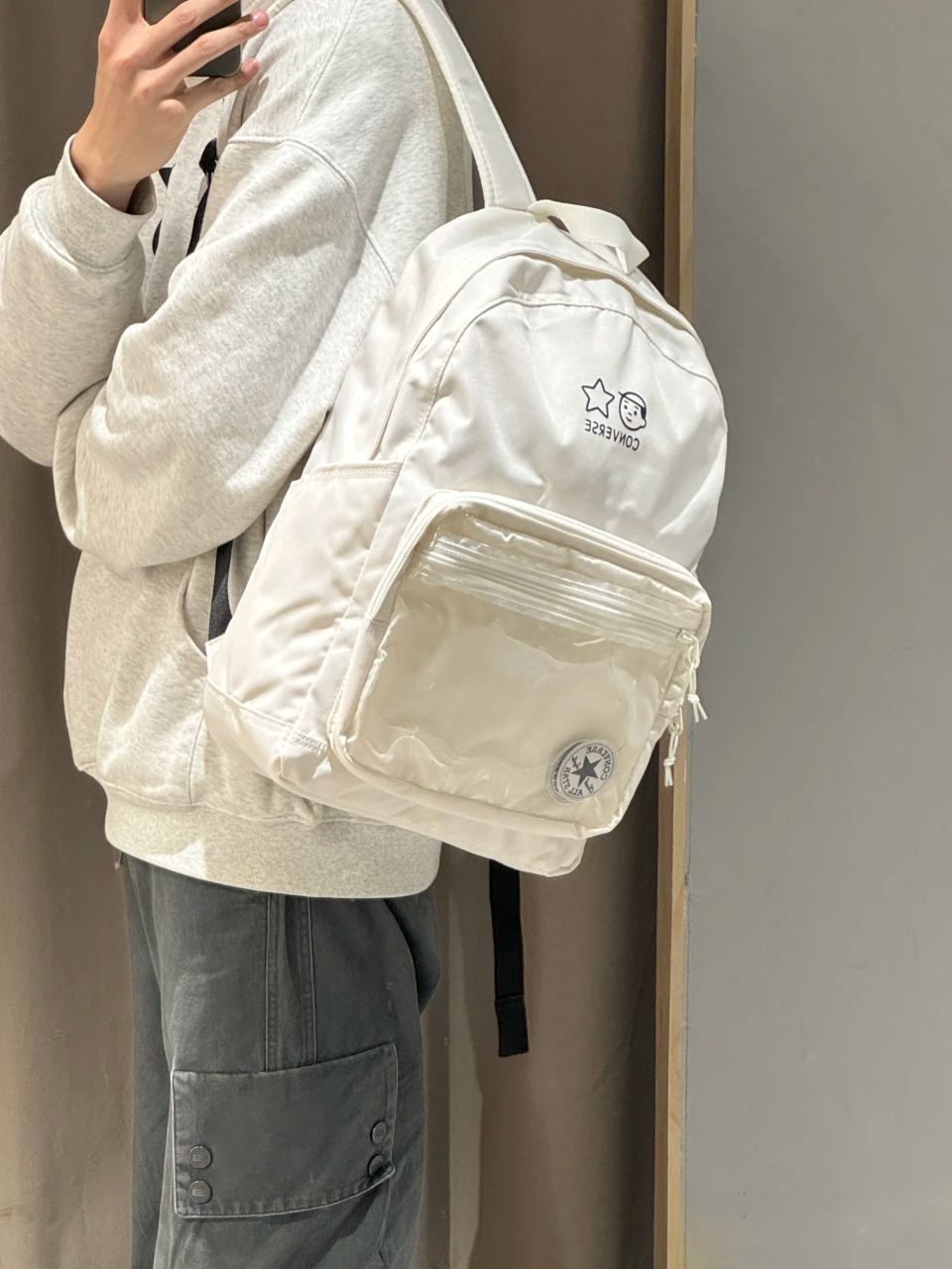 准女高不骗任何人!这个双肩包超级超级好看,并且很能装有22升,非常适合学生党,很清纯der~ 布料是防水的,虽然是白色的但是没有那么容易脏。 准高三生实锤这个书包很能装。 总之我认为这个双肩包很值得购买滴!可以当旅游背包,也可以学生日常背。