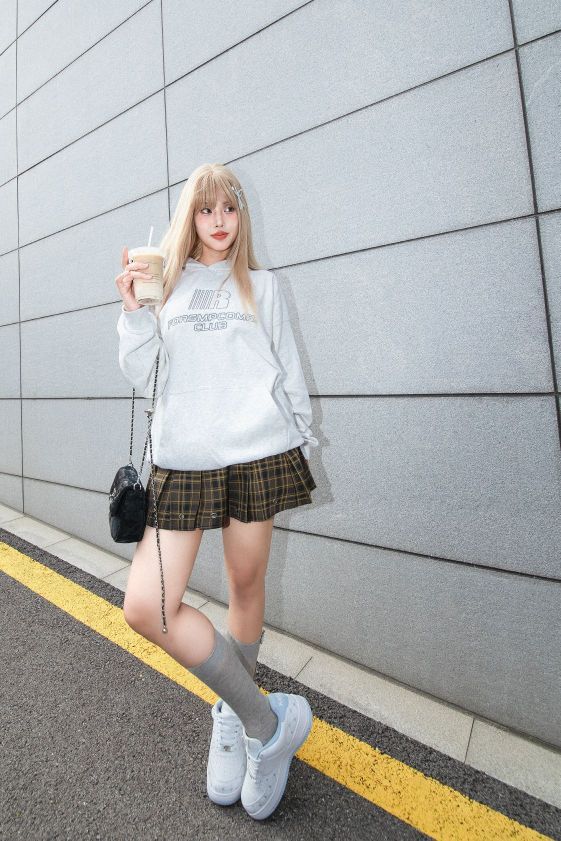 美式休闲卫衣搭配复古百褶裙 随意自在的卫衣版型真的很喜欢 字母印花永不过时的款式 - 鞋子选择一双蓝白配色小白鞋 干净清爽又有一定的设计感 整体色彩和谐,自带美式校园风 - 黑色菱格包让整体穿搭更具时尚性 一整个高级有气质 斜挎单肩可以随意切换都ok! - 包包:BETTINA VIVIAN 卫衣:FDR 鞋子:Kappa
