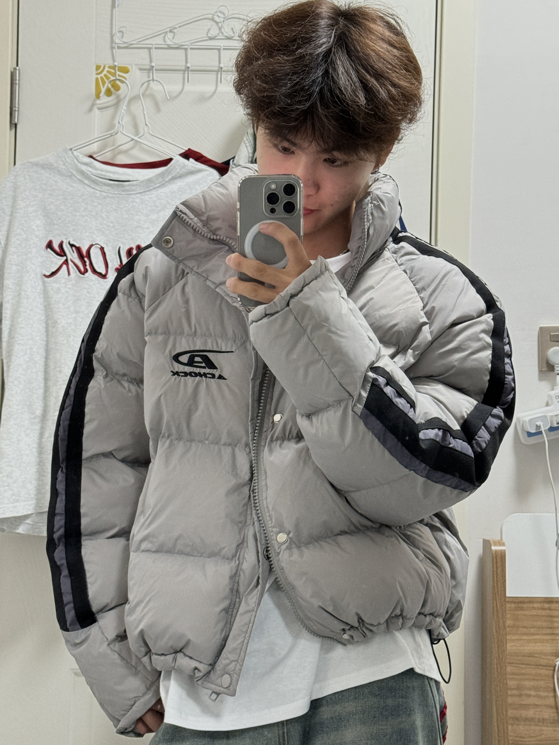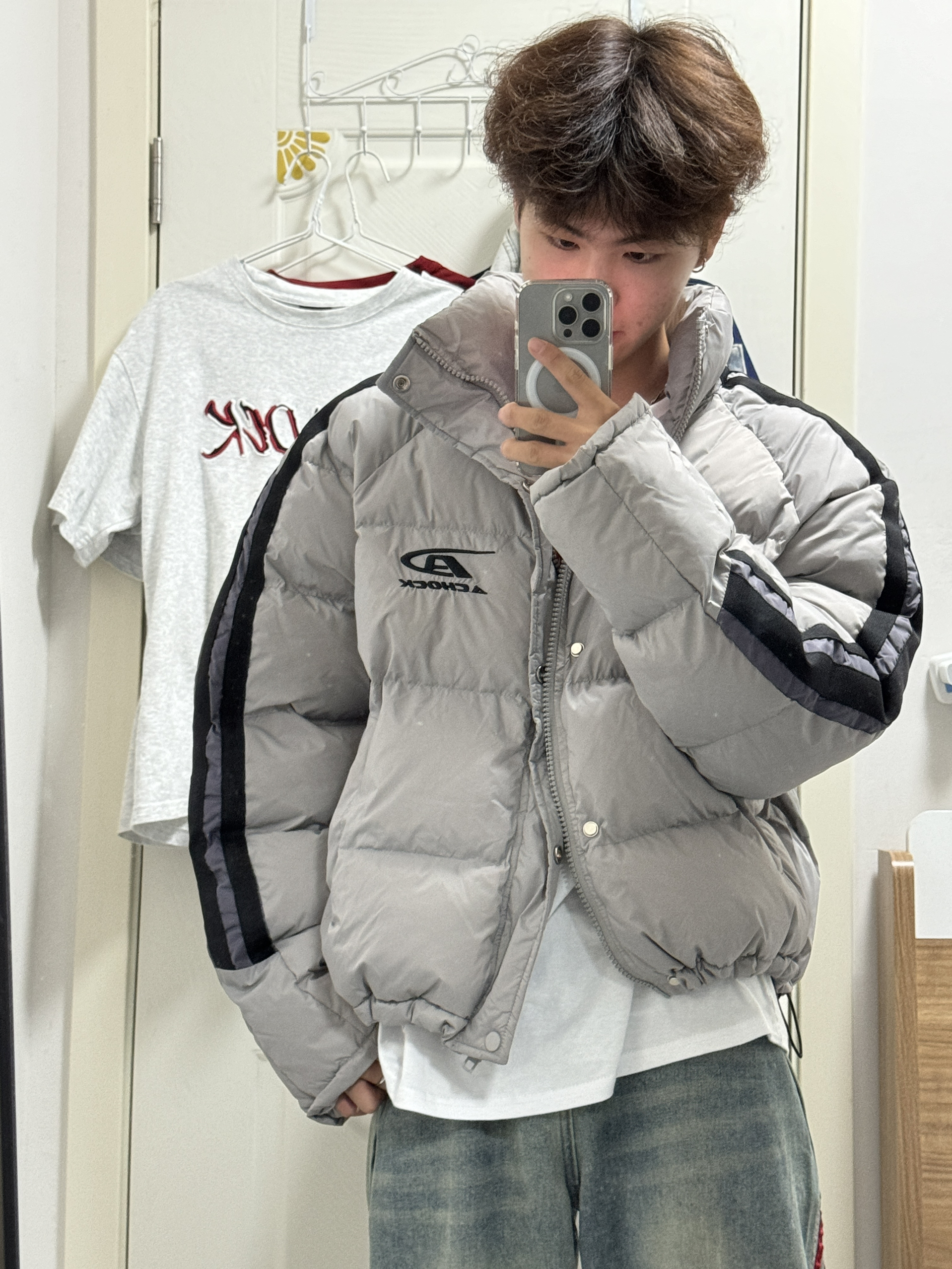 这不是趁着夏天的时候来捡漏 ac的爆款棉服在夏天买真的很划算 拼接的配色简约大气 棉服充绒量高穿起来没有那种臃肿的感觉 里面自带的小香片真的怪香的嘞 洗了几水也没有出现跑棉的现象呢 我174/105 穿L码宽松 喜欢的兄弟们快来试试吧