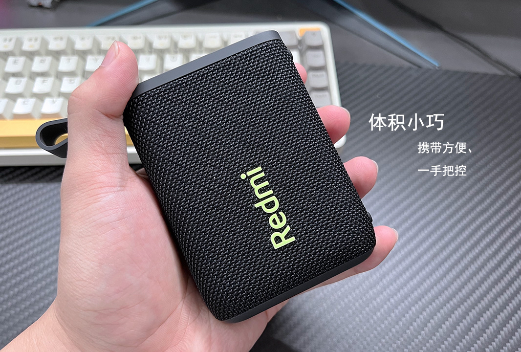 上周和朋友出去野炊,找了个好地方,山清水秀,玩的比较开心,但是回来细想,总是感觉缺点什么,原来是缺少了音乐,于是最近下单入手了Redmi的这个户外蓝牙音箱,100块不到,性价比高。 配色上,官售有三种颜色,黑、橙、绿,都挺好看,我入手的是黑色的这款; 外观上,这个音箱主打的就是一个小字,摊在手中,和我一个巴掌差不多大,携带起来非常的方便,不占空间;顶端有个一体式的挂带,侧边设计防滑垫,挂起来用,放...