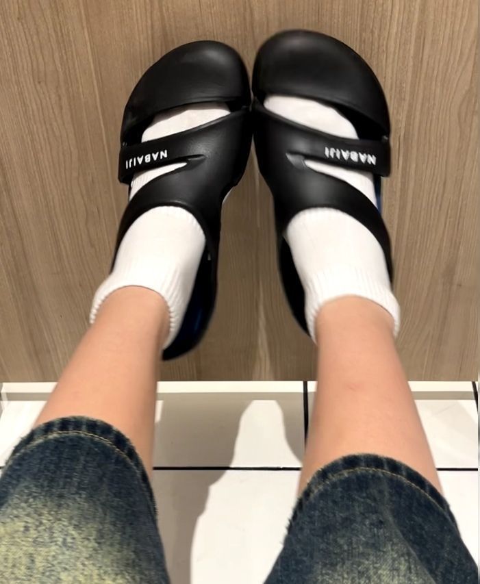本来是做出来的游泳拖鞋 黑篮配色看起来丑萌丑萌的 一眼丑接着越看越顺眼 居然还有点萌 而且这款式还莫名有点机能风 这你受得了吗哈哈哈~ 脚感很棒重量超轻踩上去很软乎 感觉就像踩在棉花糖上柔软有弹性 居家穿或者下楼遛弯拿快递都很可 光腿穿或者搭个袜子出门逛街也很奈斯~ 搭配得当的话解锁它的颜值也是妥妥的日系风哇~特别适合海边游泳露营是夏天的好搭子没错啦~