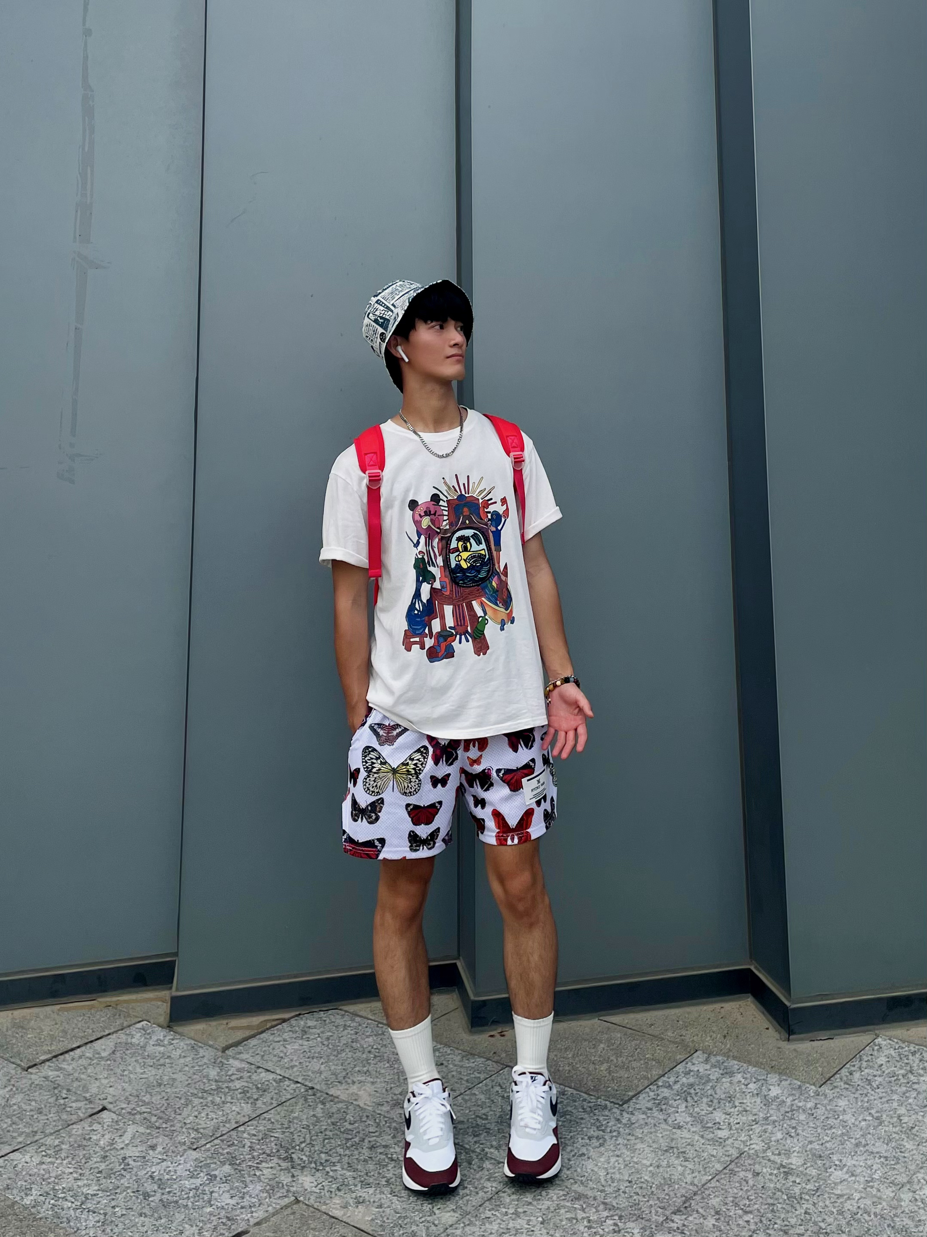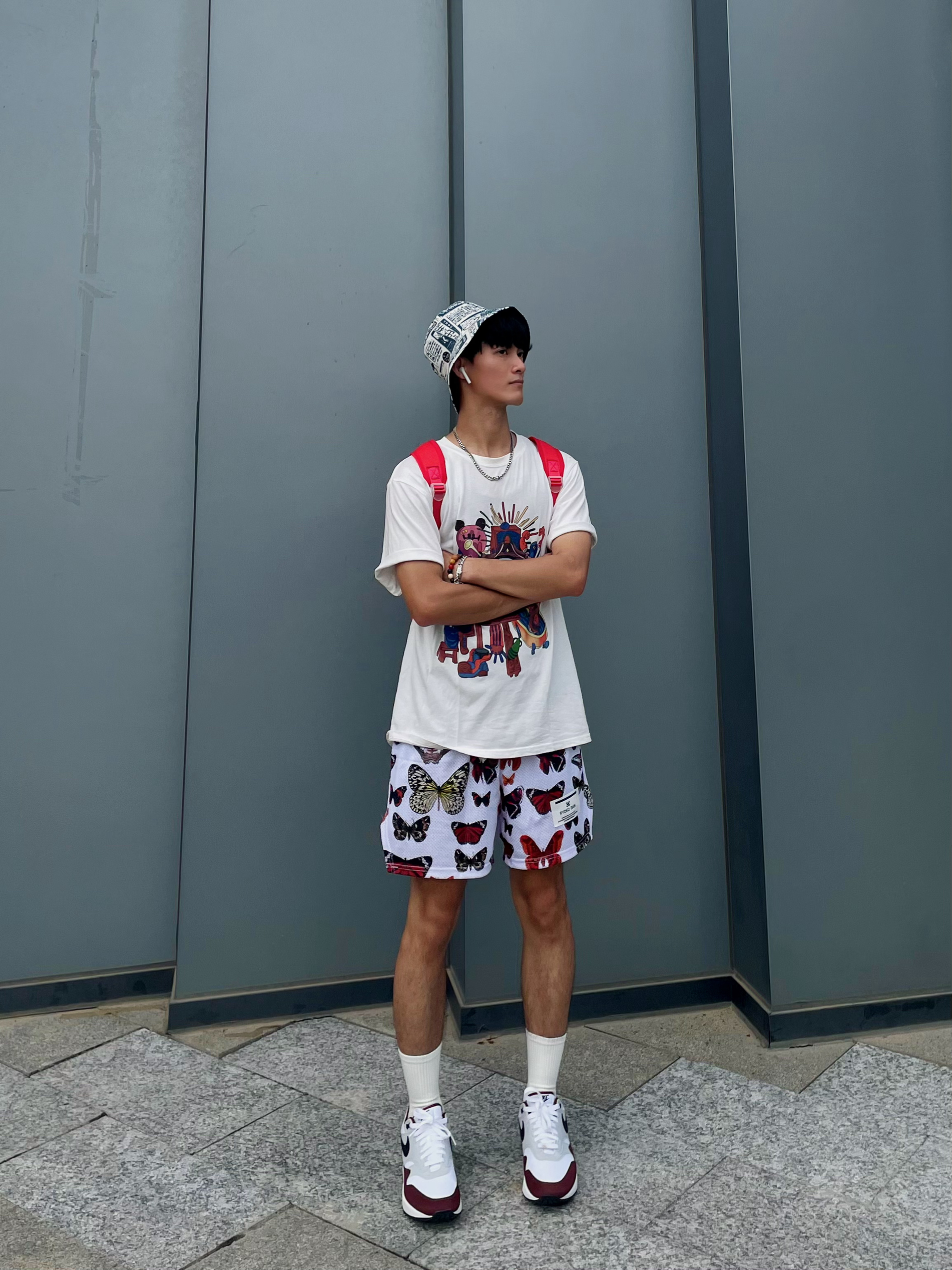 ❤️🔥分享一下今天出行穿搭吧[耍帅_blue] 🪂出门去走走停停,戴画报渔夫帽好有艺术气息 — — — — — — — — — — — — — — — ①OOTD 👕动漫卡通印花圆领T恤,宽松休闲的百搭单品,面料舒适柔软透气性好,夏天穿着搭配就很帅气 — 🩳美式满印蝴蝶短裤,宽松四分不过膝款式,夏季休闲还是打球运动穿搭,网眼速干面料很透气 — 👒日系复古画报双面渔夫帽,休闲百搭春夏遮阳款式,涤...