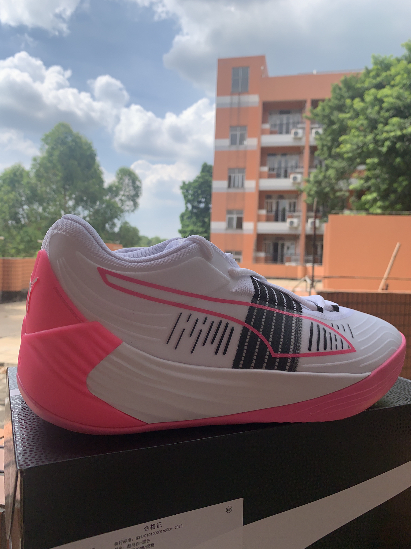 👟球鞋名称:PUMA Fusion Nitro 🔍分享理由:哪个男孩子可以拒绝一双粉色篮球鞋 🤔整体感受:鞋面采用了白色还有一点黑色log采用了粉色鞋底也是采用粉了一直到鞋后跟后跟依旧有一个猎豹的标 帅炸了 篮球鞋中的显眼包喜欢粉鞋的必眼入鞋底橡胶底耐磨防滑后跟包裹性好防侧翻也是挺不错的颜值实战并存快叫你们的对象也安排