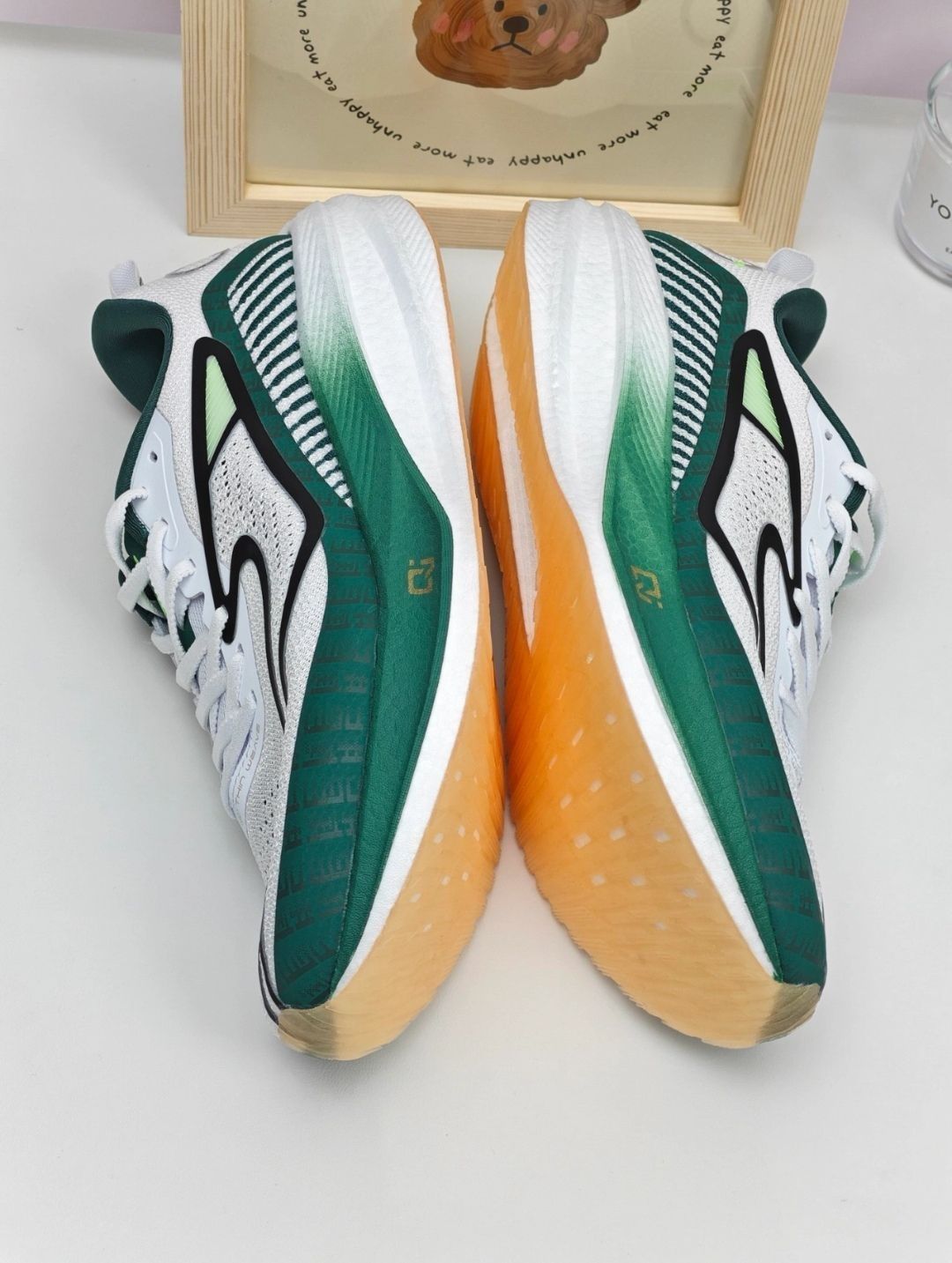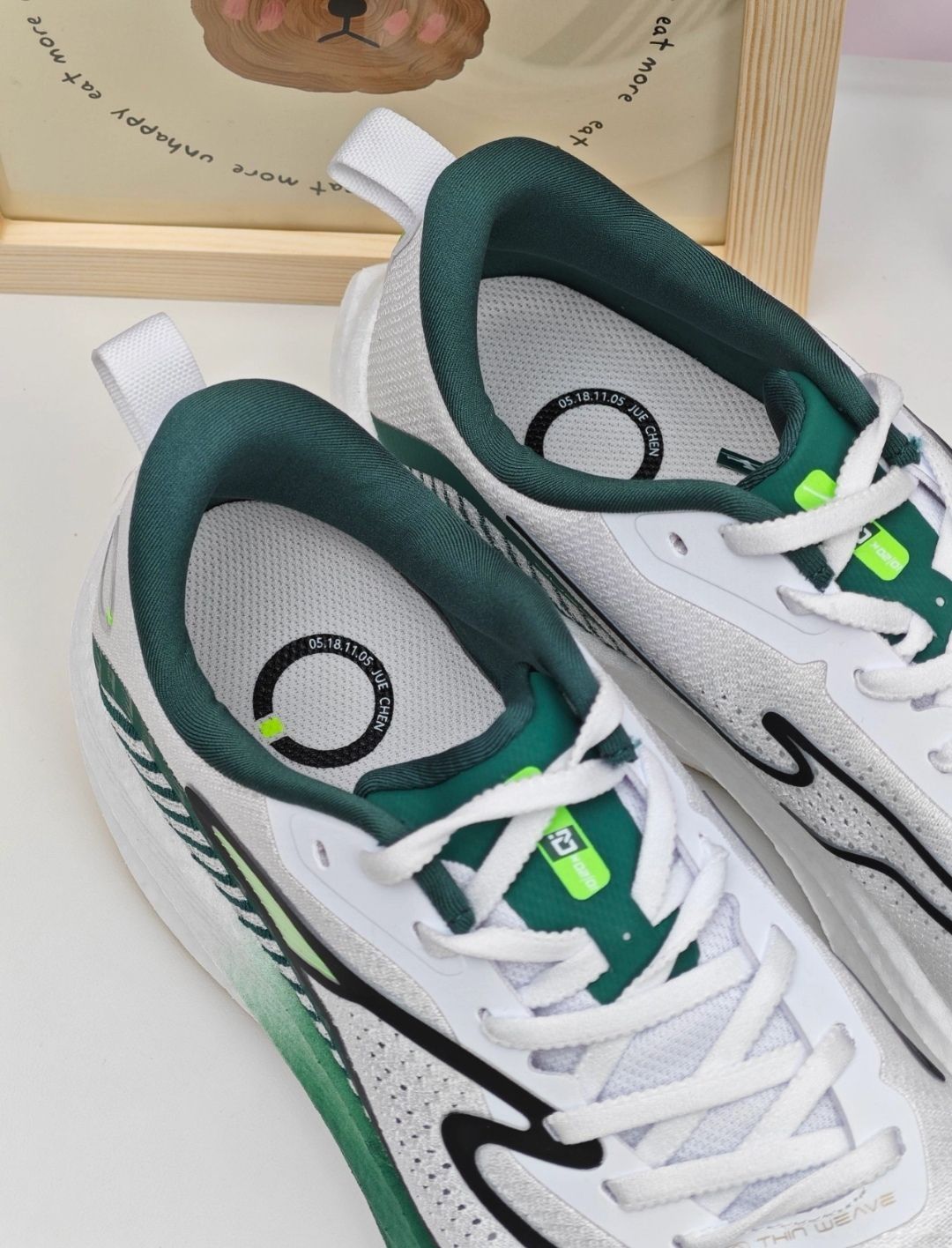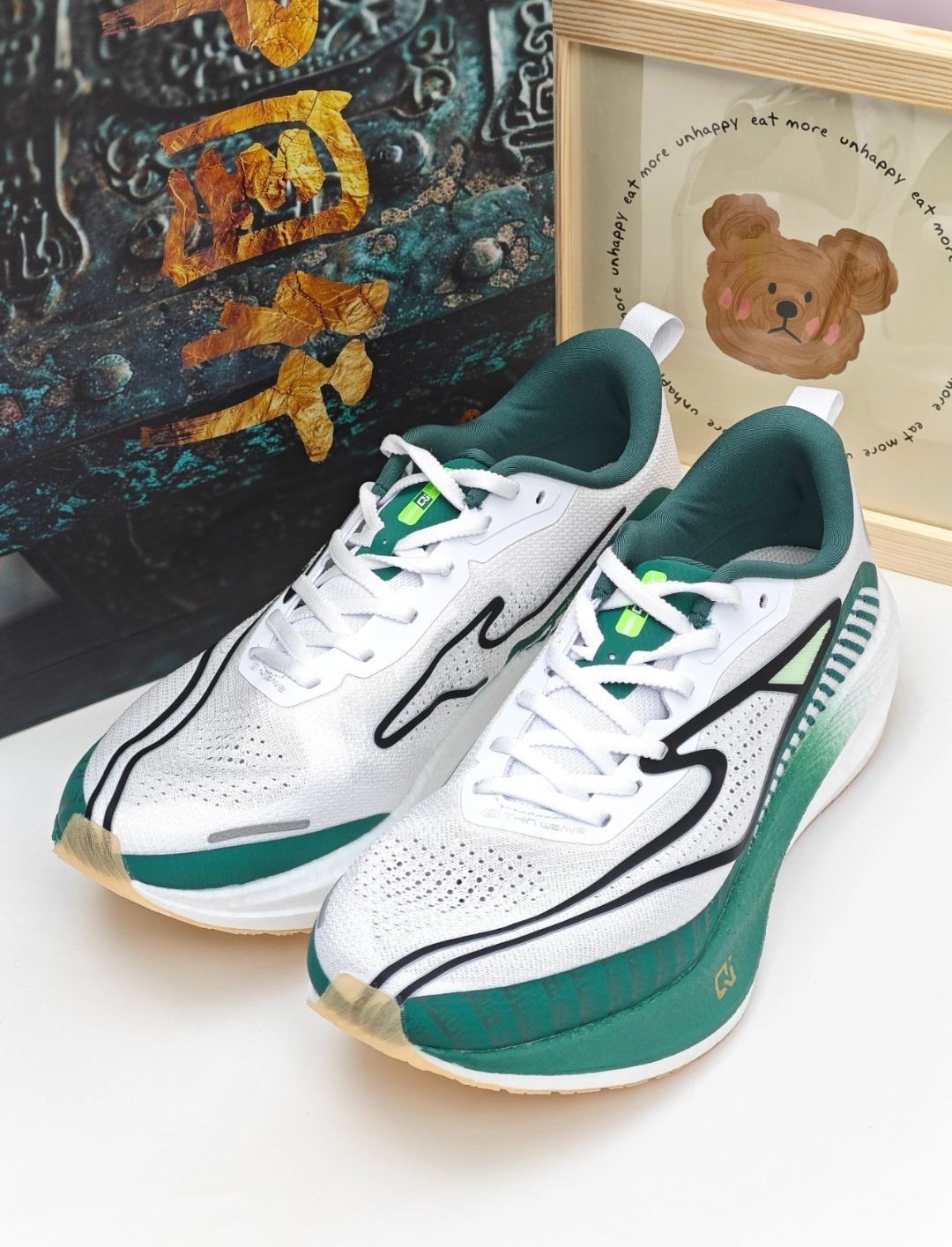 绝尘3的这个中国行配色我的太爱了呀 我觉得它是这个系列里面颜值最高的 白绿的配色怎么穿怎么好看!哈哈哈😀 感觉随便搭配都能出门那种 这双鞋穿起来的感觉很舒服哈 跑步就更加能体现它的优点了,脚感绝了 我比较喜欢的是它的助推性能,跑起步很轻松 这么优秀的鞋让我对国潮都疯狂心动了