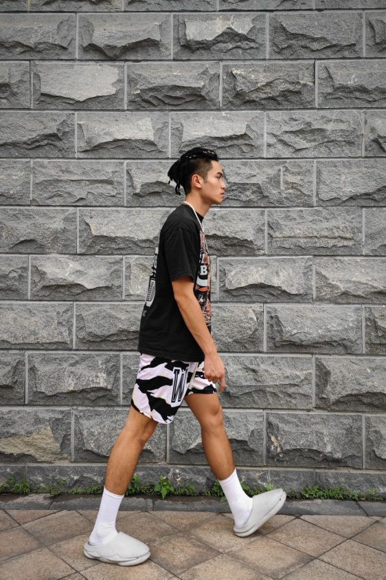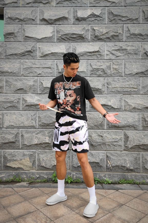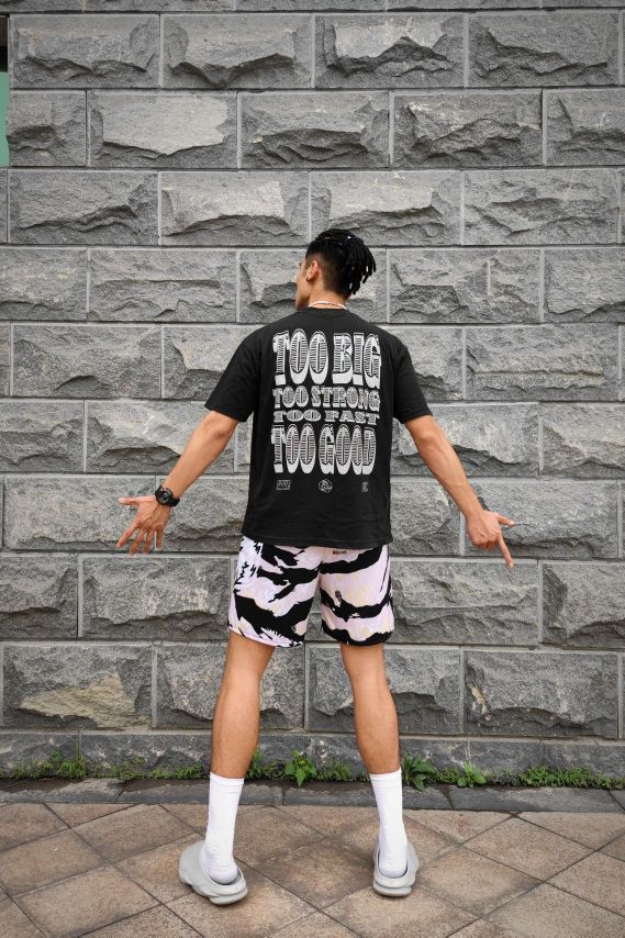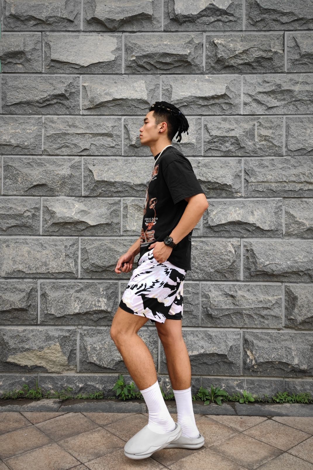 分享穿搭 👕Ragecave的美式短袖,重磅棉真的不吹不黑,前后大面积篮球元素印花,领口收小设计,搭配项链点缀会更好看,喜欢美式穿搭的bro们不要错过。 👖Ima硬汉的美式短裤,潮流配色加上不过膝的设计,显得腿长人高。 👟EQUALIZER的拖鞋,鲨鱼版造型很润爽,夏季雨多可以安利上,日常穿搭也参考一下。