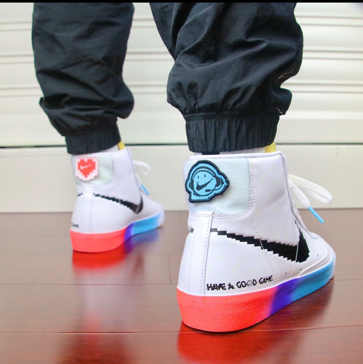 本篇笔记关联了Nike Blazer 板鞋 经典复古防滑舒适百搭 电玩像素/英雄联盟/白蓝红喷漆/白色等商品,为用户提供真实的使用体验和购买参考。