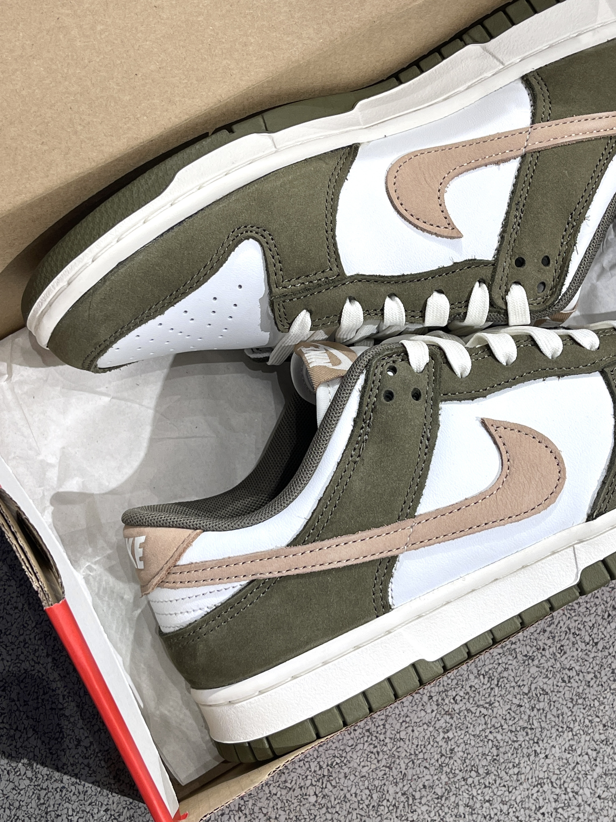 这双Dunk性价比拉满了家人们! Nike|Dunk RETRO PRM 低帮板鞋“橄榄绿”🫒,经典复古Dunk鞋型,橄榄绿麂皮材质搭配白色,整体层次感十足,质感拉满~性价比拉满~😍