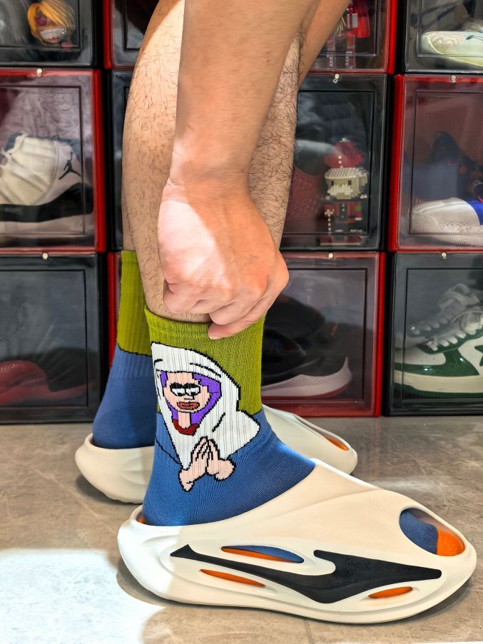夏天搭配短裤固定公式就是运动拖鞋+长袜 看惯了白色长筒,不如来点趣味多巴胺色😍😍 最近收到#Primeet派米 插画长袜,颜值是真戳我 整套共计5双,颜色各异很好搭配 同时上半部分袜口是插画的卡通形象非常可爱 每个人物刺绣精湛,细节之处都很彰显高级 袜口的松紧很适中,久穿也没有紧绷感 夏天搭配运动拖鞋选#Primeet派米 简直再适合不过了😍😍
