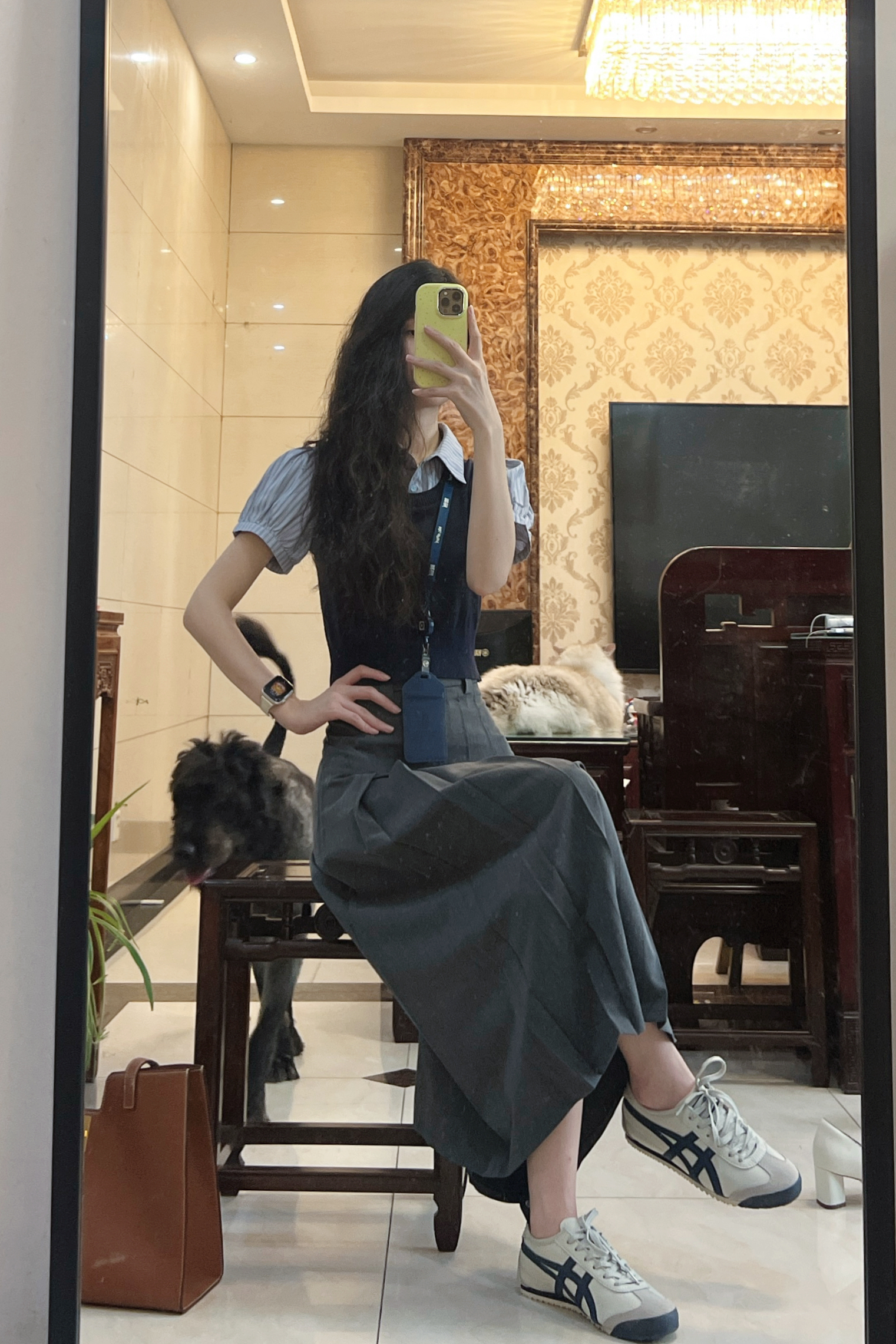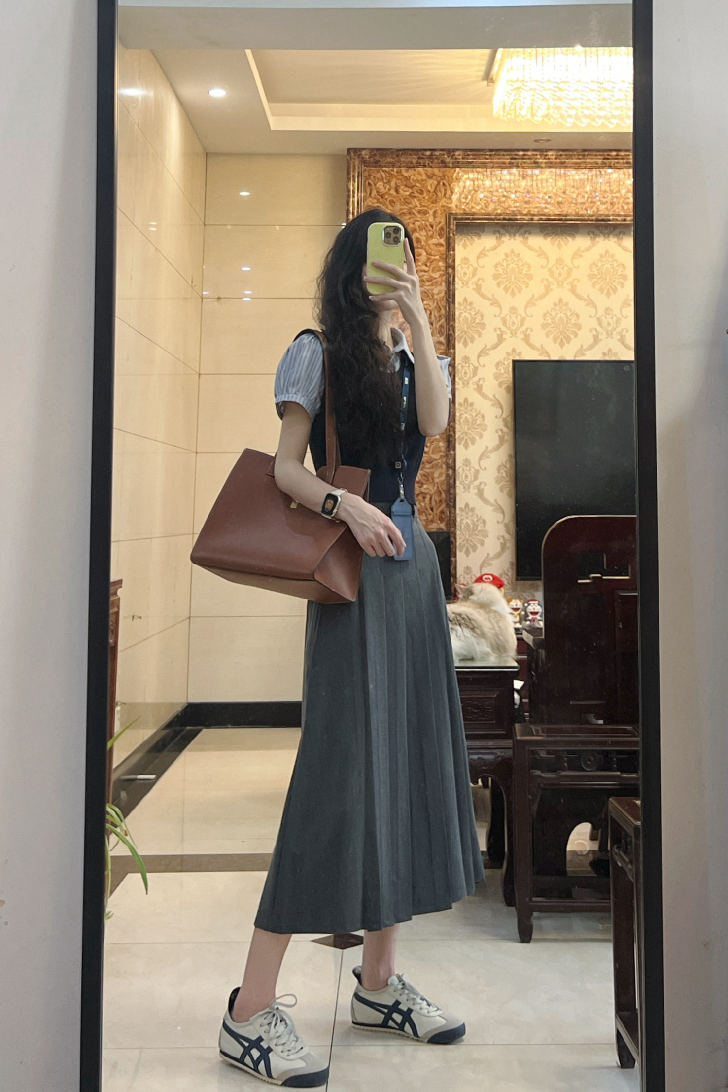 身高|体重:170|48kg 🧍♂️ 穿搭风格:通勤学院风 👗一套:半口仙气 👟 鞋子:鬼冢虎 🎒配饰:Celine