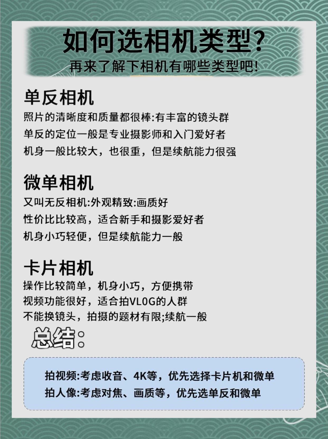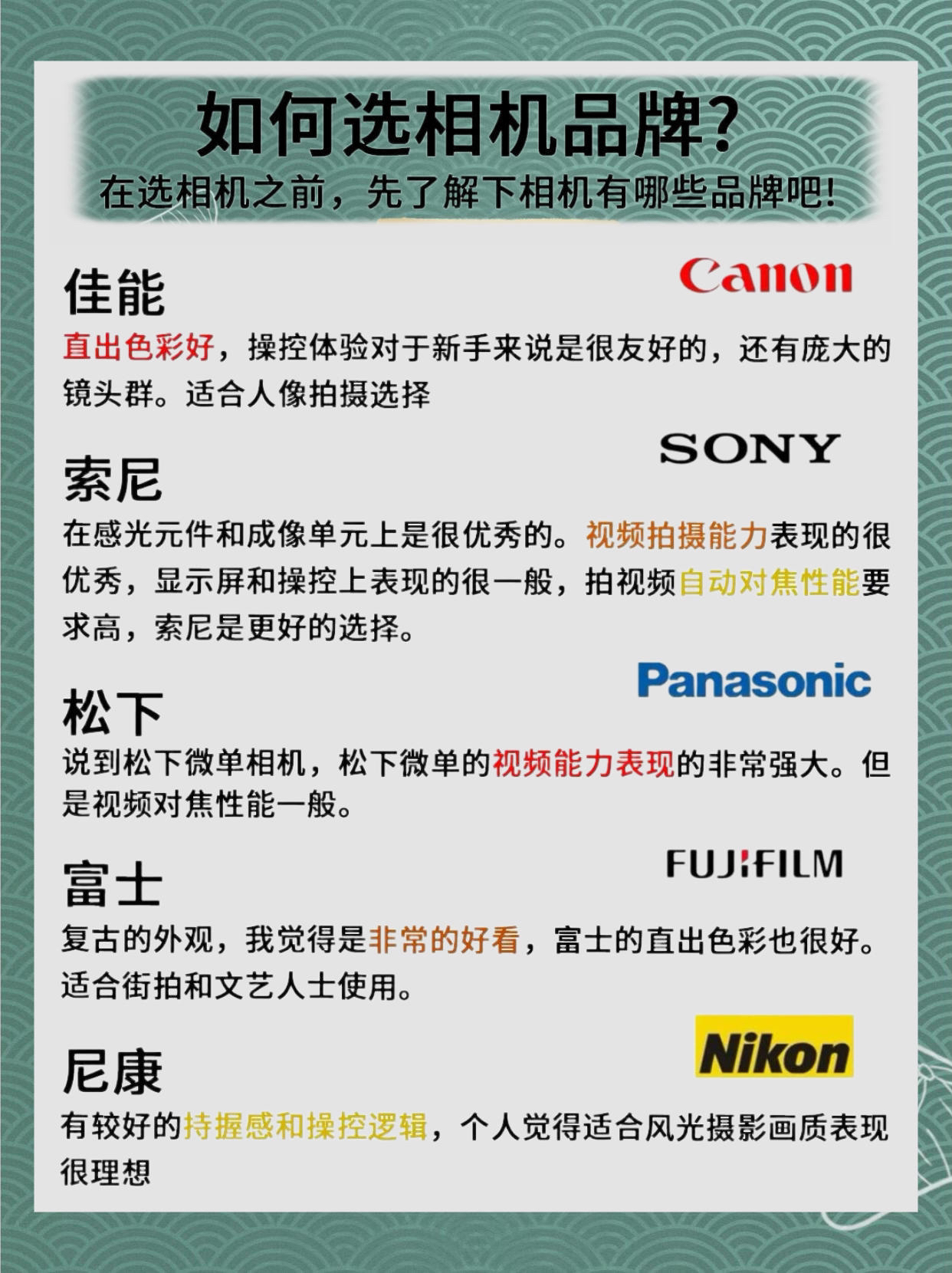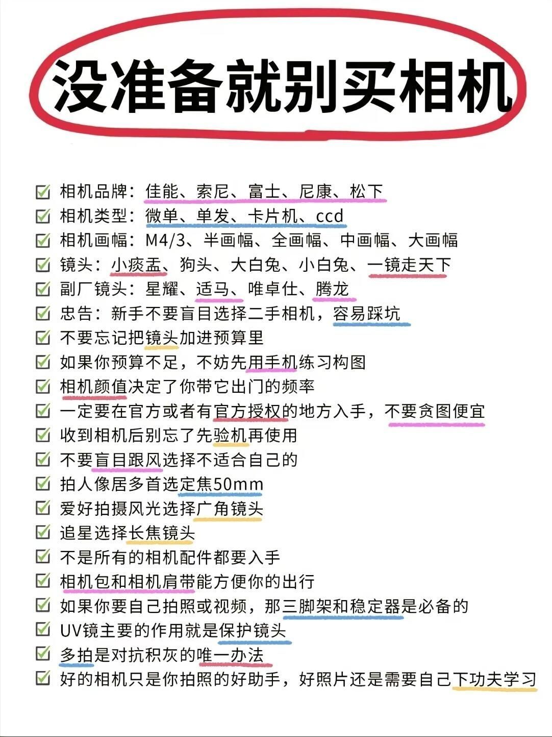 家人们!2024有打算入手自己第一台相机的话 我希望你们每个人都了解这些! 如果你们不会选相机 我真的会很难过!!! 给大家整理了📷四大品牌的相机型号分类 有适合新手的,也有一步到位的机型。根据你的需求,拍人像,拍风景,摄影还是拍娃拍演唱会等等!都有适合的!参考着买叭~ - 📷佳能相机 成像效果很好,功能很多并且简单易操作。还原的色彩比较真实自然,成片看起来很舒适。它还有出色的细节表现力,呈现被拍...