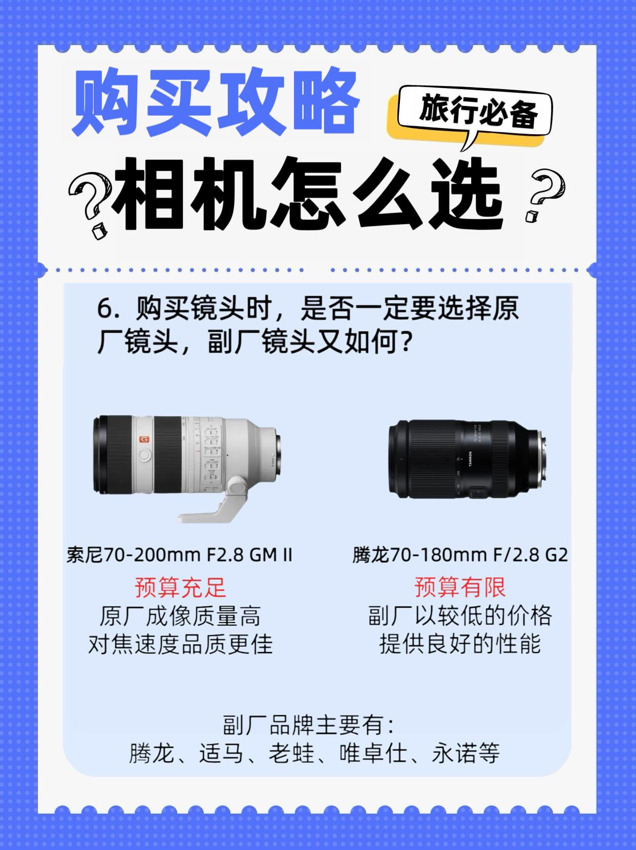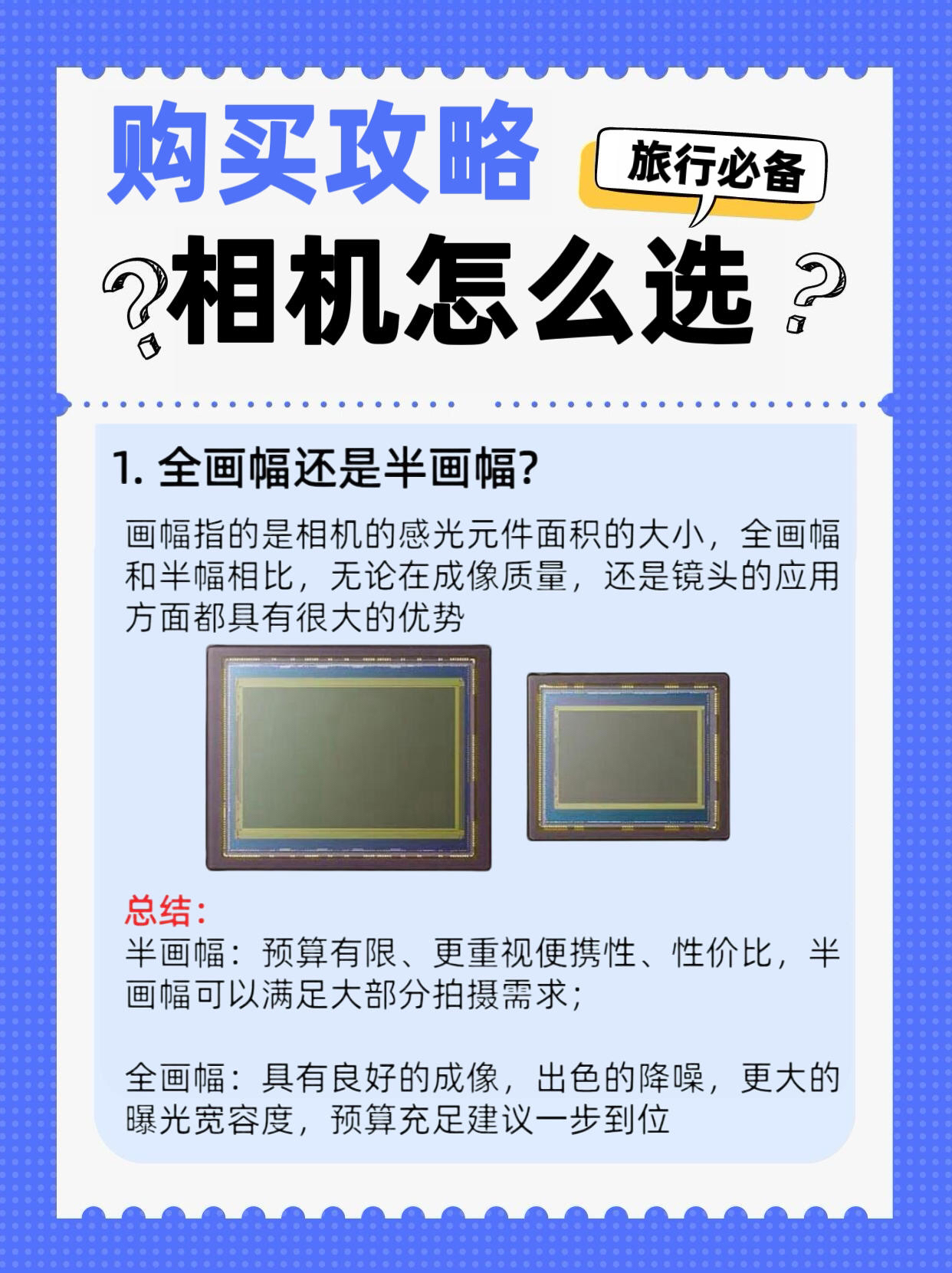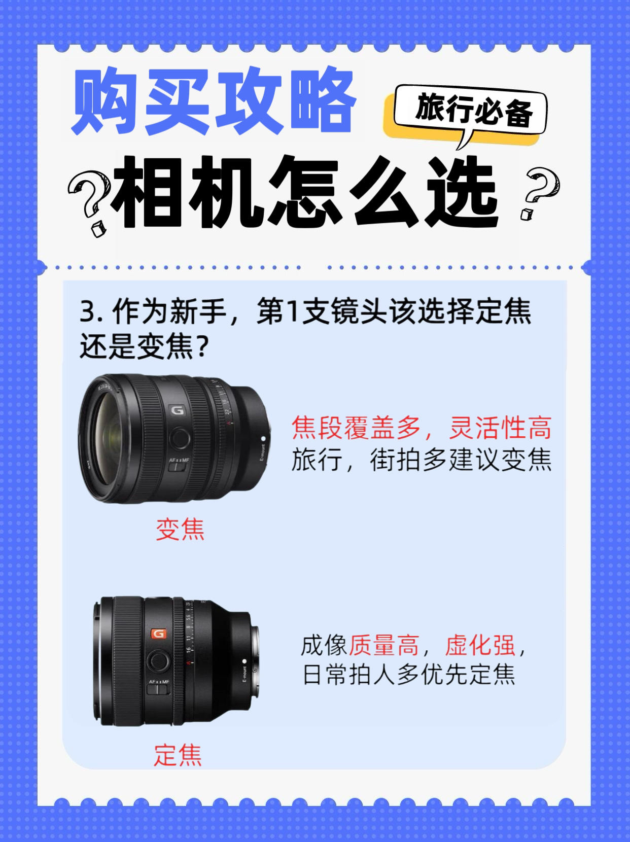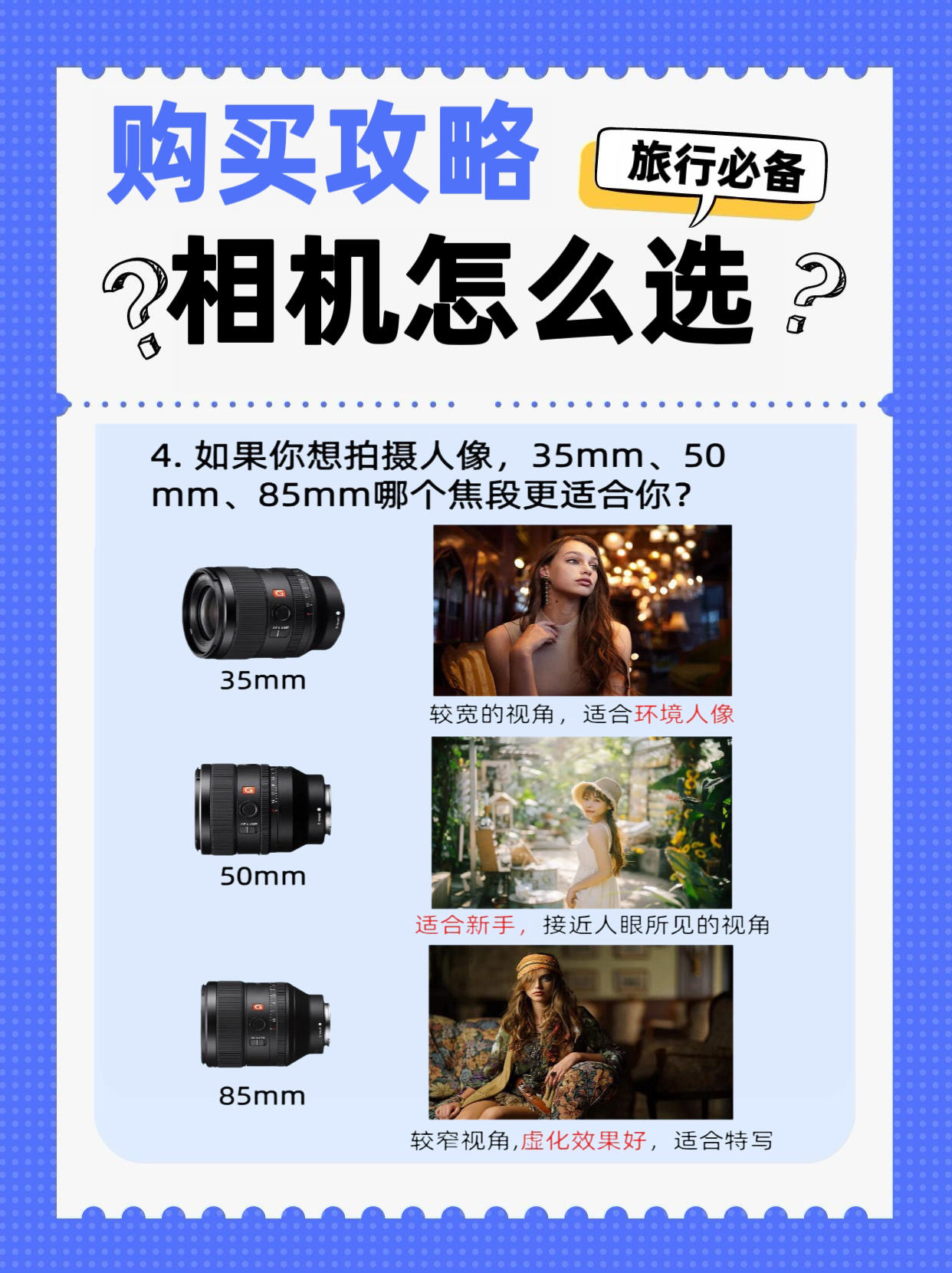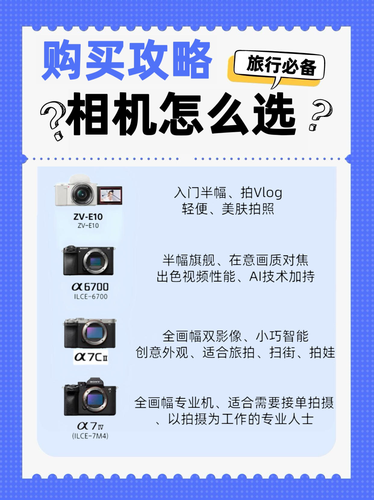 对于关注索尼微单的小伙伴,如何在众多型号中挑选出最适合自己的那一款呢?别担心,这份索尼微单选购指南将为你揭晓。 ❤️图2—图7全是干货,不要错过! 图2:画幅选择? 图3:不同拍摄需求如何选? 图4:定焦变焦选择? 图5:人像镜头选择,35、50还是85? 图6:原厂、副厂镜头选择? 图7:相机配件选哪些? 索尼ZV-E10 亮点 1️⃣APS-C画幅:2420万像素,提供优秀的图像质量。...