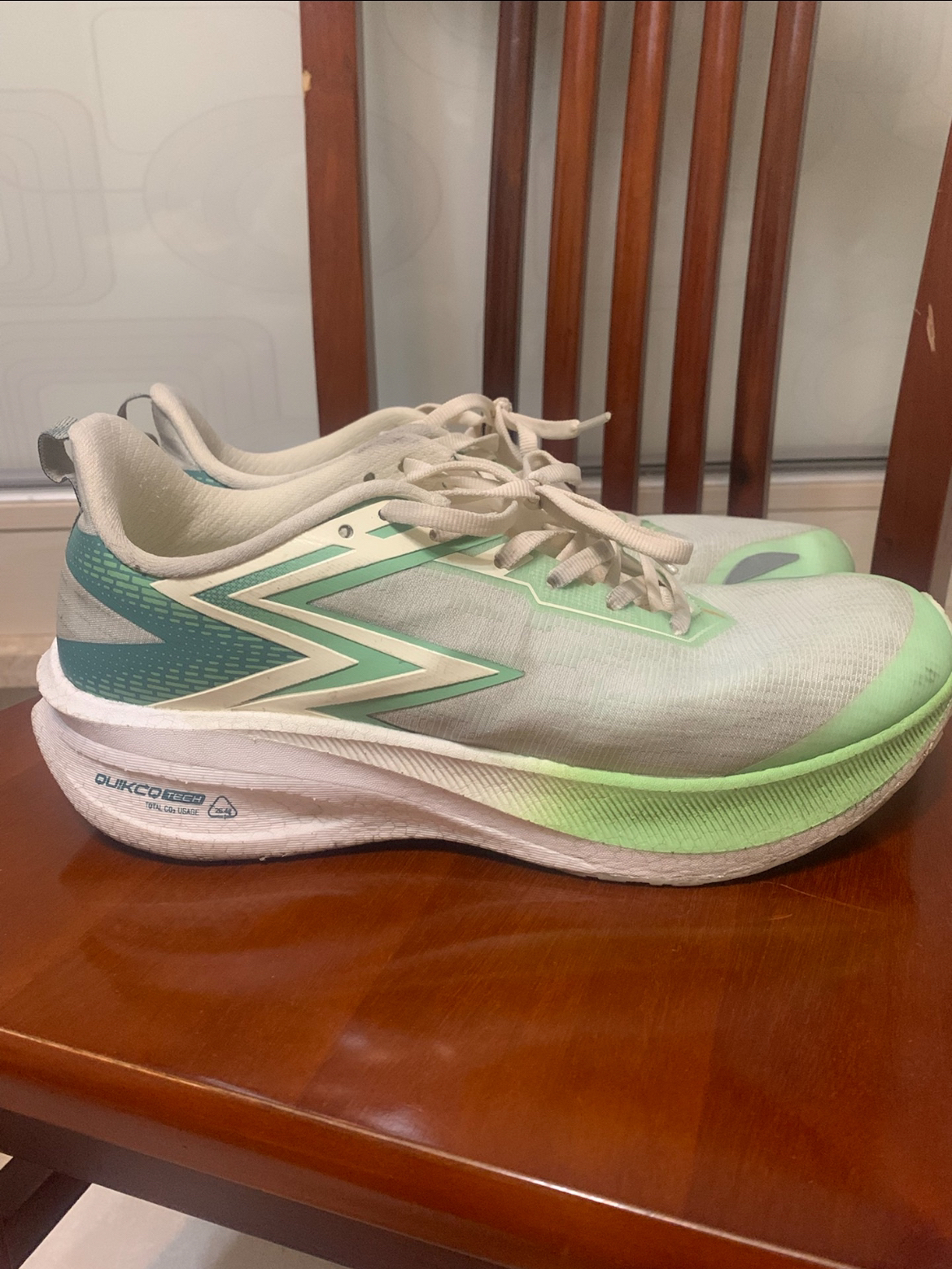 这双鞋是来自国产品牌361度的飞燃et1.5三潭印月配色 外观方面这双鞋整体运用了绿色,在鞋舌处和后跟都采用了三潭印月的设计元素 这是一双适合中考体测或日常跑步训练的口粮鞋,我是289入手的,现在二手市场已经飙到了六七百元,有些码数甚至断货了,还是那句话!不要溢价买鞋!六七百甚至八百的价格已经可以买到很好的顶碳了 中底部分,采用双层脂肪族发泡的碳临界以及全掌尼龙板材的加持,脚感韧弹,不会泄...