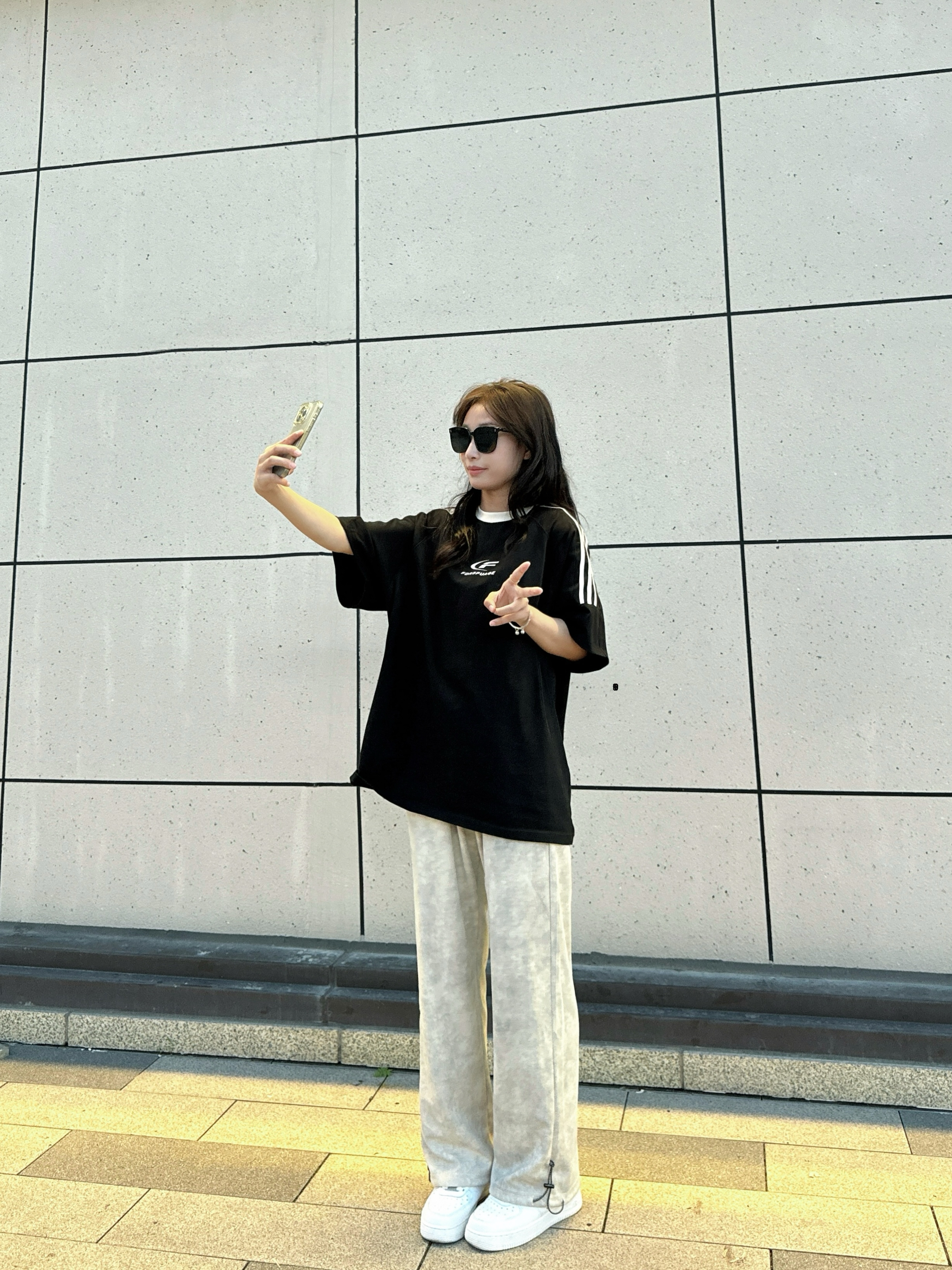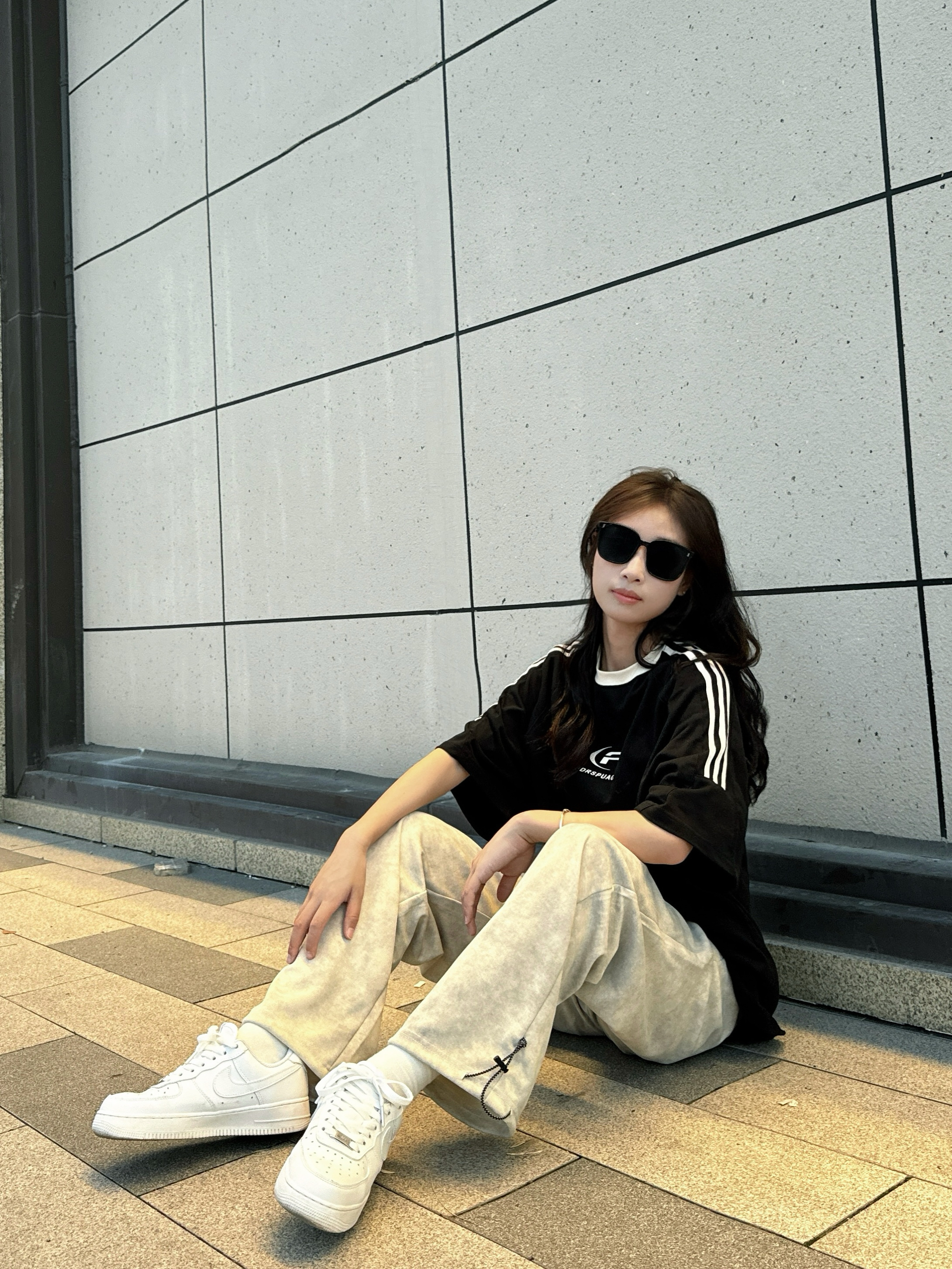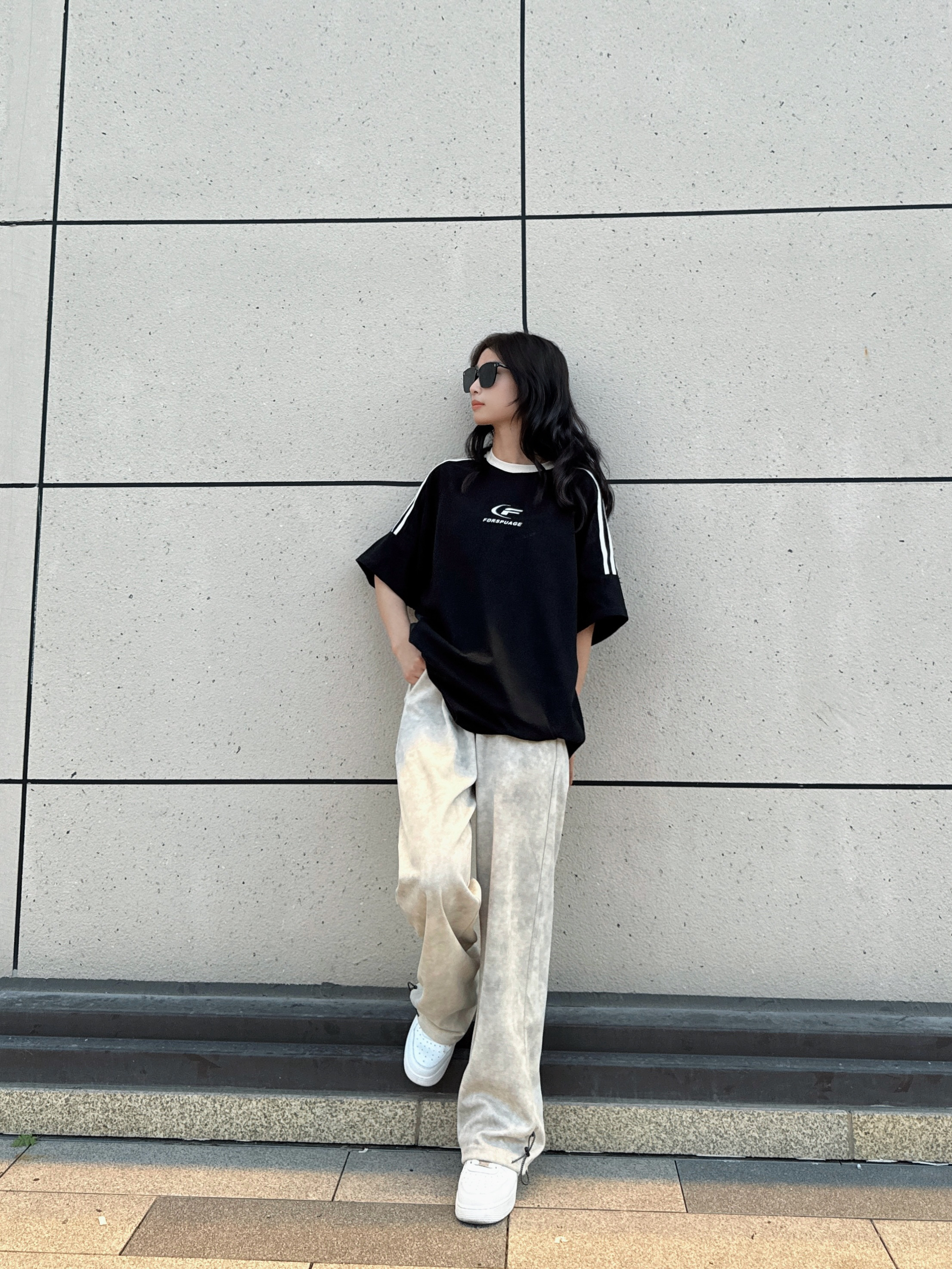 分享一下今日出游穿搭🌪️ - 上衣是一件插肩短袖,黑白配色简单干净,纯棉面料穿在身上很舒服 裤子是OPOX🏠的美式扎染脏脏裤,裤子面料轻薄透气很软,穿在身上很舒服,整体垂感很强特别修饰腿型,裤脚做了抽拉设计可束脚课直筒,夏天穿上不闷热还物理防晒 鞋子是NIKE的空军一号