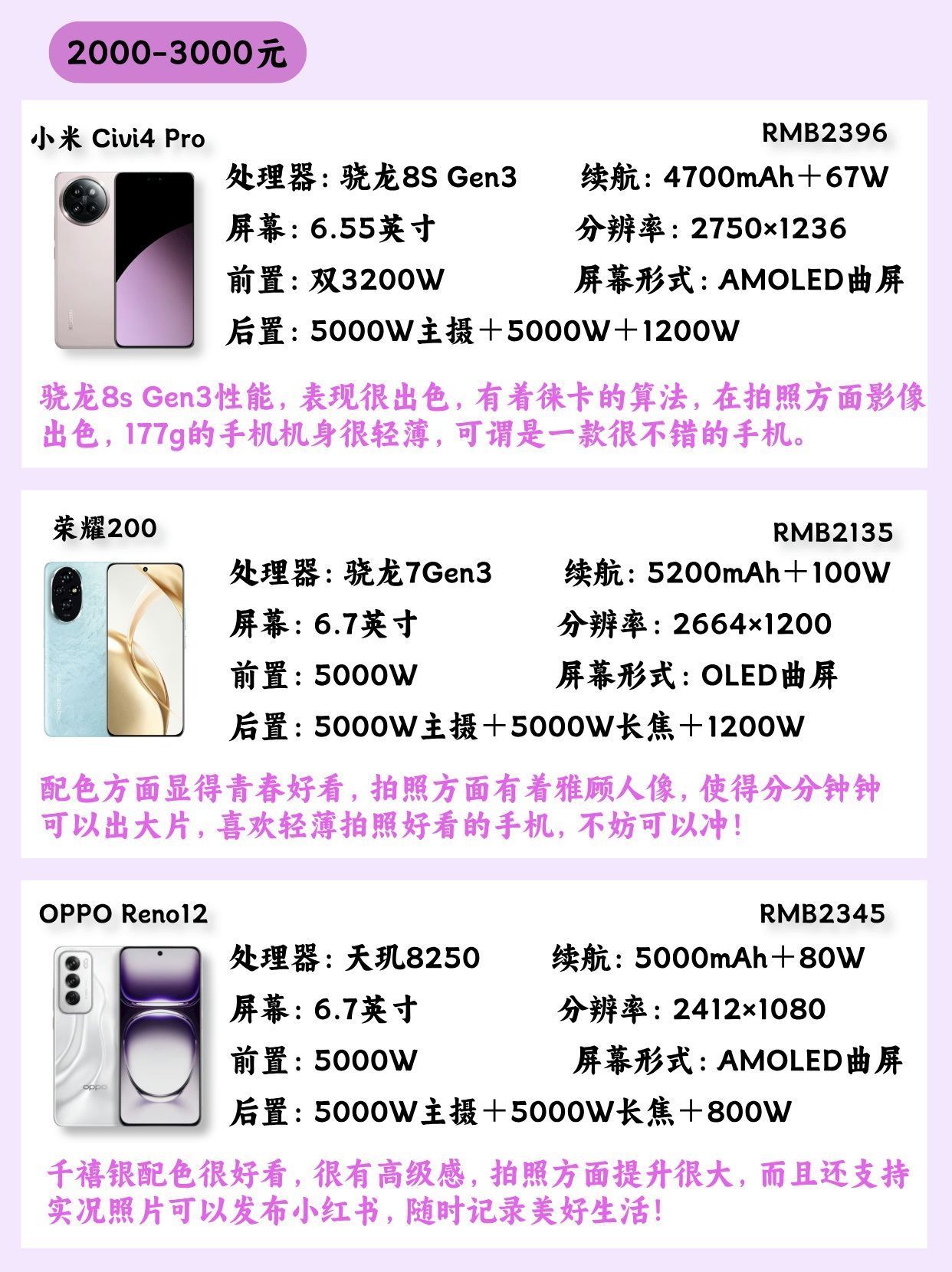 【1-3K预算女生拍照手机推荐!】,由用户 数码小勇Y 分享,来自湖南。这是一篇来自识货社区的真实用户分享笔记。