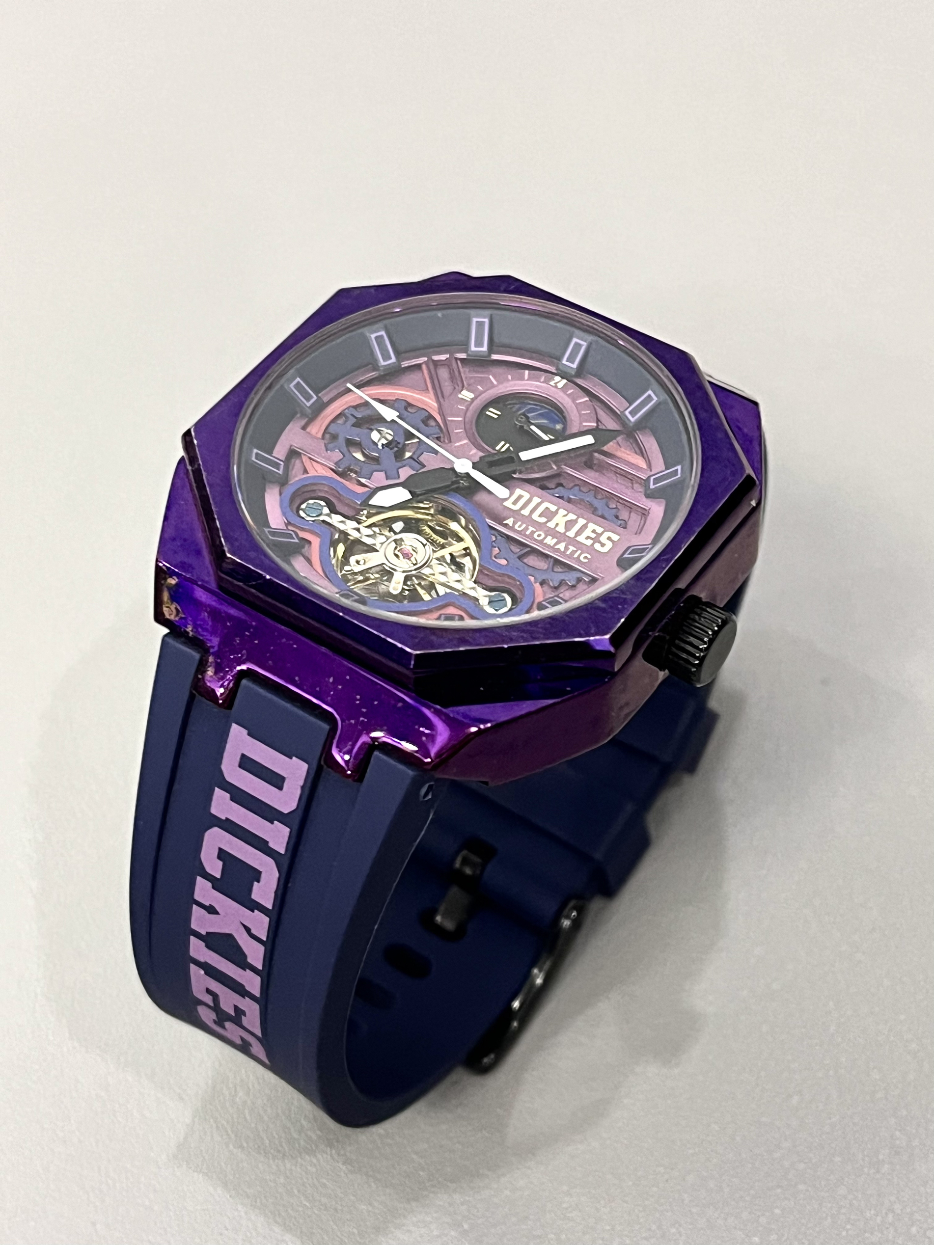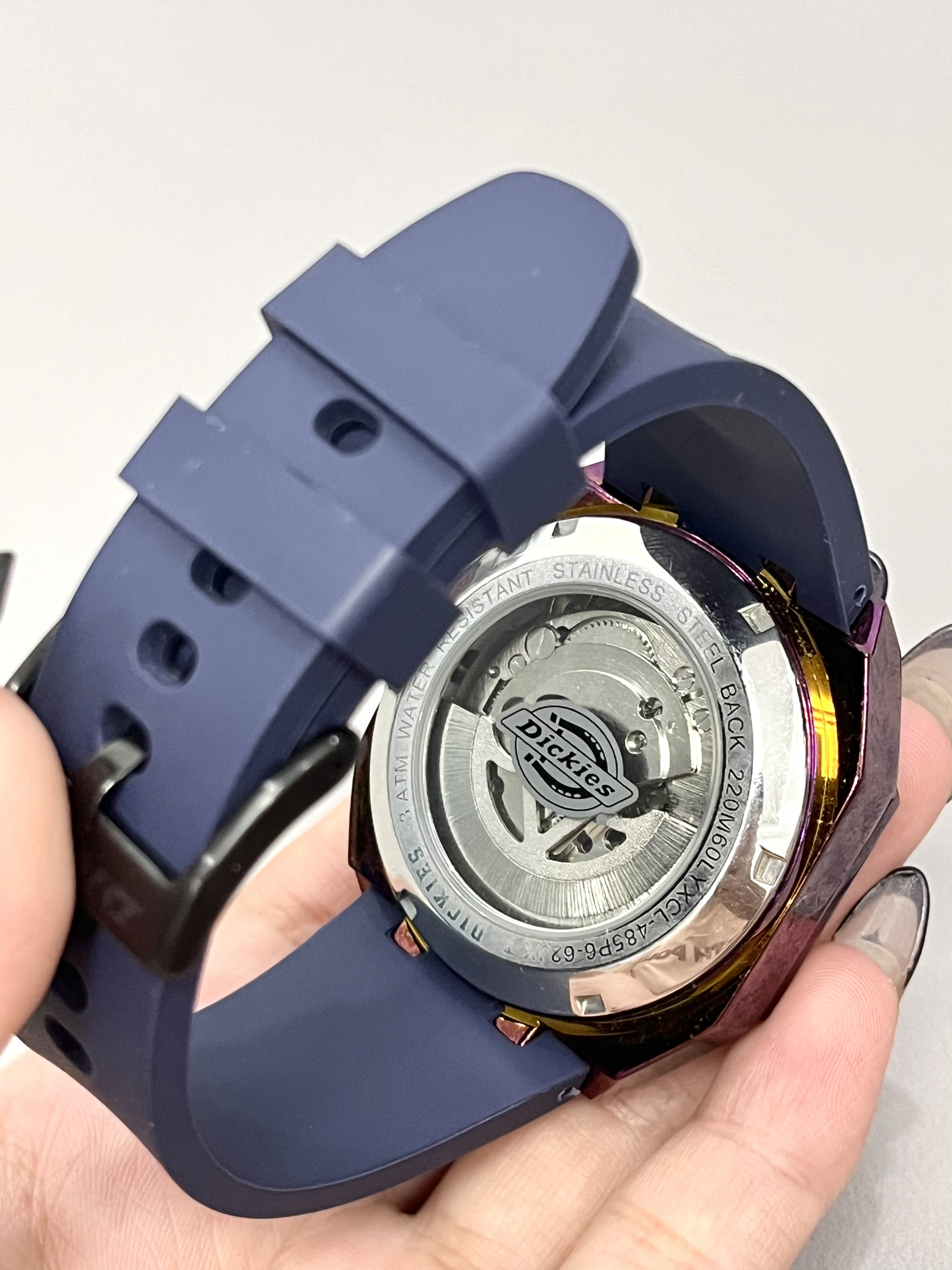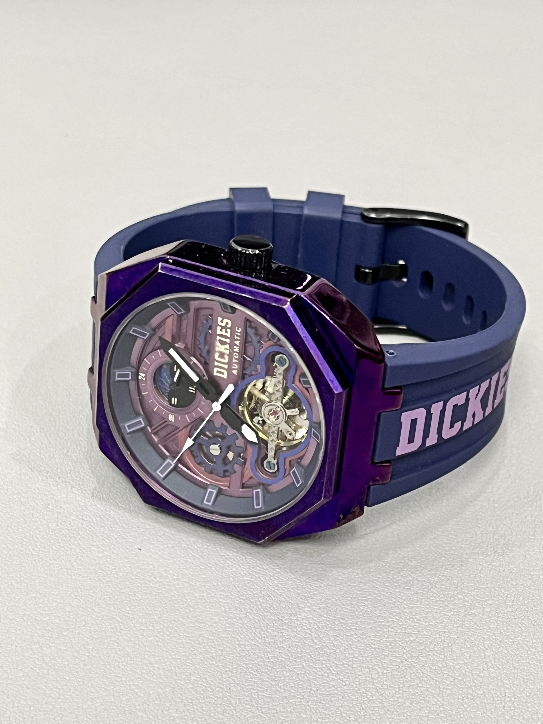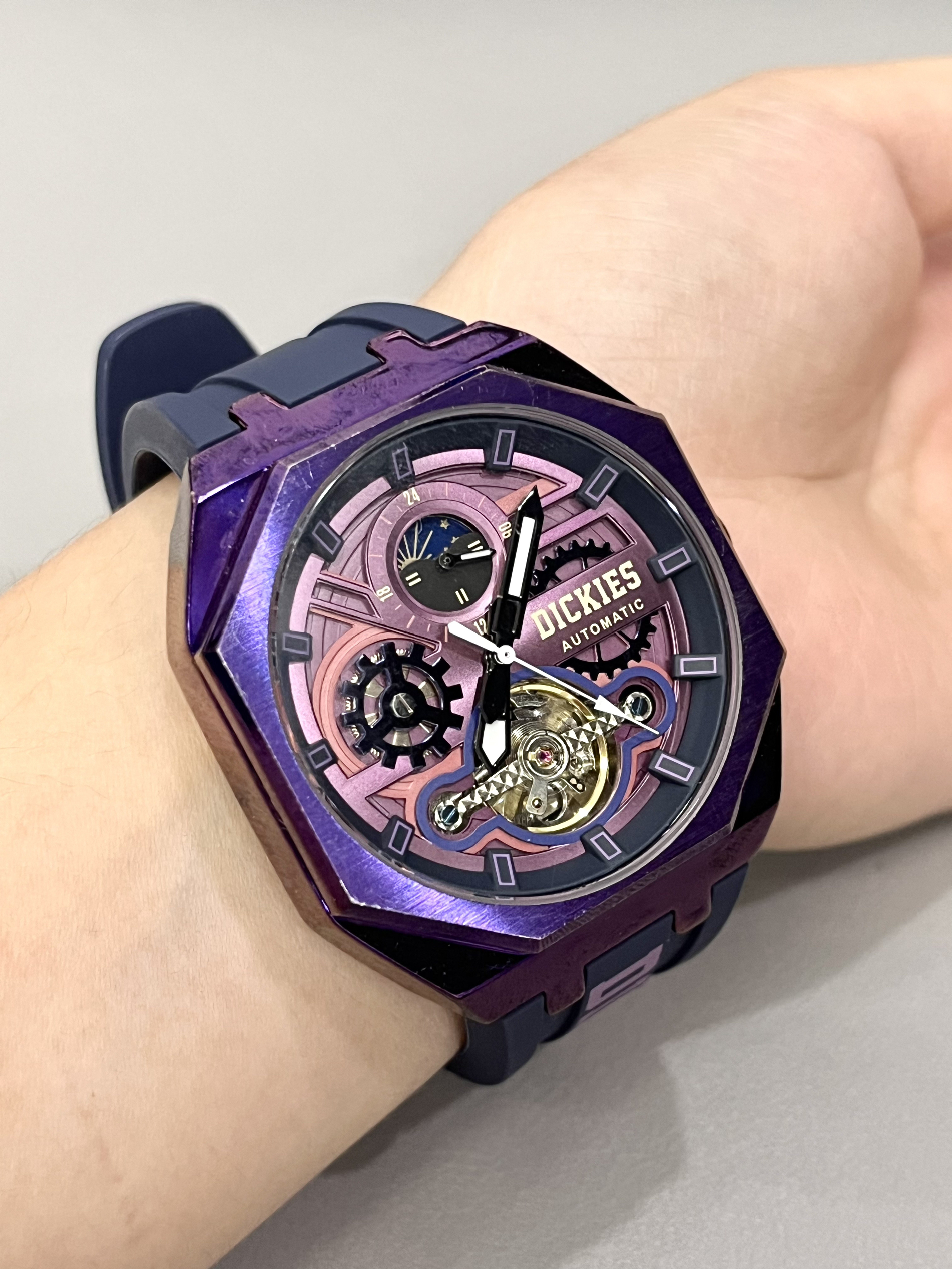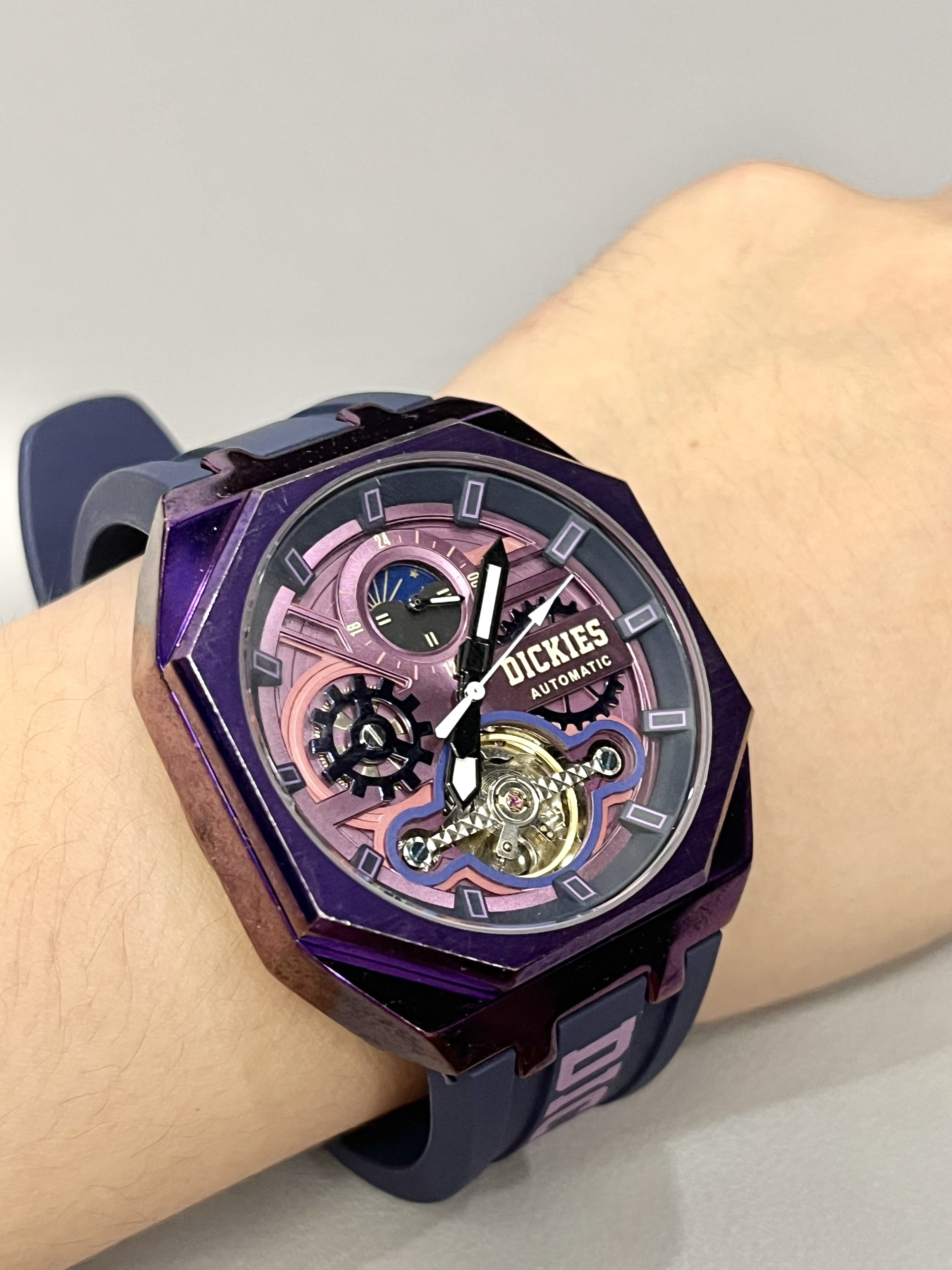 本篇笔记关联了Dickies/帝客 日月星象 大表盘背透镂空学生多功能防水酒桶形氚气自动机械男士手表 紫色 220M60LYXCL-485P6-62JX等商品,为用户提供真实的使用体验和购买参考。