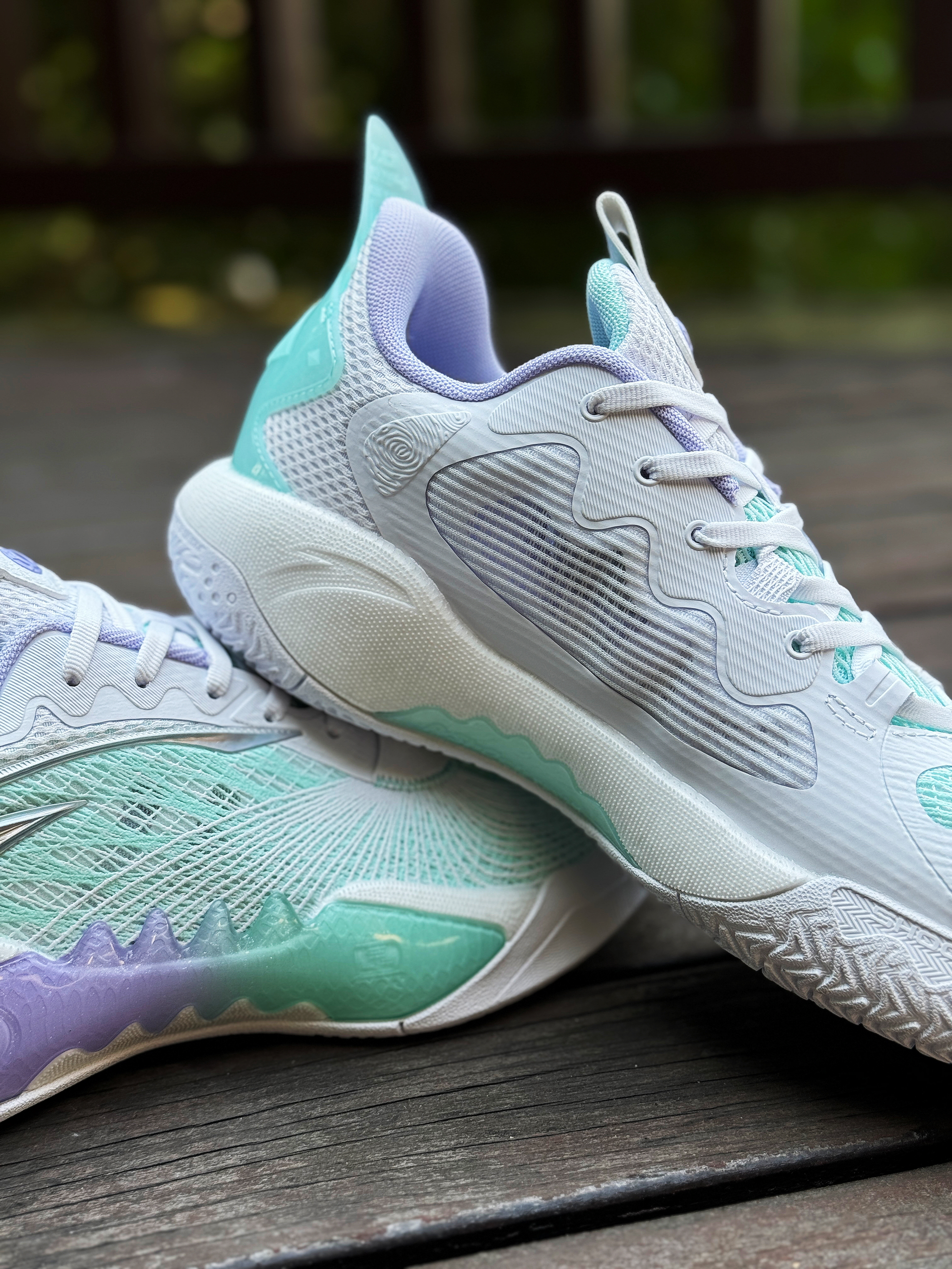 今年安踏的狂潮5系列赢麻了 风头完全不输欧文正代!今天就开箱这双即将发售的狂潮5 Team V2~~经常打外场的兄弟们又有新鞋了!! 鞋子白蓝搭配相当清爽 很百搭!鞋面采用弦科技打造 透气耐用!侧面的“鱼骨”TPU做了蓝紫渐变效果 辨识度很高!中底采用氮科技+水泥克星这套公式化配置 脚感轻便舒适 缓震效果还不错!夏季外场实战够用 需要注意的是尺码偏小! 学生党外场打球穿狂潮5 Pro心疼的话 ...