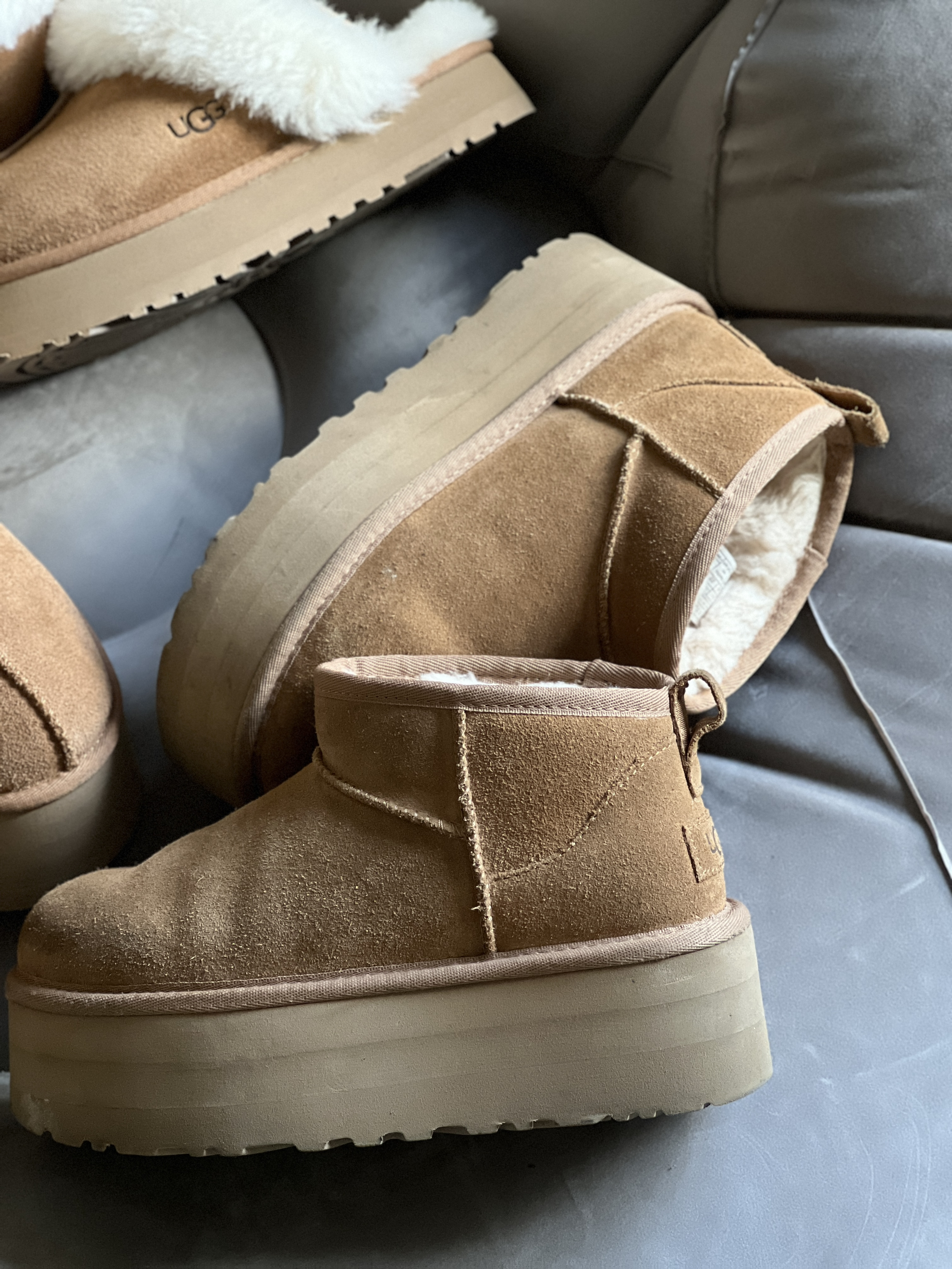 本篇笔记关联了UGG Disquette 羊皮保暖 舒适轻便 耐磨 平底包头 家居外穿 毛鞋领 加绒 一脚蹬 冬季 半拖鞋 乐福鞋 雪地靴 栗子棕、UGG Funkette 舒适轻便 防滑耐磨 百搭时尚 休闲运动 绒面 包头 保暖 冬季半拖鞋 穆勒鞋 乐福鞋 栗色 、UGG Classic Ultra Mini Platform 简洁 圆头 舒适 厚底 加绒 短靴 雪地靴 栗色等商品,为用户提供真实的使用体验和购买参考。