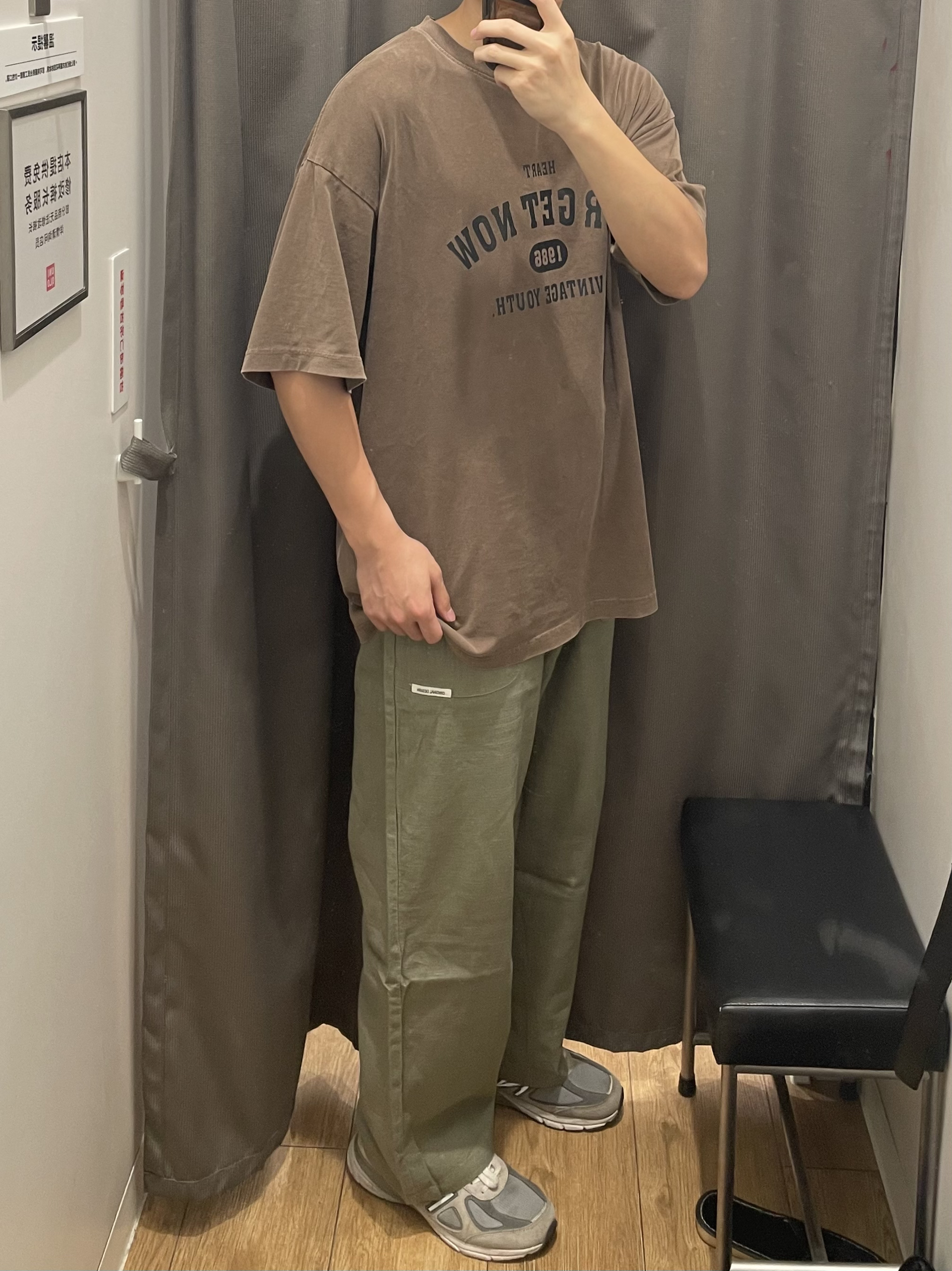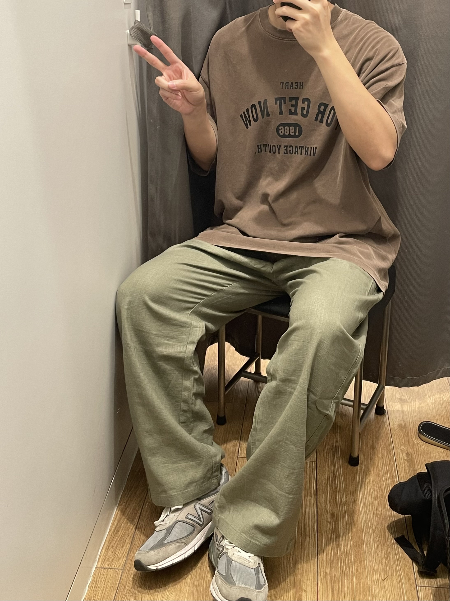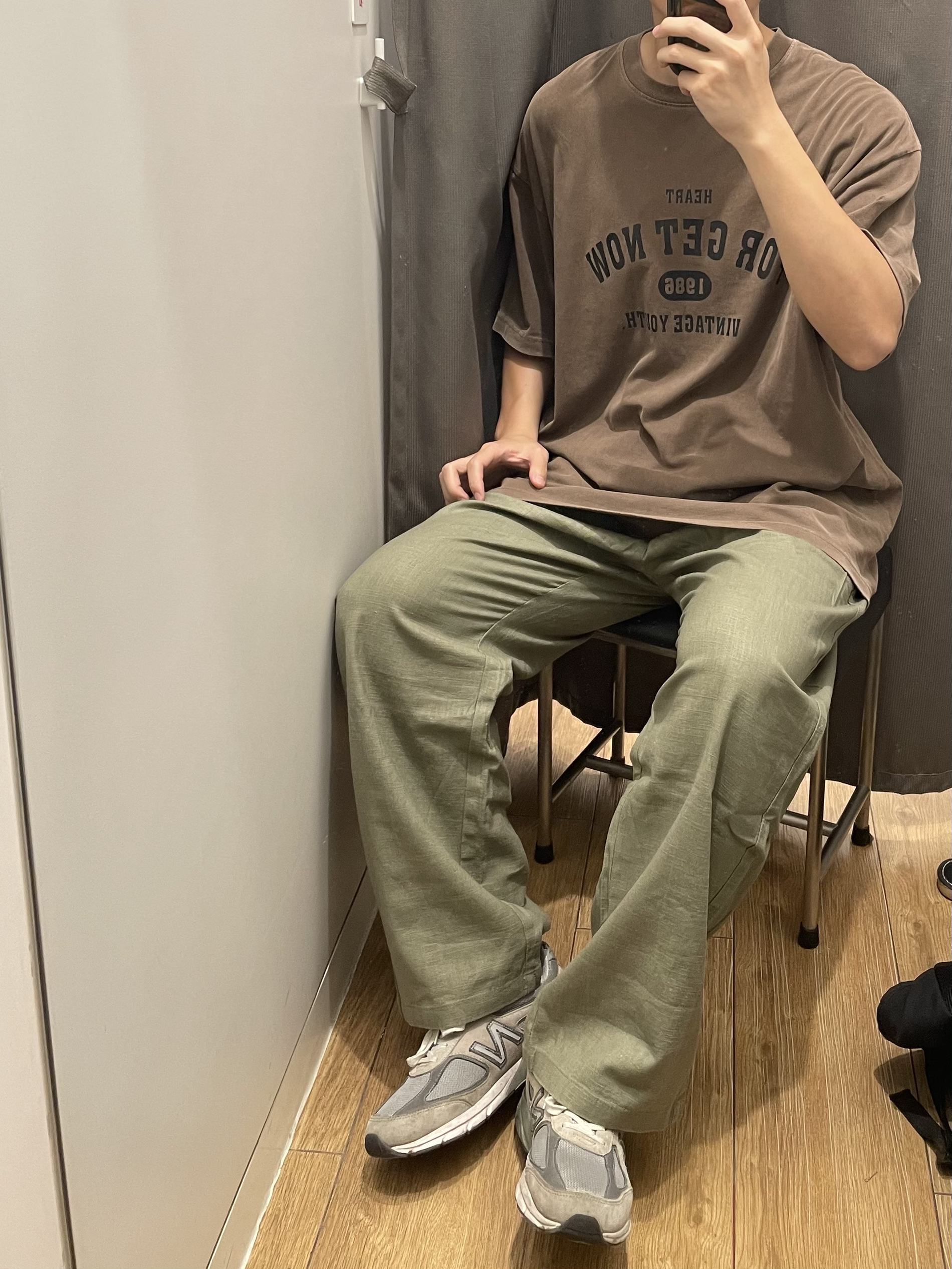 奥运穿搭来啦!! 夏天最爱的松弛感是穿搭给予的!! 很喜欢类似亚麻材质的宽松休闲裤!透气还凉快🍃 而且绿色也很衬托夏天的感觉 搭配深卡其美式短袖 爱啦‼️