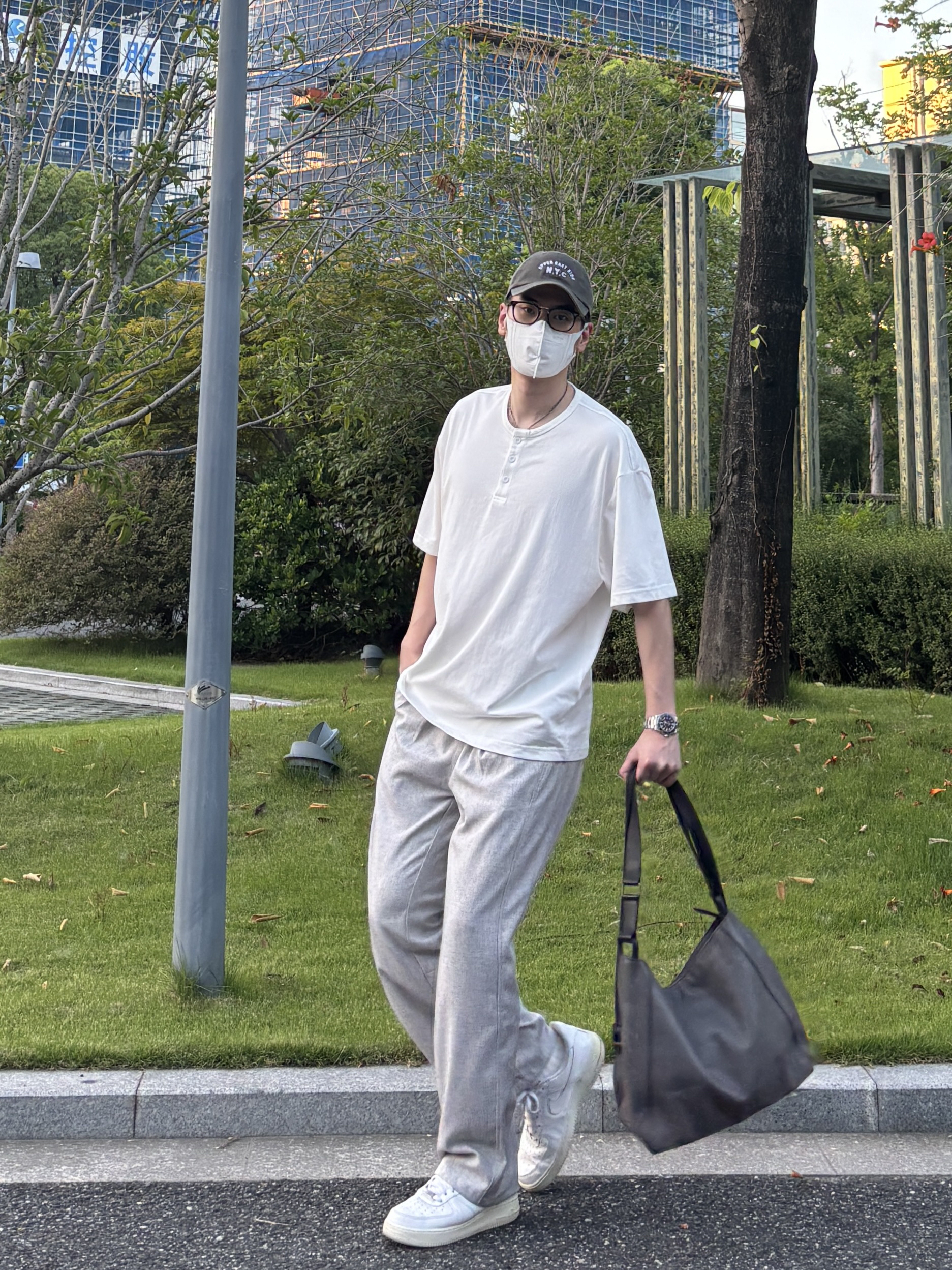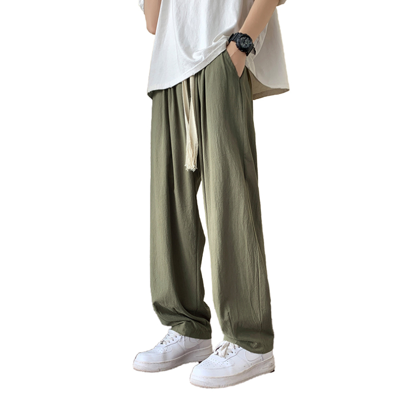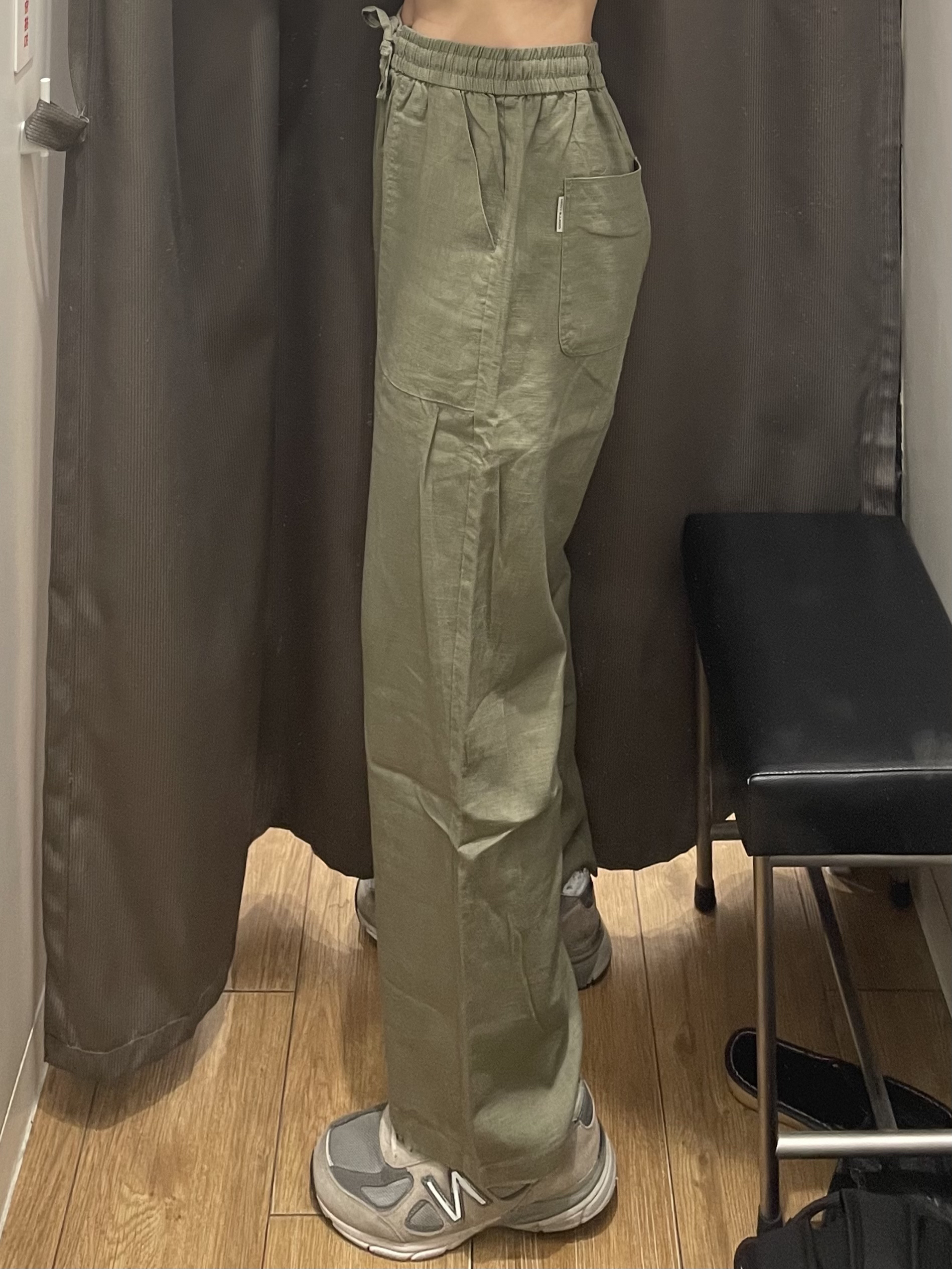 奥运穿搭来啦!! 夏天最爱的松弛感是穿搭给予的!! 很喜欢类似亚麻材质的宽松休闲裤!透气还凉快🍃 而且绿色也很衬托夏天的感觉 搭配深卡其美式短袖 爱啦‼️