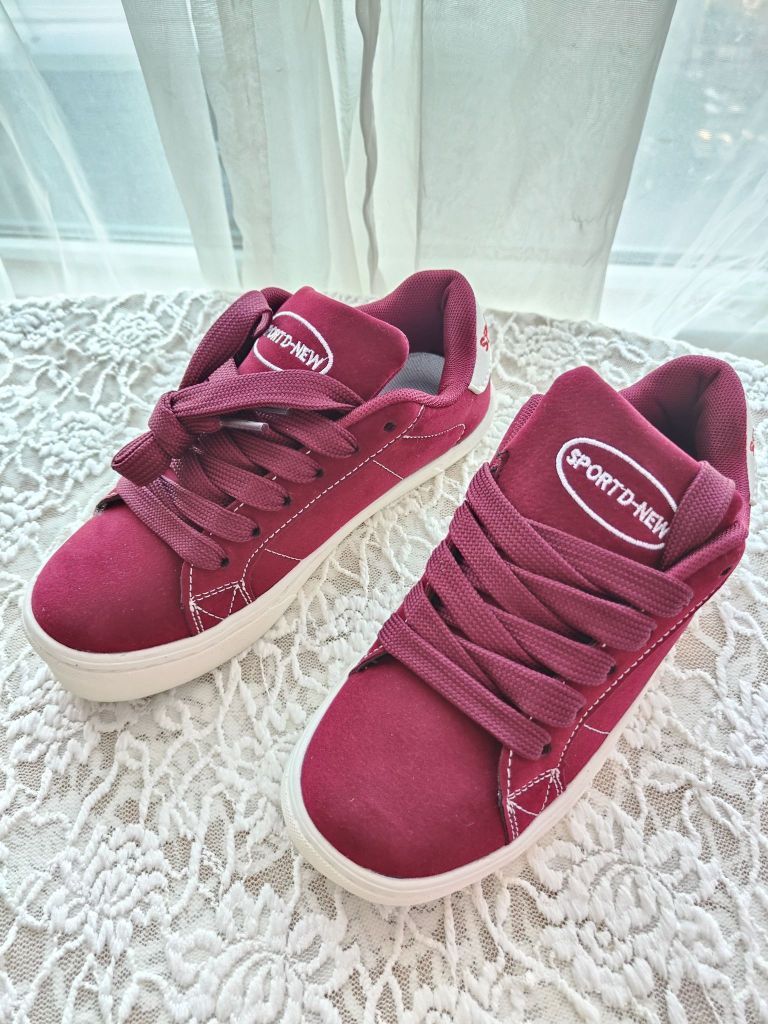 复古红色搭配白色走线,圆乎乎的鞋头也显得很可爱,谁能懂红色的魅力,真的炒鸡显白! 鞋底是比较厚实的,穿上就有种踩屎感,软软弹弹真的好舒适👍🏻 长时间走路也不会脚疼,整体是比较轻的,跑步也不会累赘,并且透气性还比较好,就算是夏天也不会很闷脚🦶 不管哪个季节穿它都可以轻松驾驭,红色也太有活力感了趴,怎么搭都好好看~ 美式复古学院风板鞋真的很难不心动啊💗