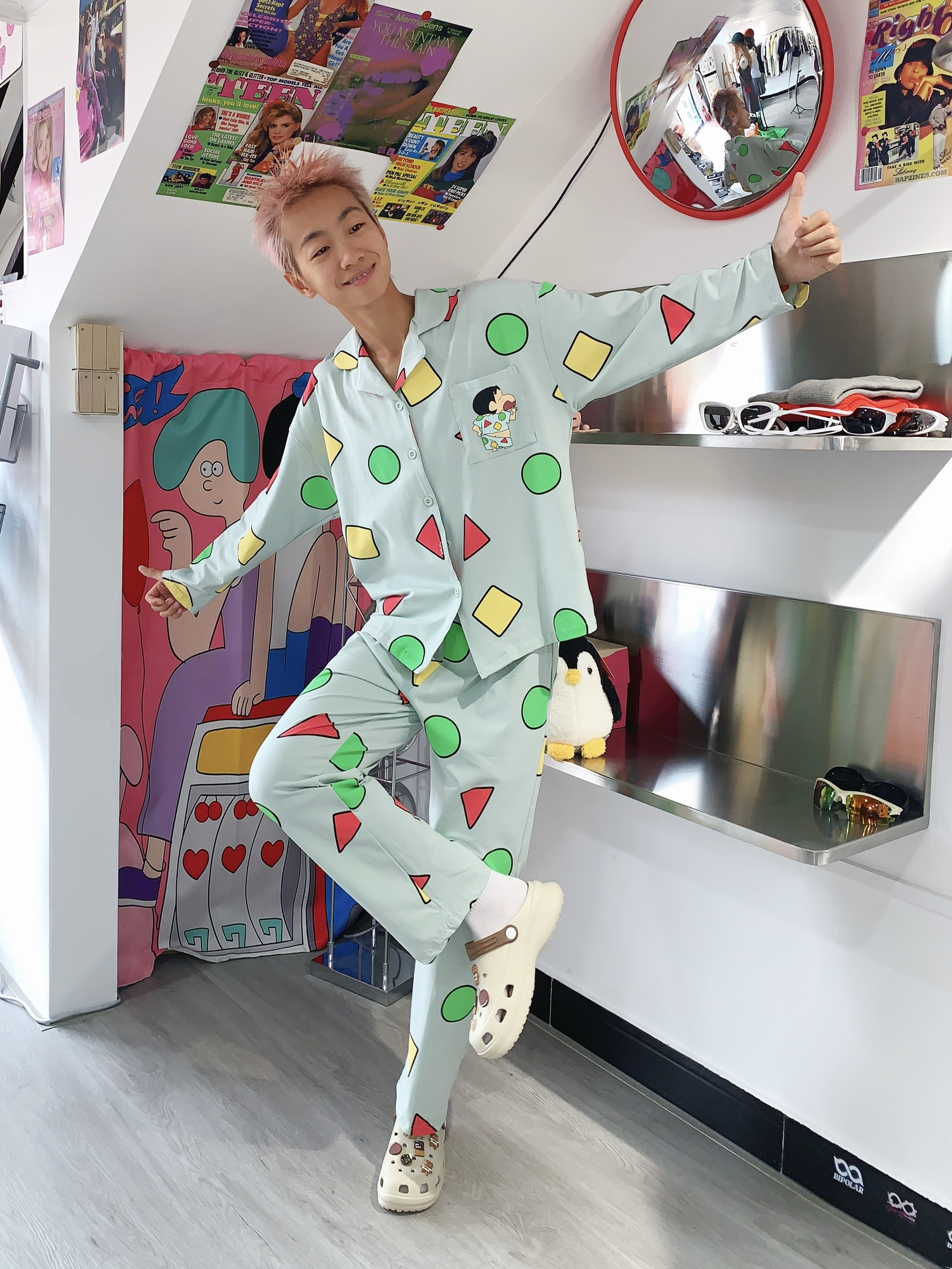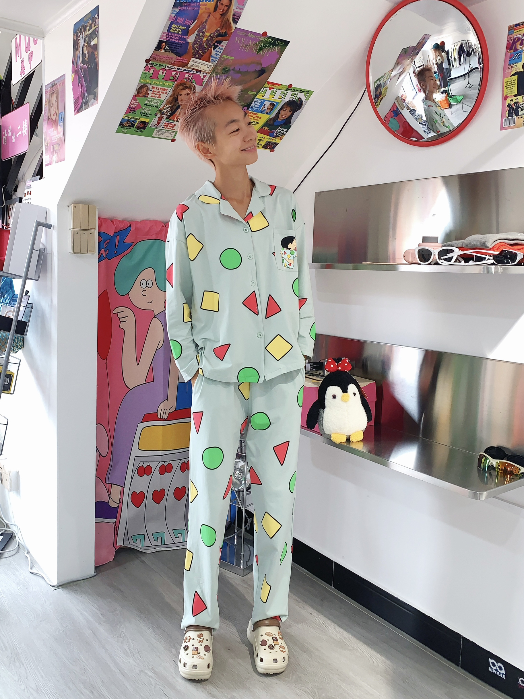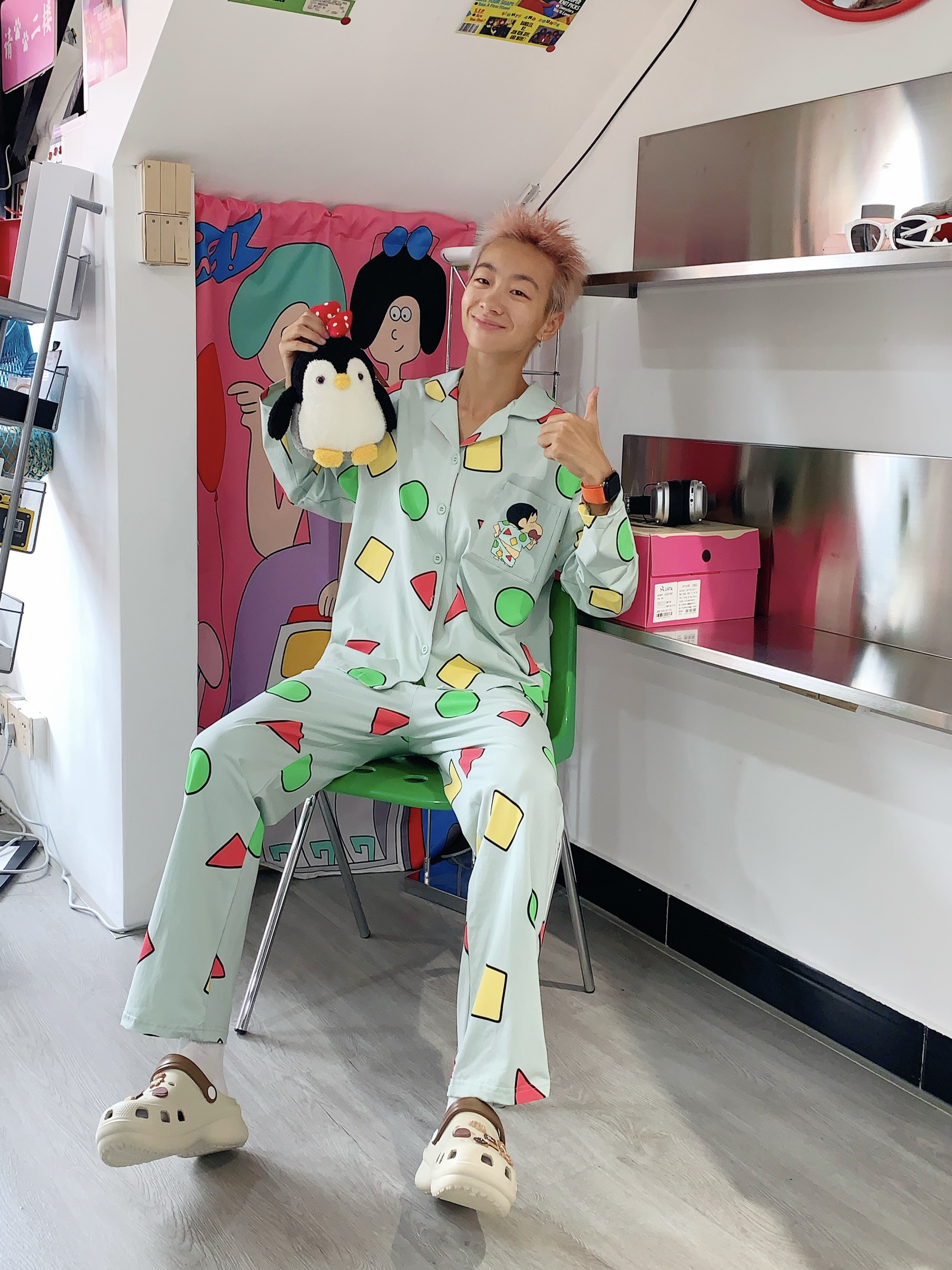 哈喽,欢迎来到哇哇哇穿搭频道! 168CM|45KG|👔:M 👖:m|👟:39码 是谁还没有这个蜡笔小新睡衣哇! 巨巨巨可爱的蜡笔小新睡衣耶 一整套 可外可内 夏天穿真的不要太舒服! 回归童年时代 宅家看奥运 就穿它啦!