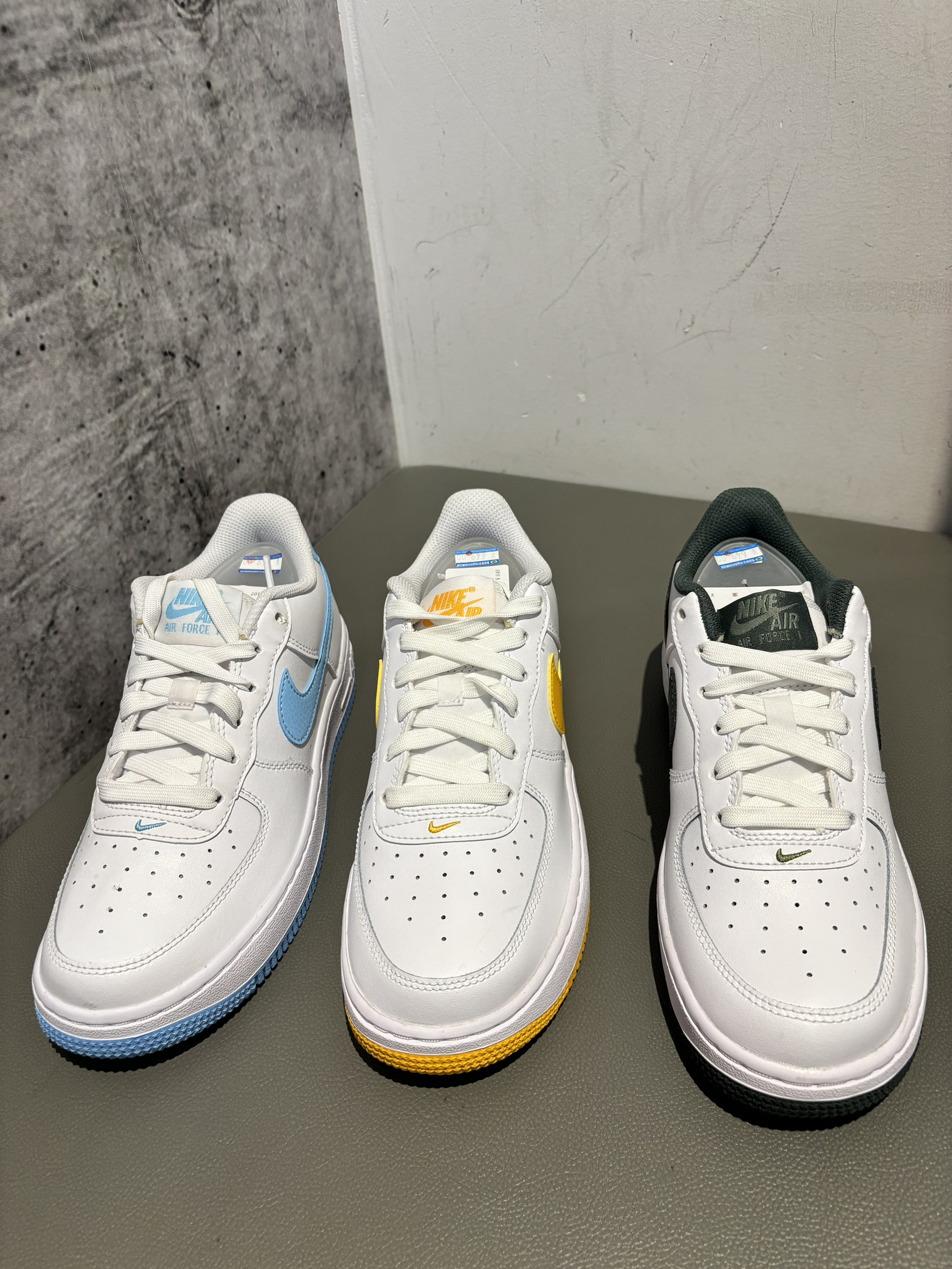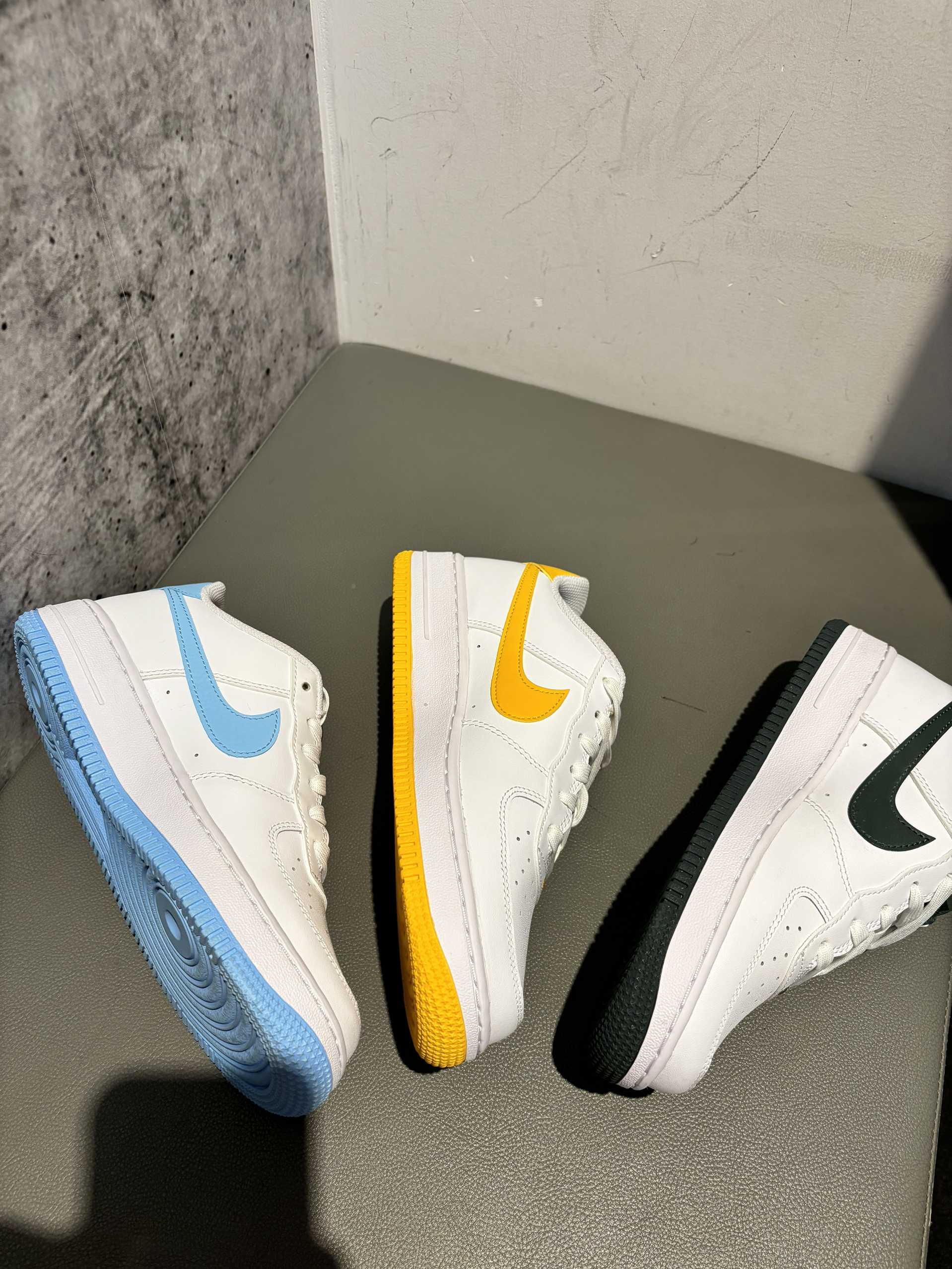 #我的夏日通勤搭子 #好物热议间 小蓝、小黄、小绿三个配色怎么选 评论区留言你的答案 女生gs版的空军一号一个特别的点 就是鞋头处比较圆润 有点可爱的感觉 皮质摸起来还不错 但是实际上都是合成革 比较好打理,也比较容易换配色 配色这么多你会不会买鸳鸯搭配呢?