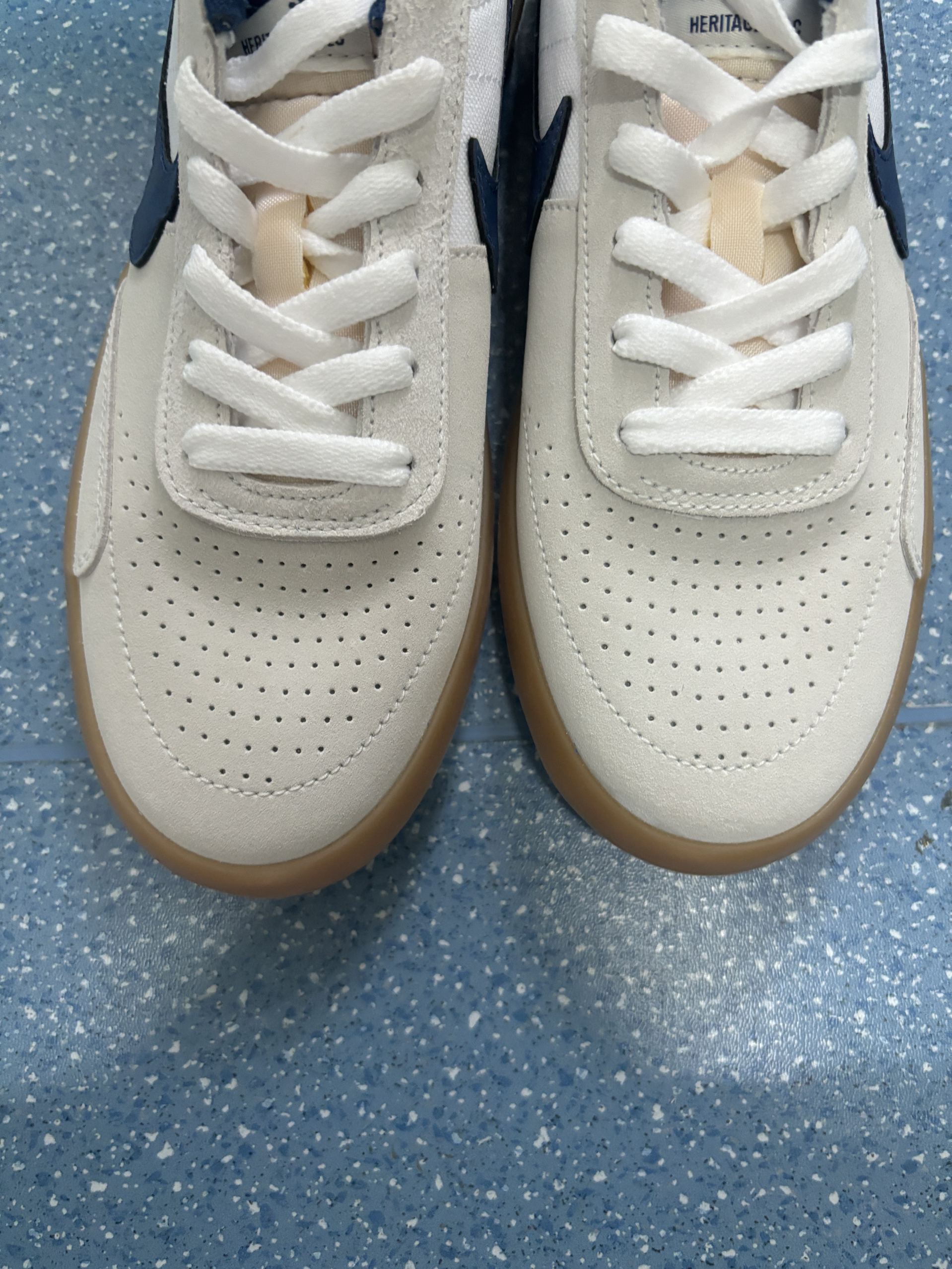 这款鞋采用米白蓝配色, 鞋面由麂皮与帆布组合而成, 流线型的复古鞋头 呈现出复古风格。 而且这双鞋的价格比较平价, 鞋子的重量很轻,穿着时不会磨脚或累脚。 尺码选择正常尺寸