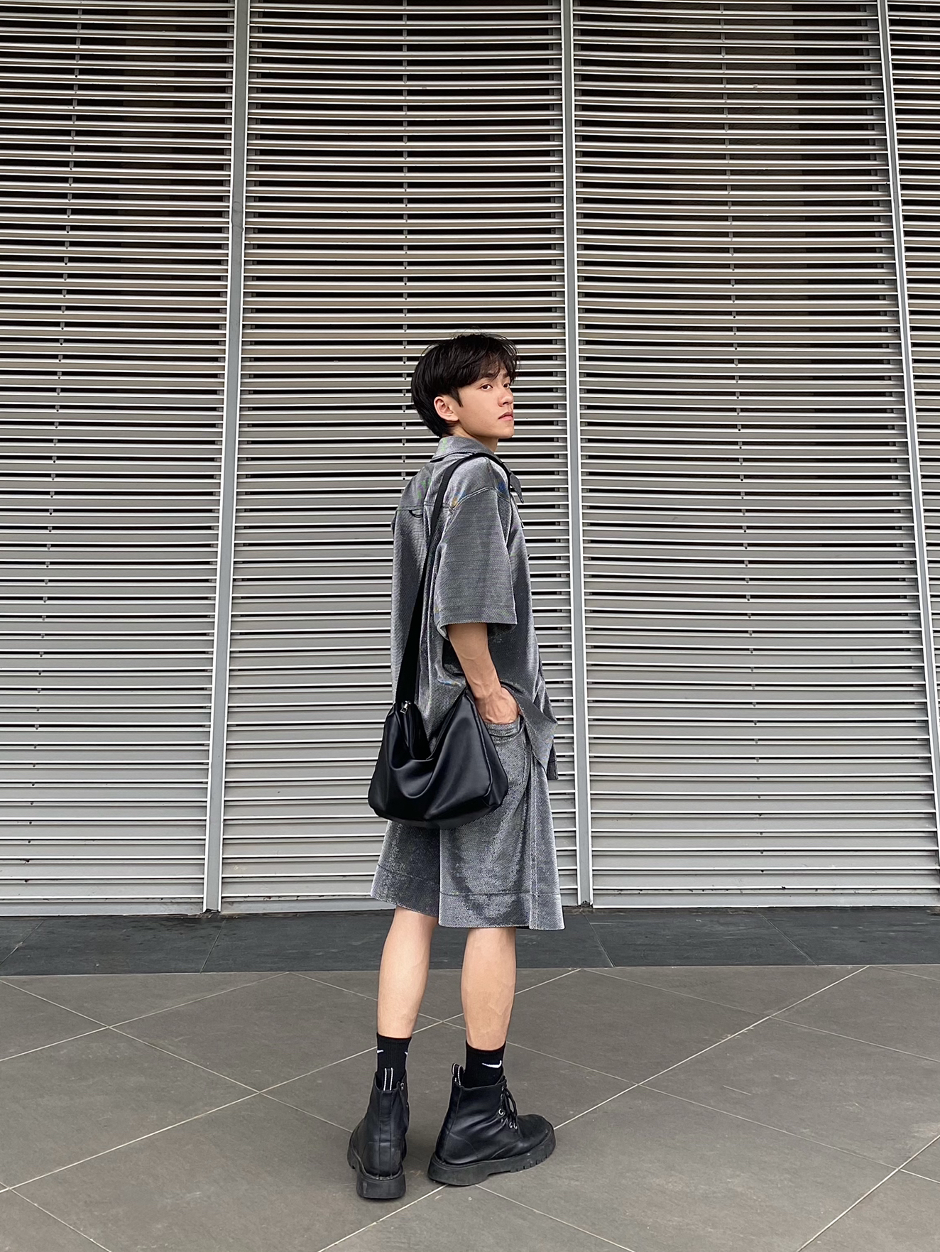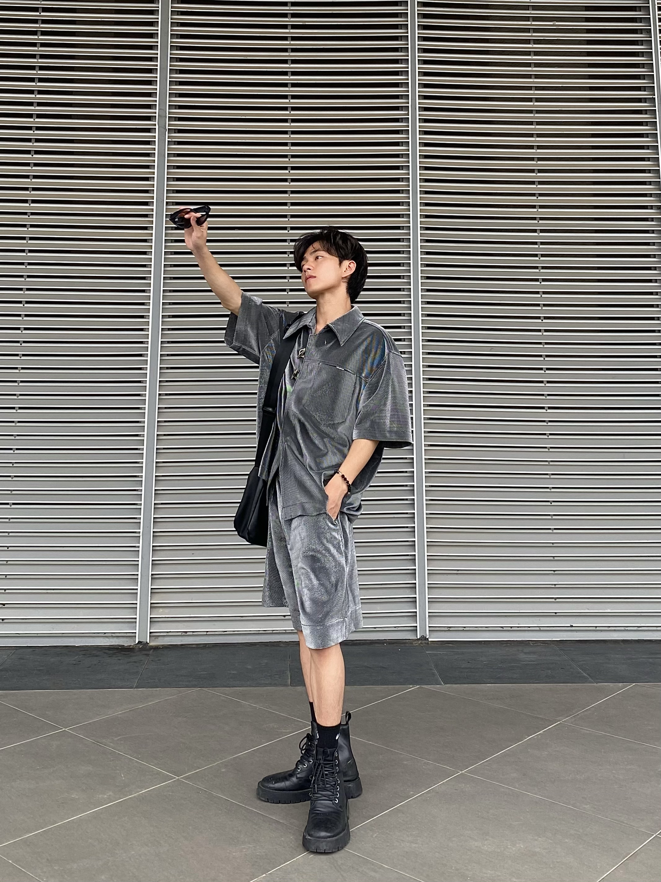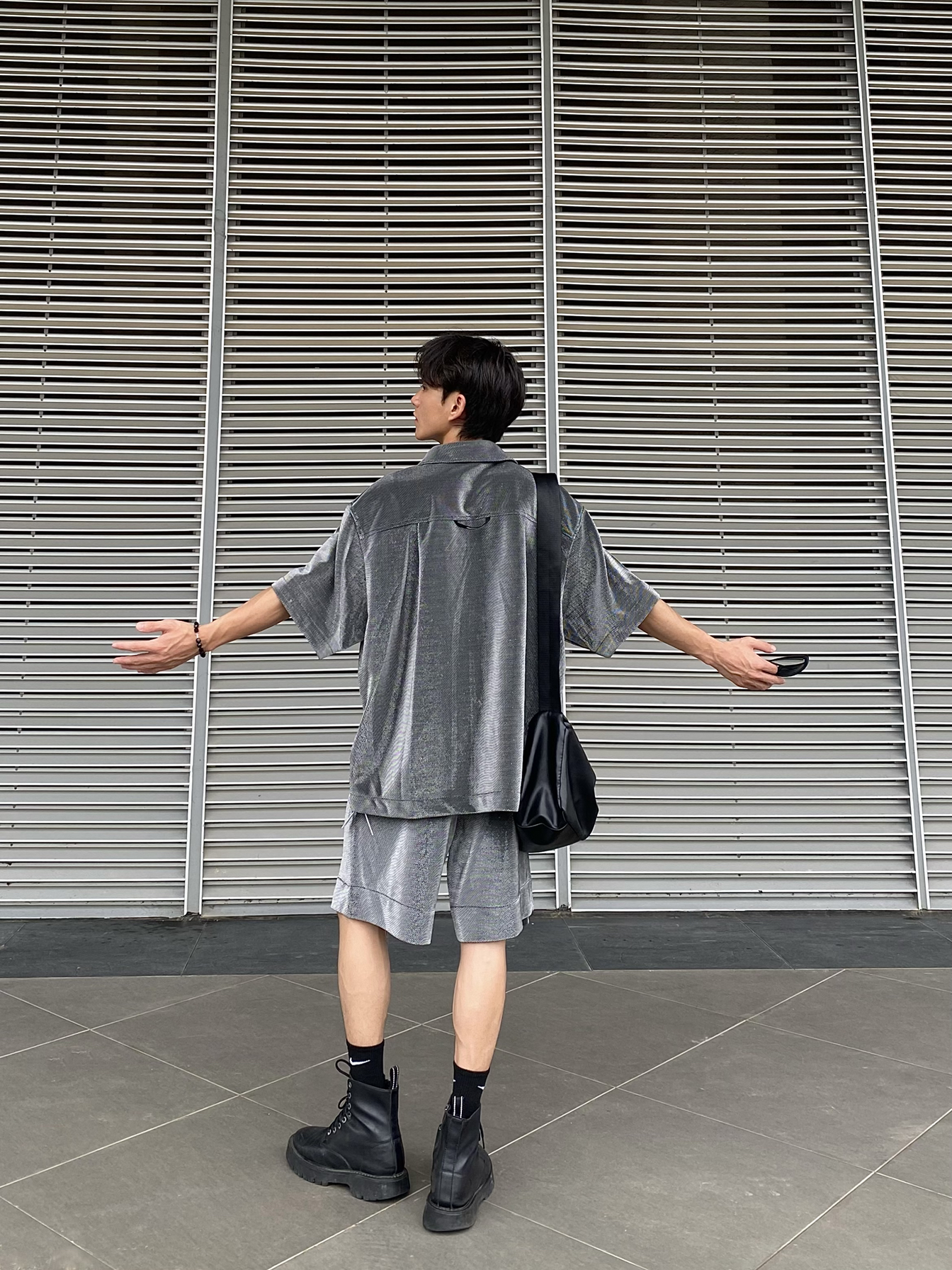 今日穿搭分享: 1⃣️上今天给大家分享的是一套垂感细闪斜纹衬衫套装,这款套装的设计非常时尚新颖,款式高级! 2⃣️整套衣服版型宽松大气,颜值高且面料触感非常好,上身效果很棒!喜欢的兄弟速来抄作业❗️