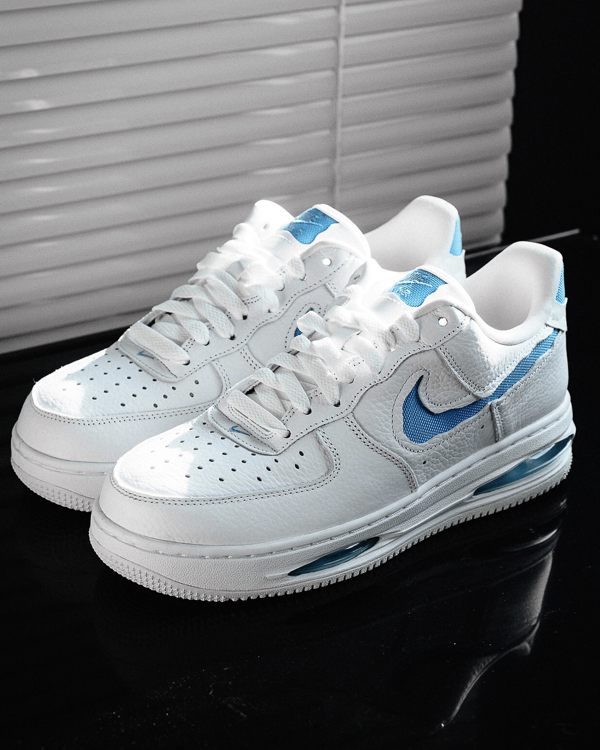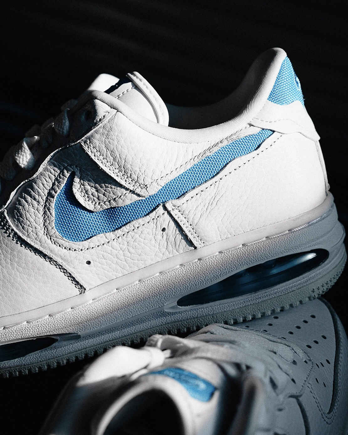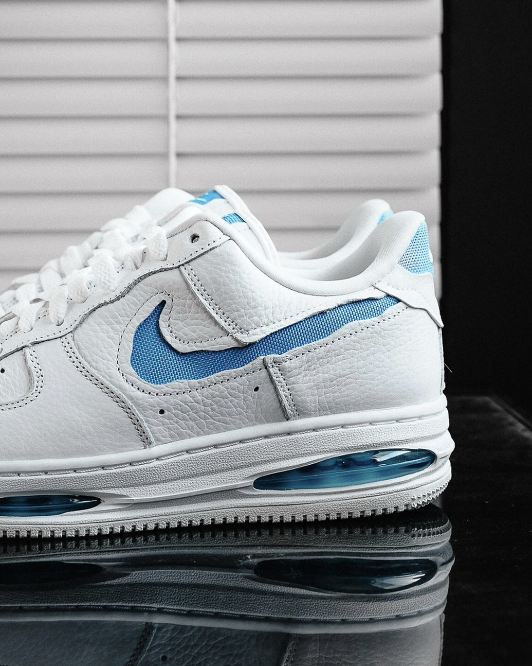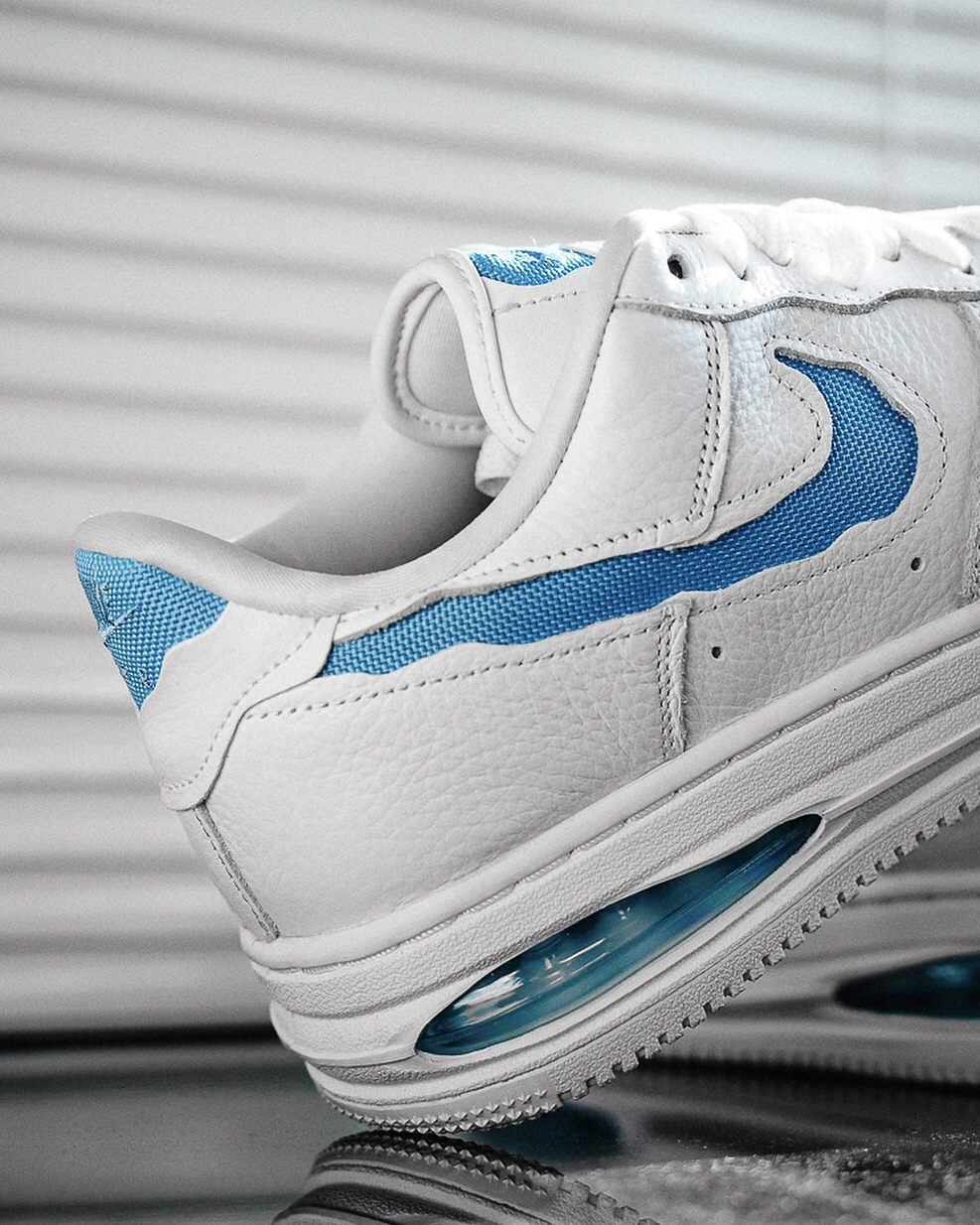 这双空军一号在外观设计上有些很好的视觉效果,采用了解构设计风格,虽然是普通的空军一号鞋型,但这样设计,立马感觉很不一样,加上清新的白蓝配色,很适合夏天来穿,尤其是中底解构漏出的气垫设计,又让脚感增强不少,夏日通勤穿很不错。
