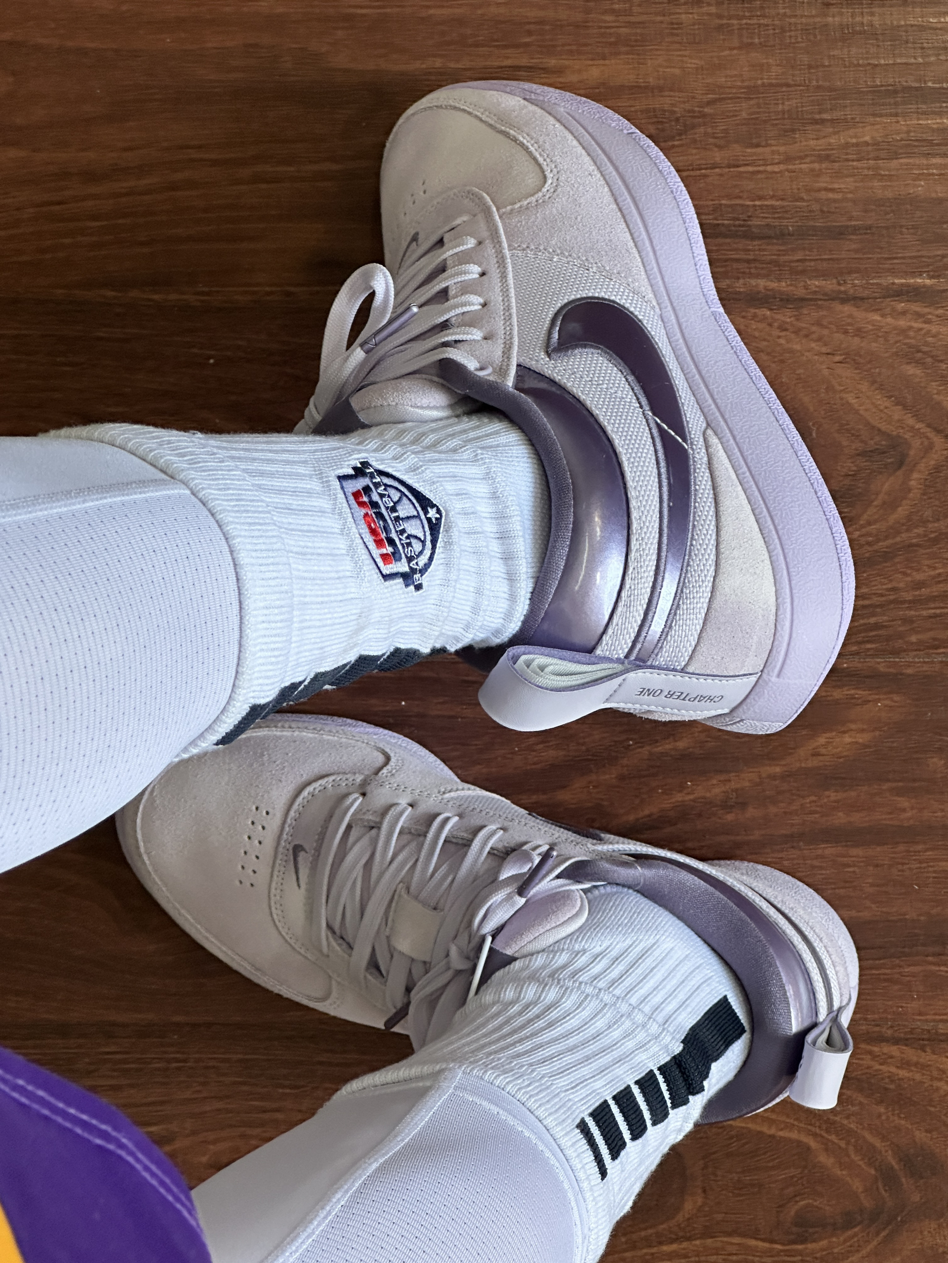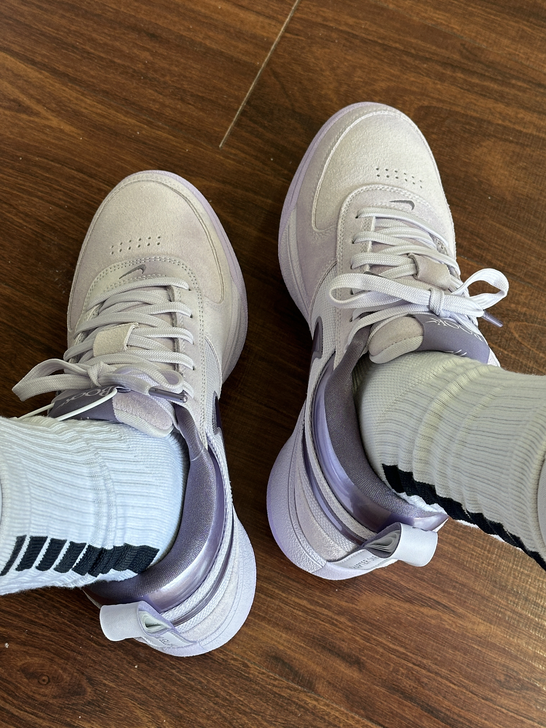 今天上脚分享布克一代新配色 淡紫色的薰衣草配色很好看 个人很喜欢它的颜值设计 不仅能打球 平时当板鞋穿也没问题 中底调教的很好 上脚就能实战👍