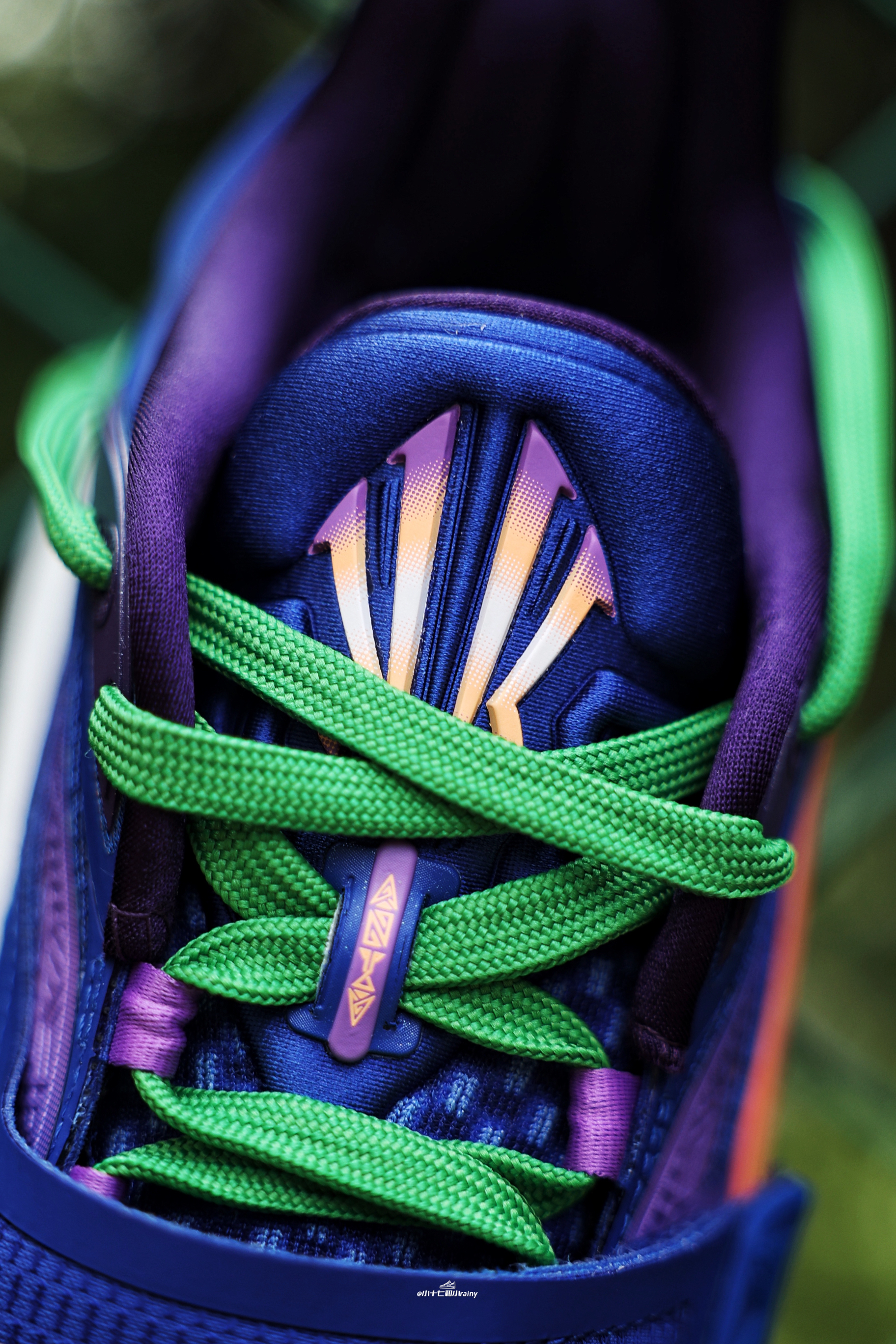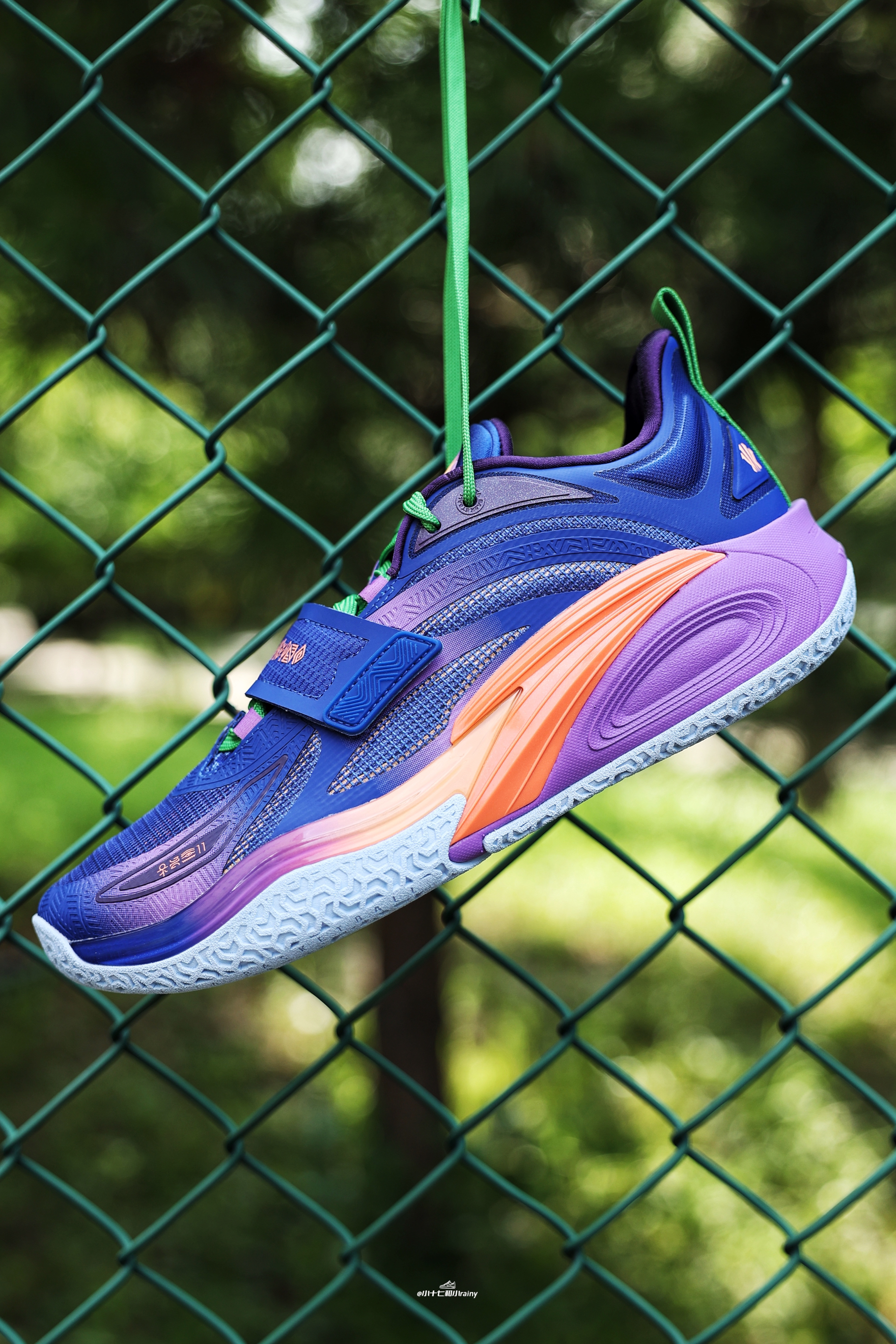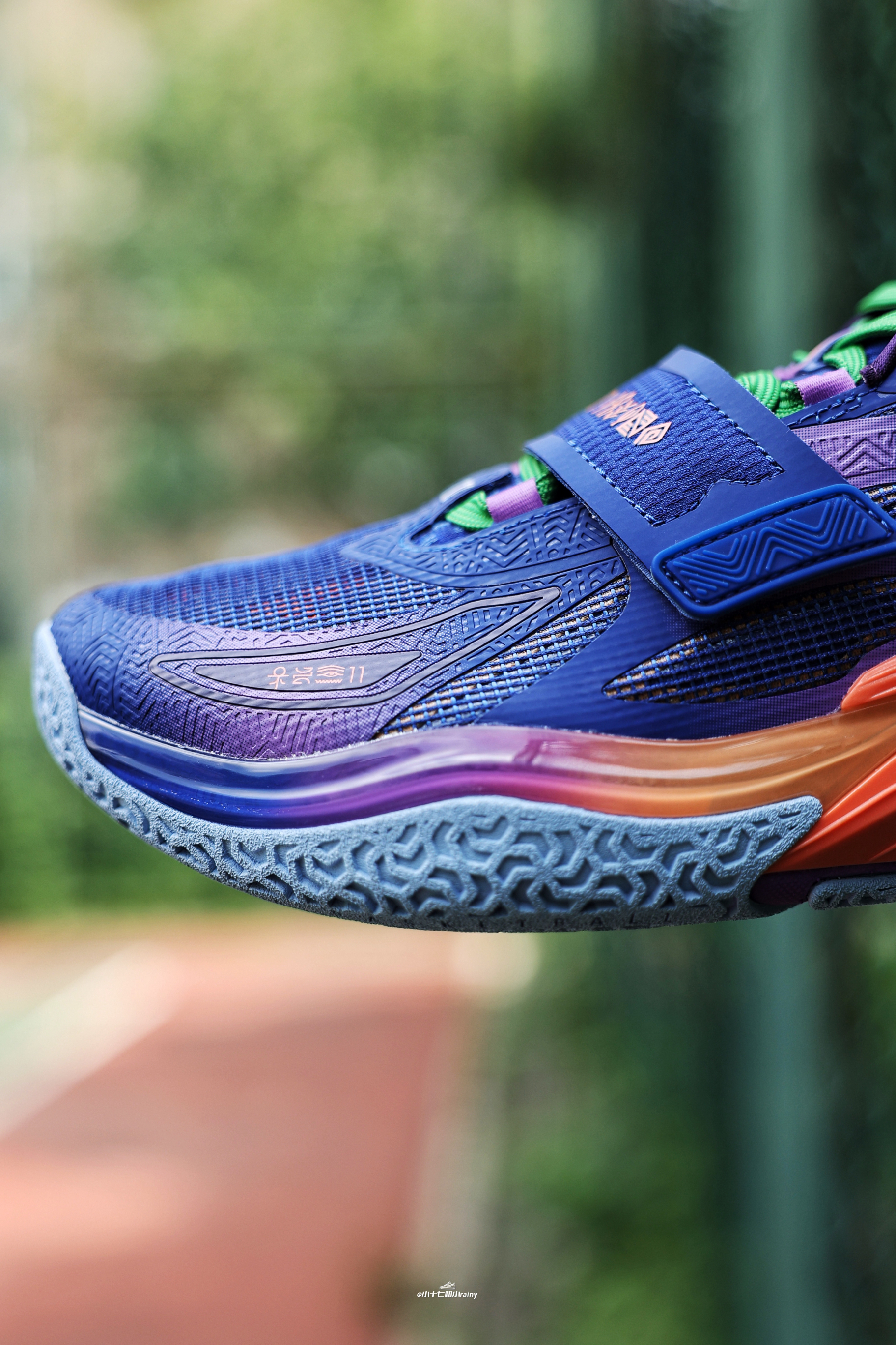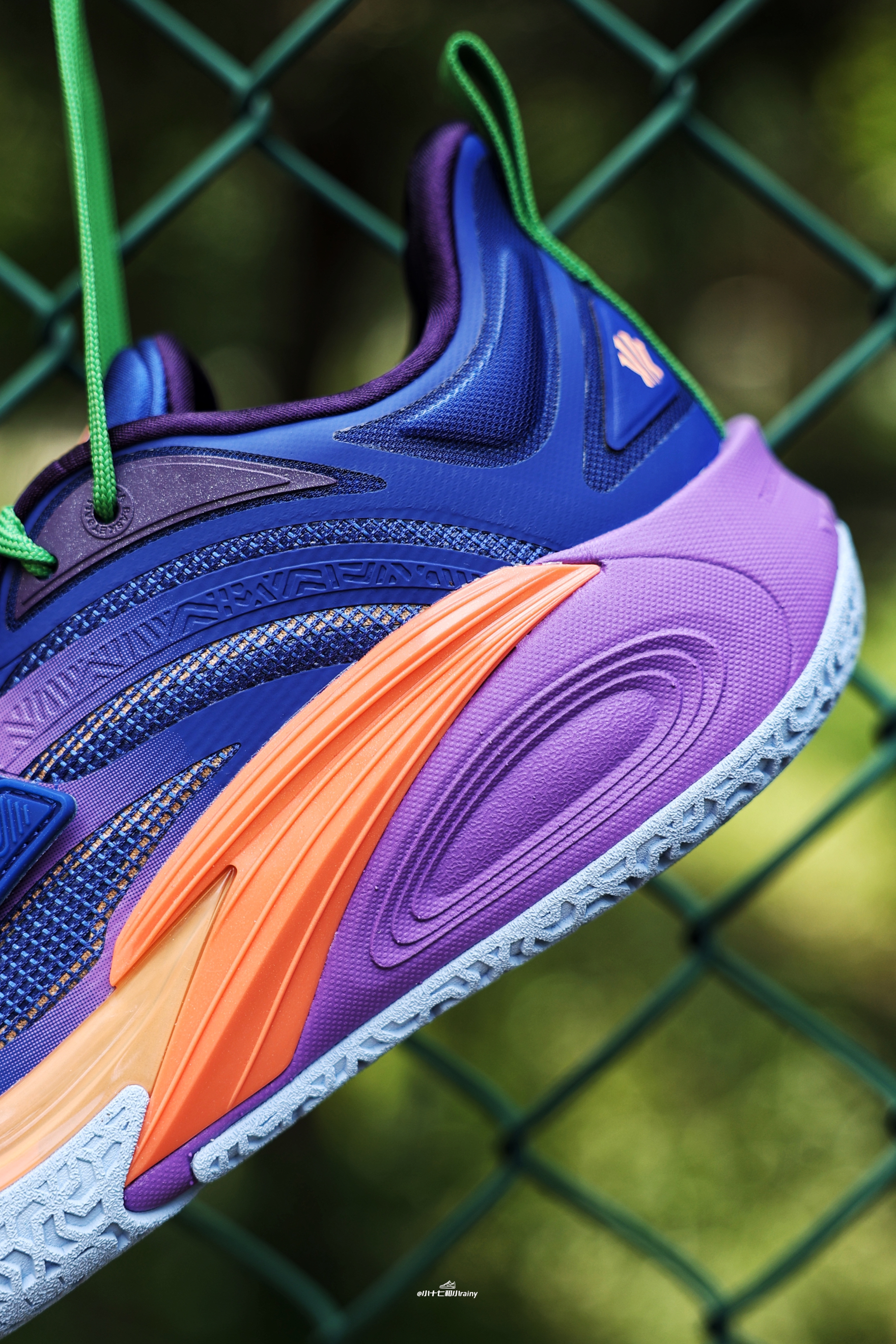 欧文一代巴黎奥运限定?!但却各种减配!!安踏玩不起了?! 推荐理由 今天给大家带来的是这双欧文一代鸢尾花!这双毫无意外的也倒闭了!虽然说是巴黎奥运会的限定设计,但是也难逃倒闭的命运!一起来看看吧! 实物质感 这次的这双设计灵感来自于巴黎的鸢尾花,整体配色可以说很是花里胡哨,很符合欧文的审美,尤其是大量紫色的加入。鞋身整体采用鸢尾花灿烂的蓝紫色营造,细节辅以活力的阳光橙及草绿色点缀。这次确实减配...