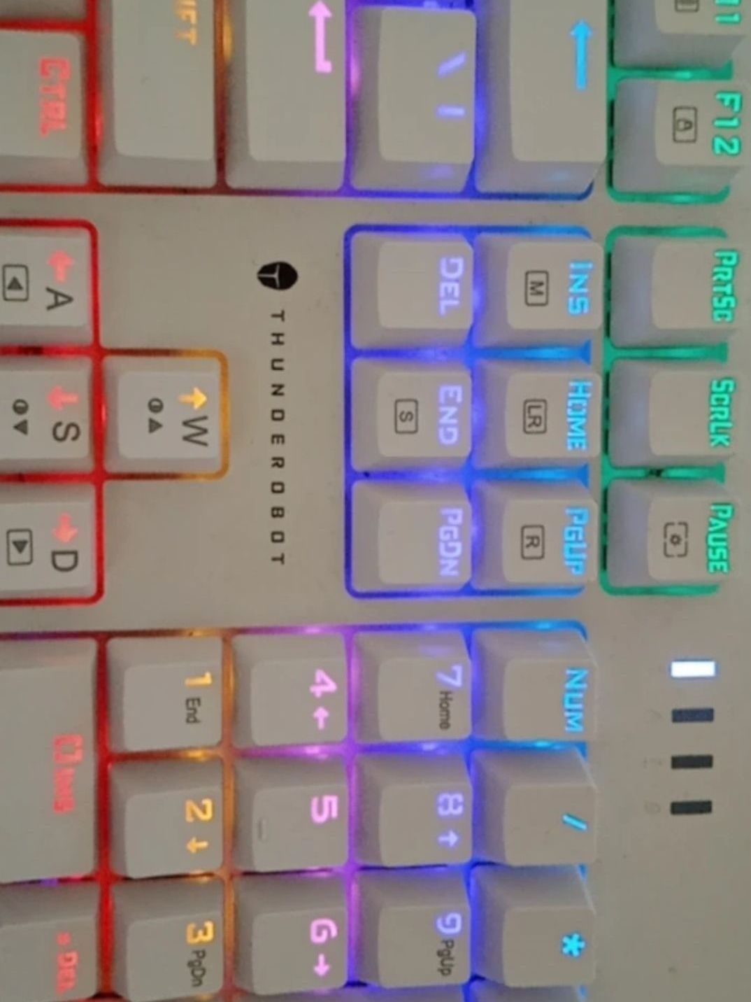 这款键盘灯光颜值很高,用来办公使用手感非常棒,比同价位的雷柏用起来舒服多了,雷神的东西越做越好了,性价比很高,家里很多都换成雷神的东西了。键盘灯光特效很多,非常好看,键盘的轴敲起来很有力度感,回弹也很快,打起游戏来不存在键位冲突的问题,很不错的一款键盘。