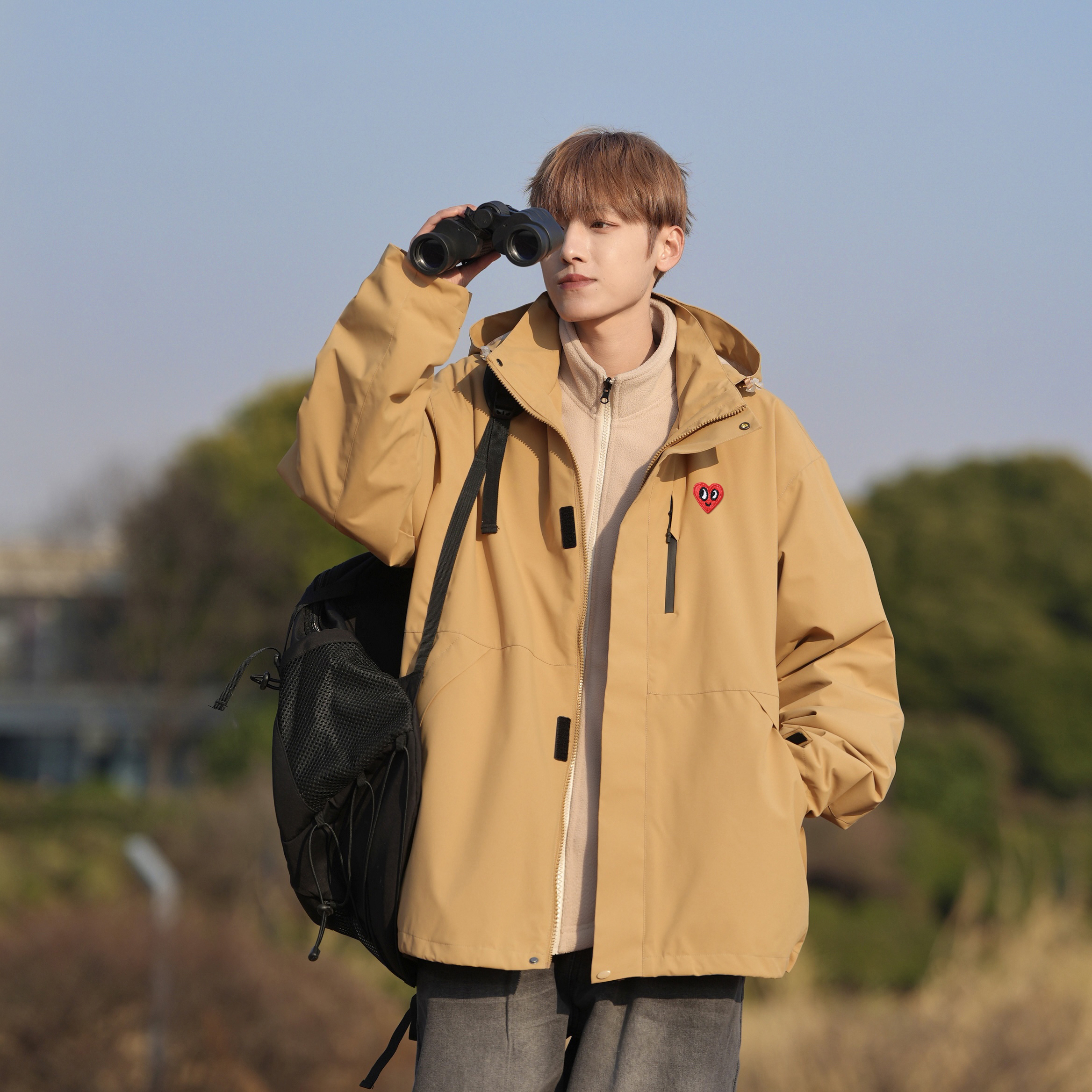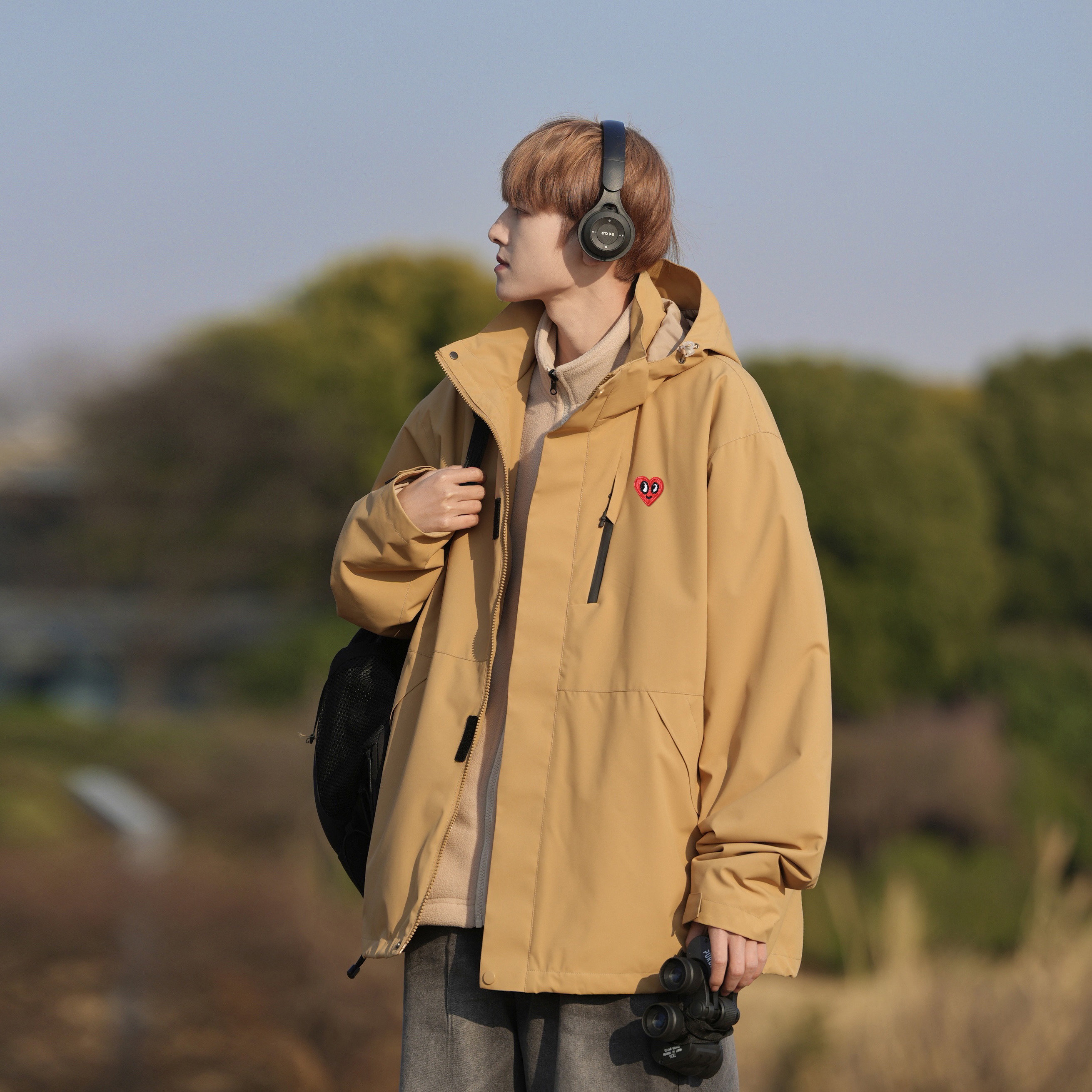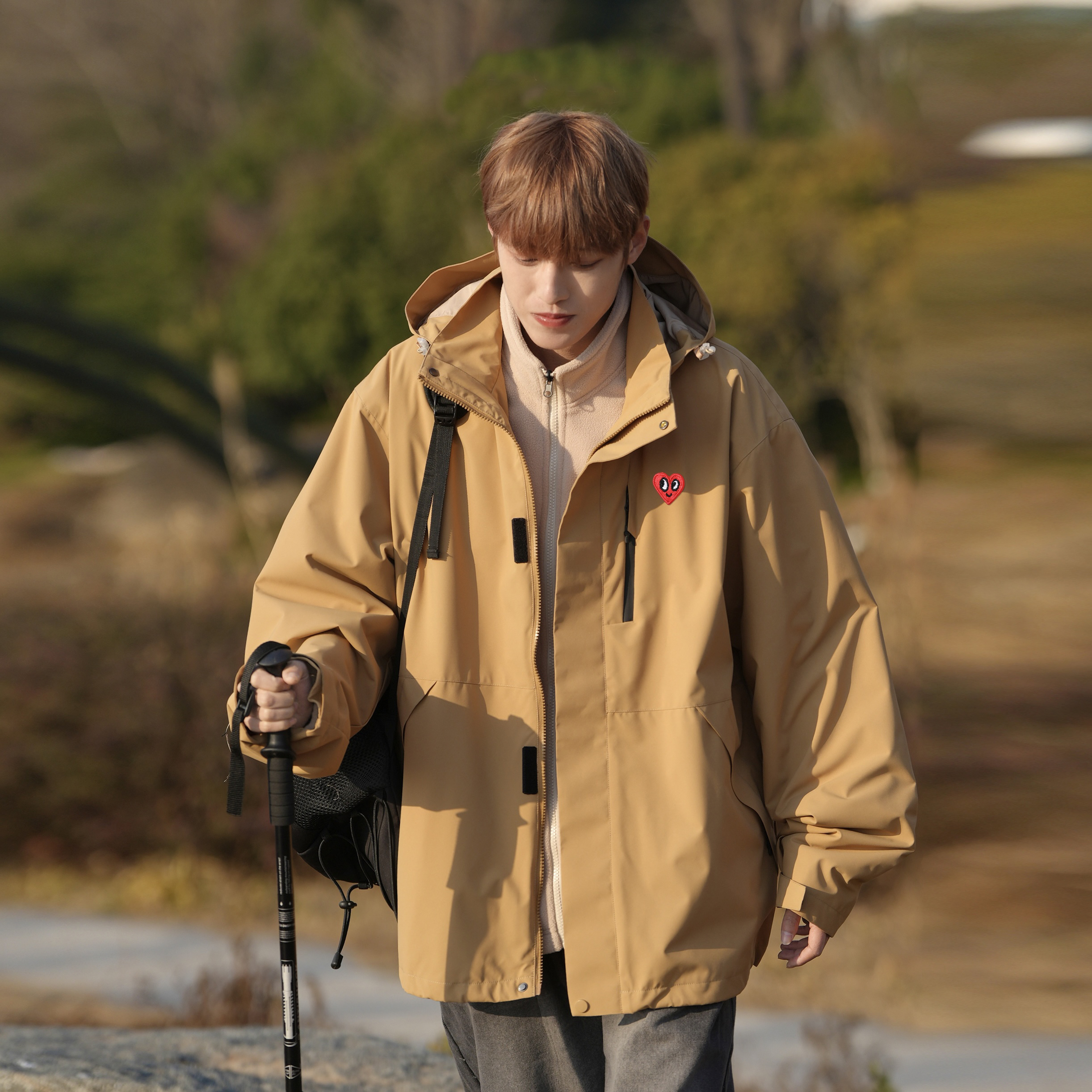 感觉好酷,抱着试一试的心态买了个棕色的冲锋衣,没想到意外的好看,防风防水,宽松舒适,上身好有秋天的氛围~