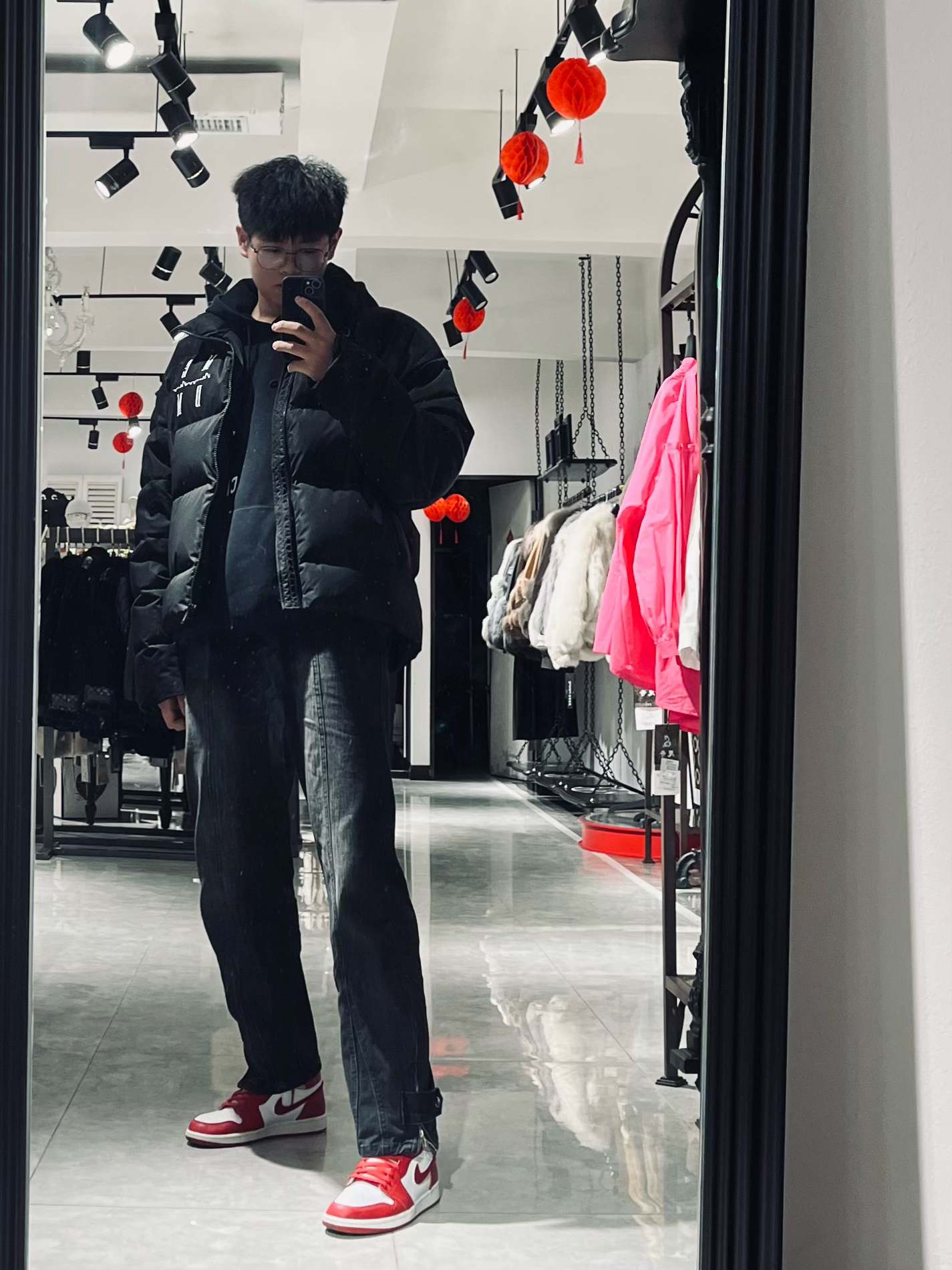 身高|体重:190|175 👔 上衣:medm羽绒服 👟 鞋子:Air Jordan1复古红色摇粒绒