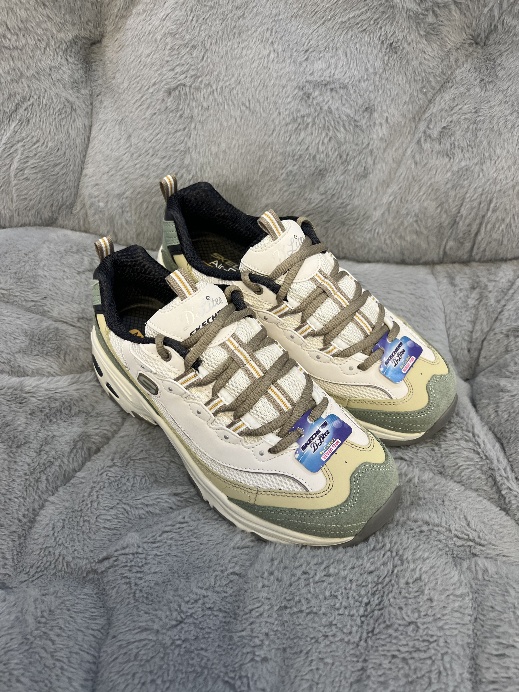 本篇笔记关联了Skechers/斯凯奇 D'Lites 1.0 奶茶熊 熊猫鞋 老爹鞋 闪穿鞋 厚底增高复古缓震百搭 女款/米白/橄榄绿等商品,为用户提供真实的使用体验和购买参考。
