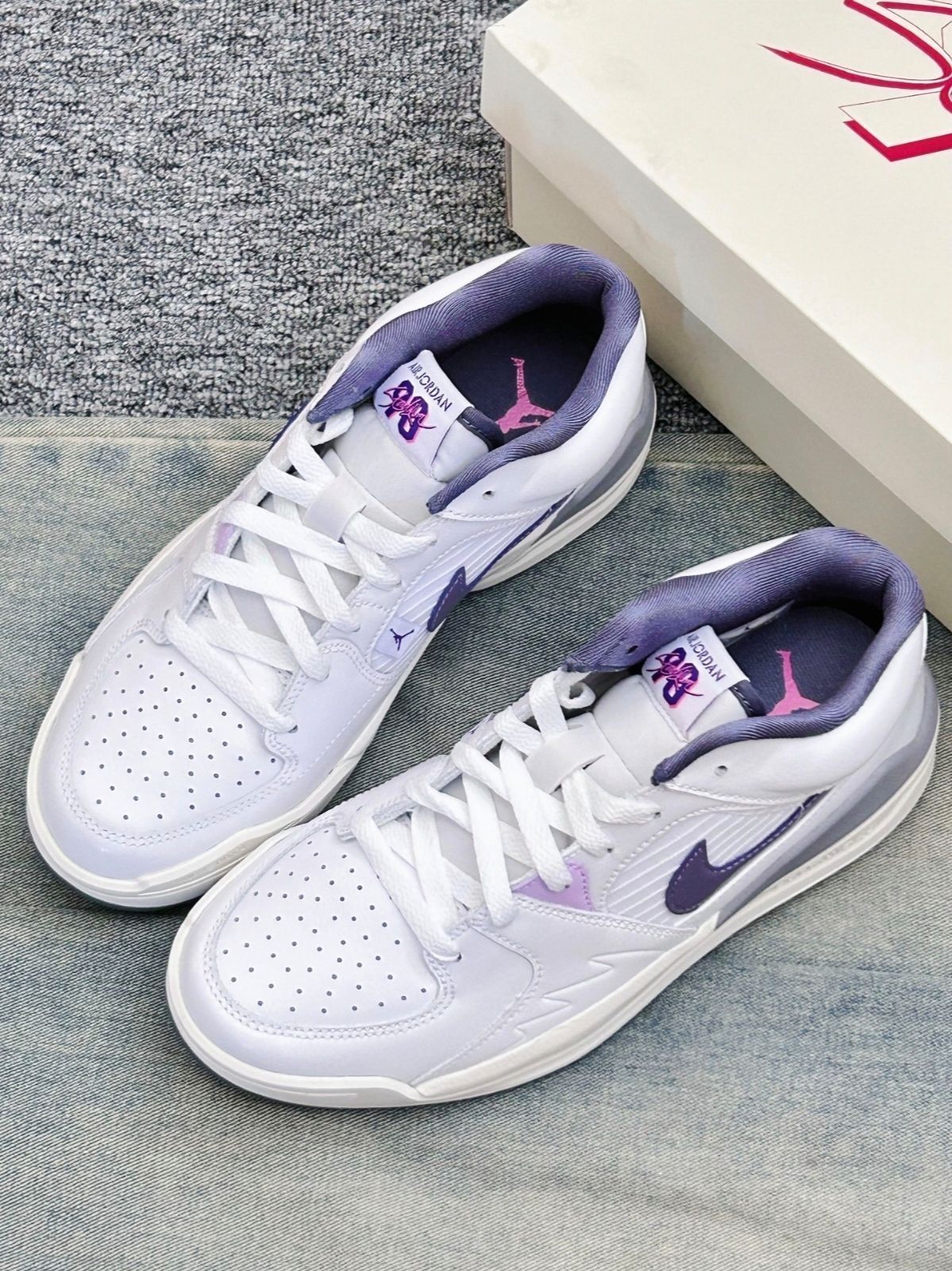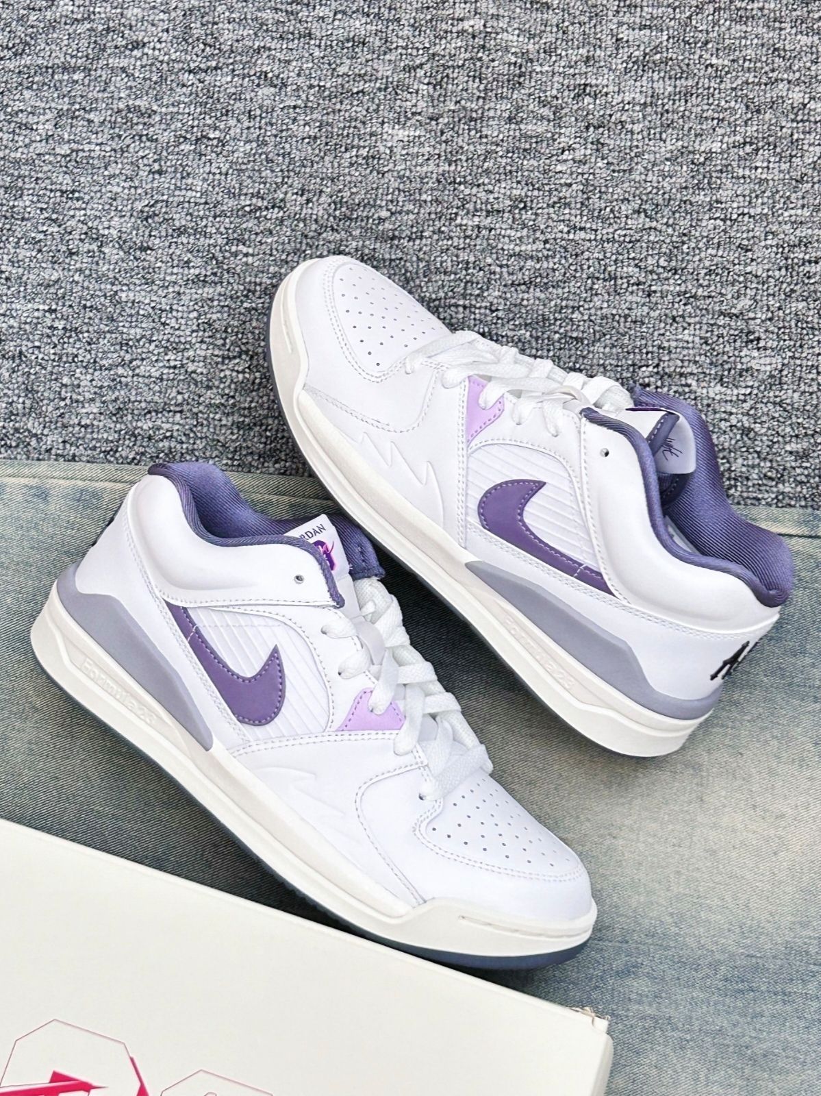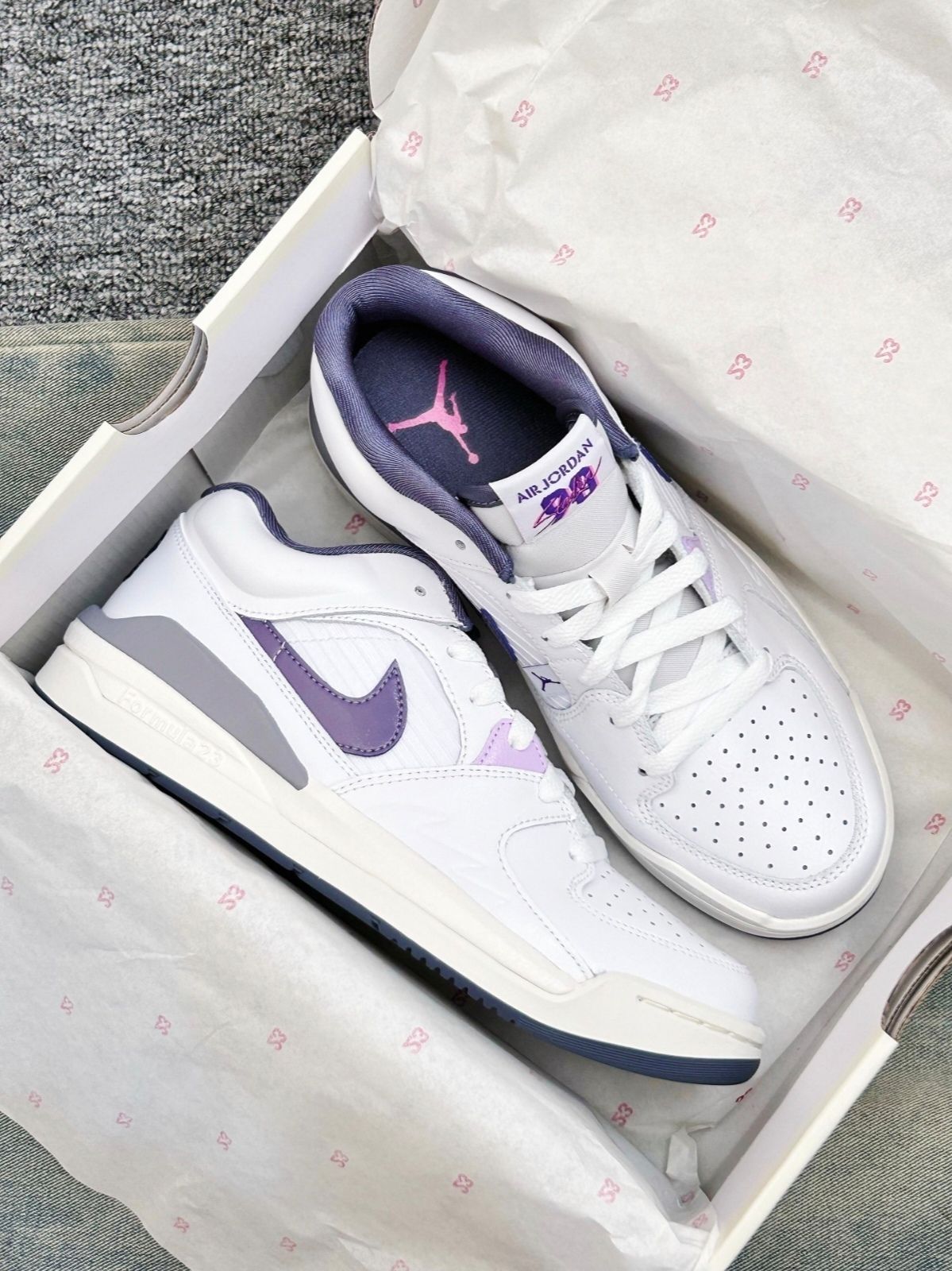 整体是紫色+白色颜值搭束脚裤或阔腿裤都好看鞋子白色部分好打理这个不用太担心男女码都有,七夕鞋是有着落了