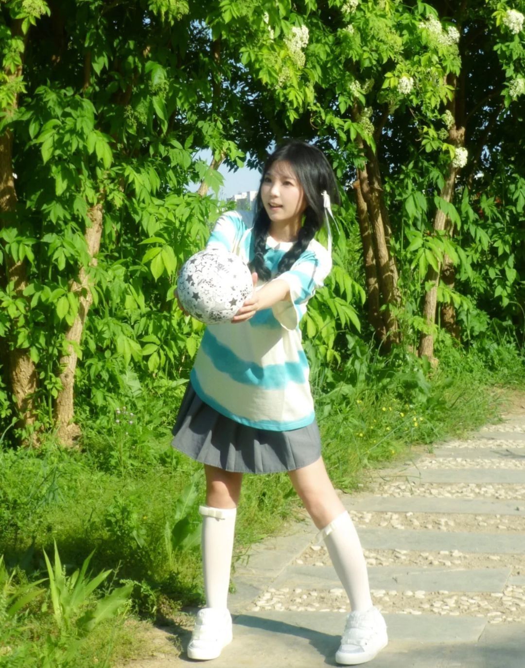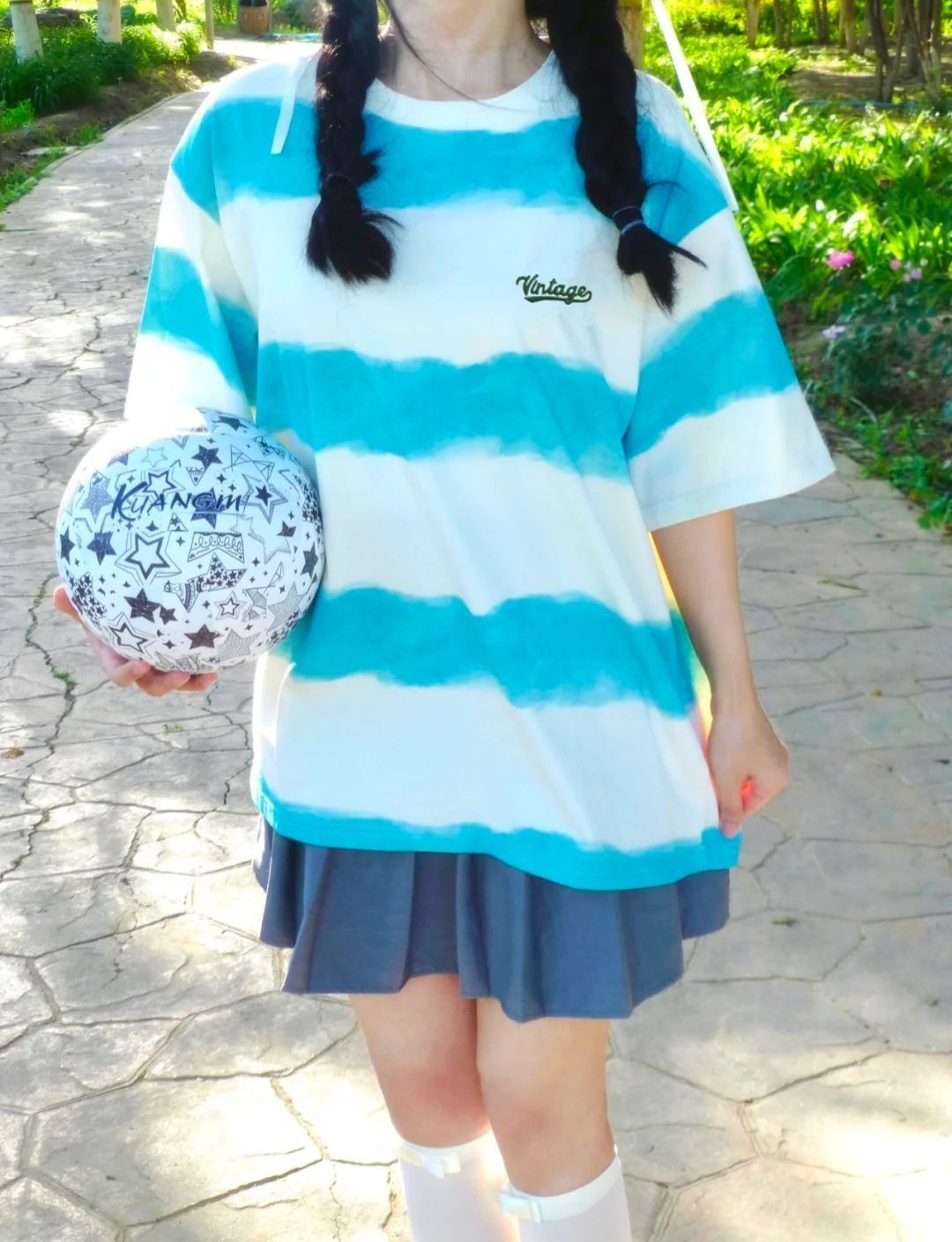这件扎染短袖和甜妹可太搭了吧! 不甜也能给你变甜呢😙 而且并不挑肤色(白皮,黄皮,黑皮都可以穿它) 搭配起来也阳光四溢,给人小清新的感觉 现在出货量跟上了,也不用担心买不到啦! 穿搭日记:RASPBRAND扎染短袖➕灰色百褶裙➕小腿袜➕小白鞋