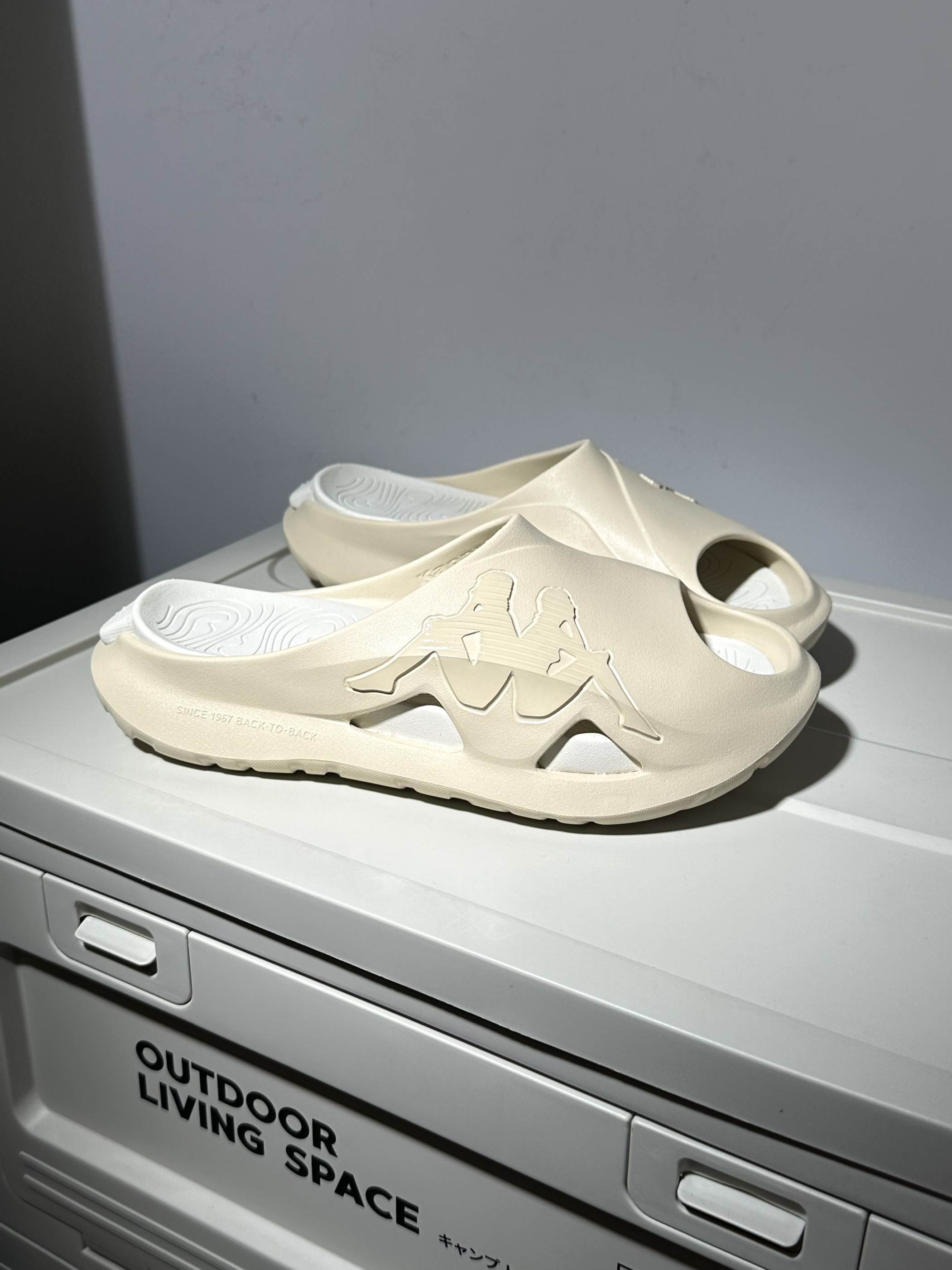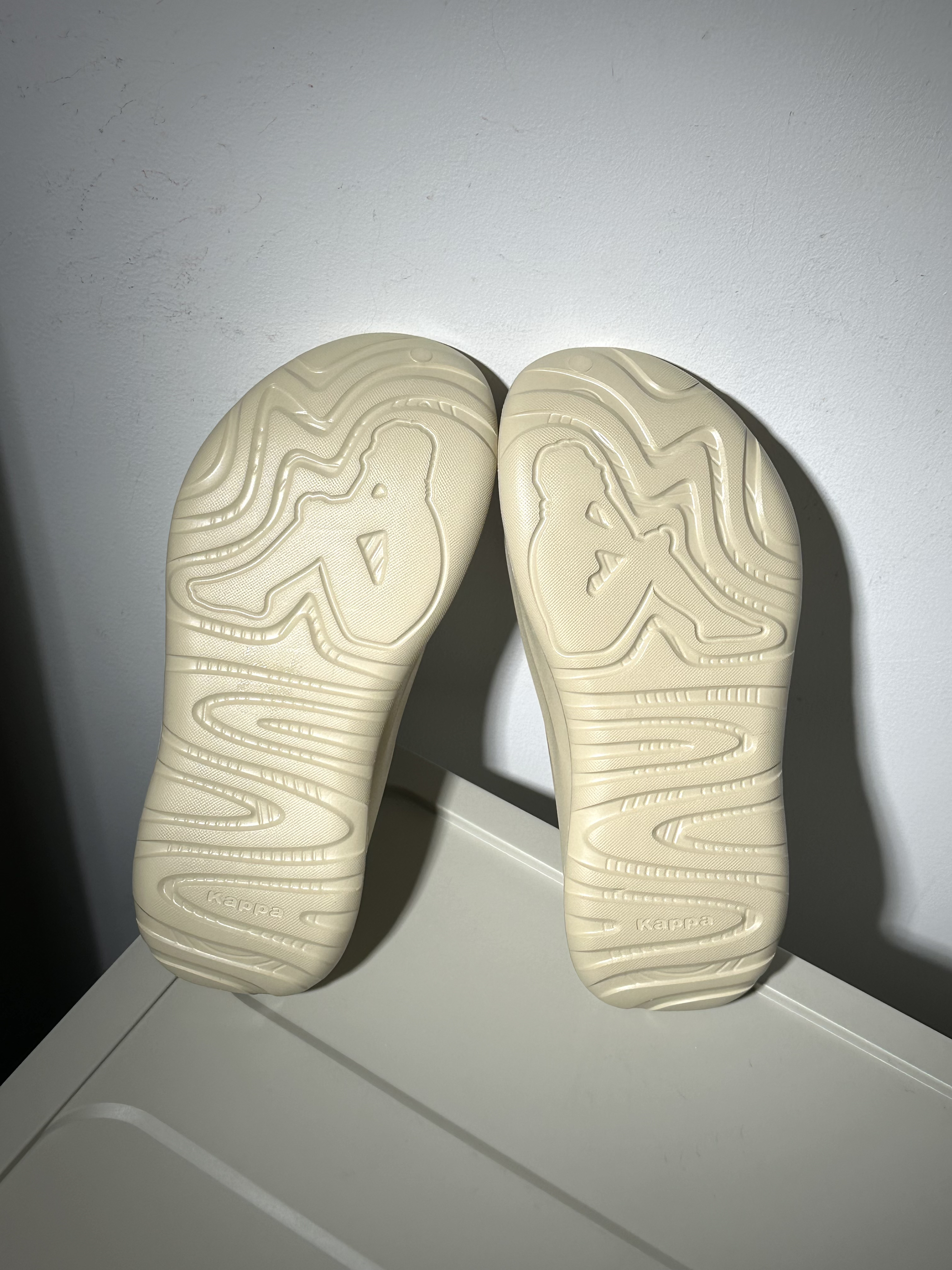 🏖️配色:最近拿到了这双高级感满满的kappa拖鞋~白棕色上脚很好看很显白✨ 🌴材质&脚感:鞋身用的发泡材质,很轻便脚感也很软糯,居家或者出街都很不错🤗 🧡尺码:正码选择就行💯