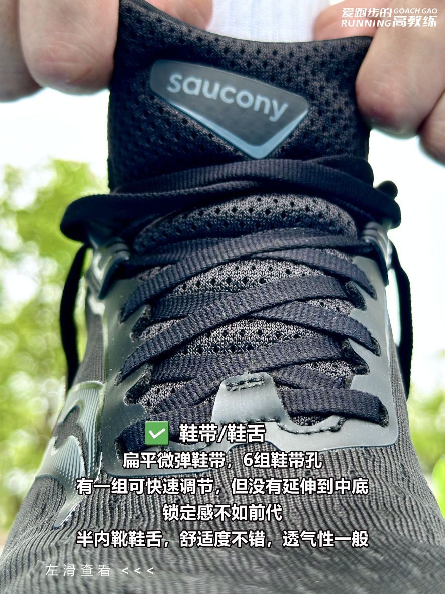 ✅鞋带/鞋带孔:扁平微弹鞋带,6组鞋带孔,有一组可快速调节,但没有延伸到中底,锁定感不如前代;
