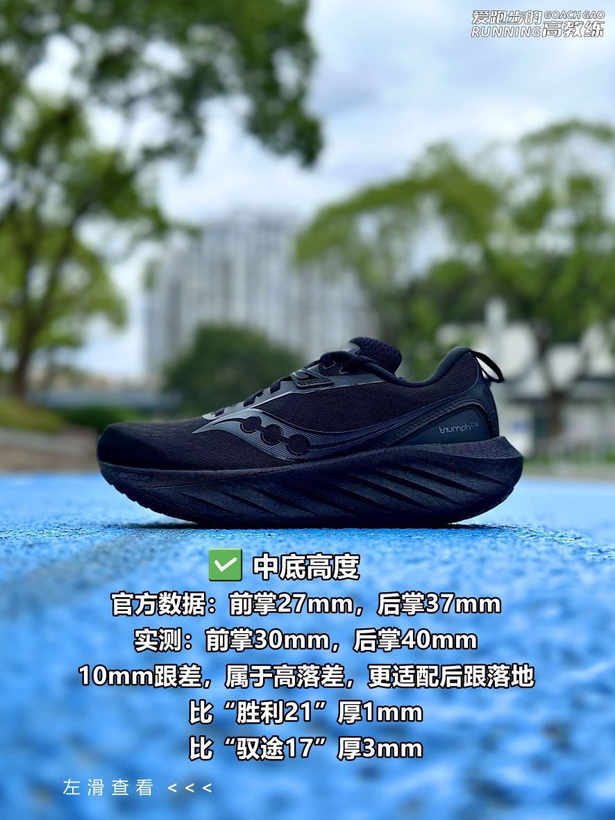 ✅跟差:前掌30mm,后掌40mm,10mm跟差,属于高落差,更适配后跟落地;
