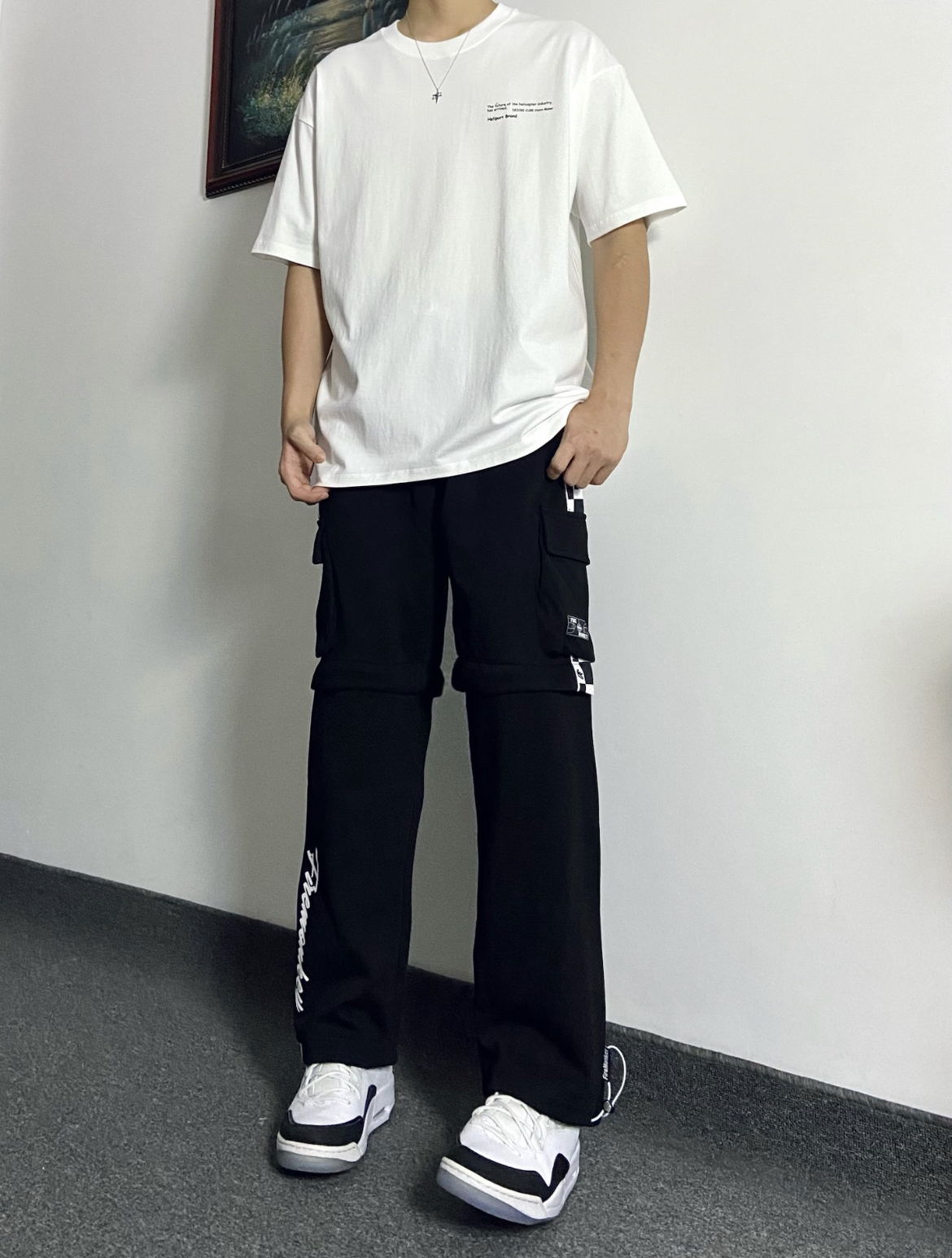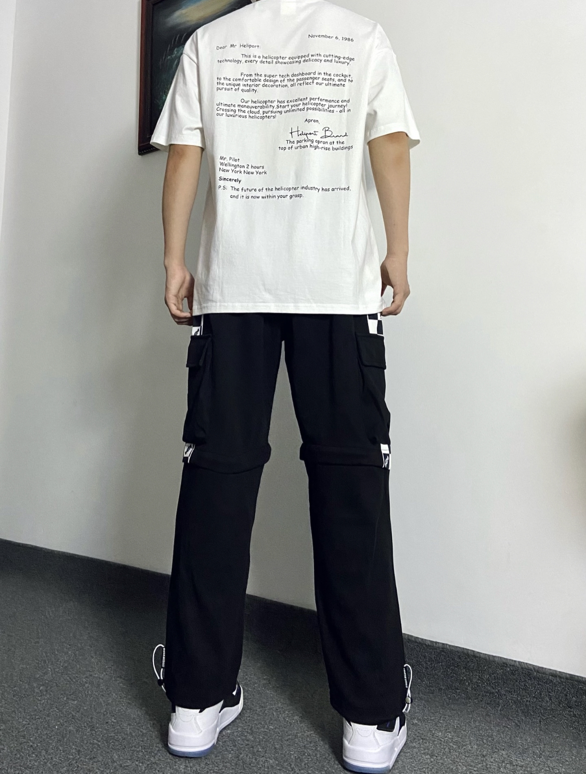 今日份穿搭: 上身选择的这一件书信字母设计形式的短袖T恤,T恤的面料轻薄透气,上身效果非常不错! T恤后背上的书写排列字母,看起来就会很有高级感,出街必备单品!