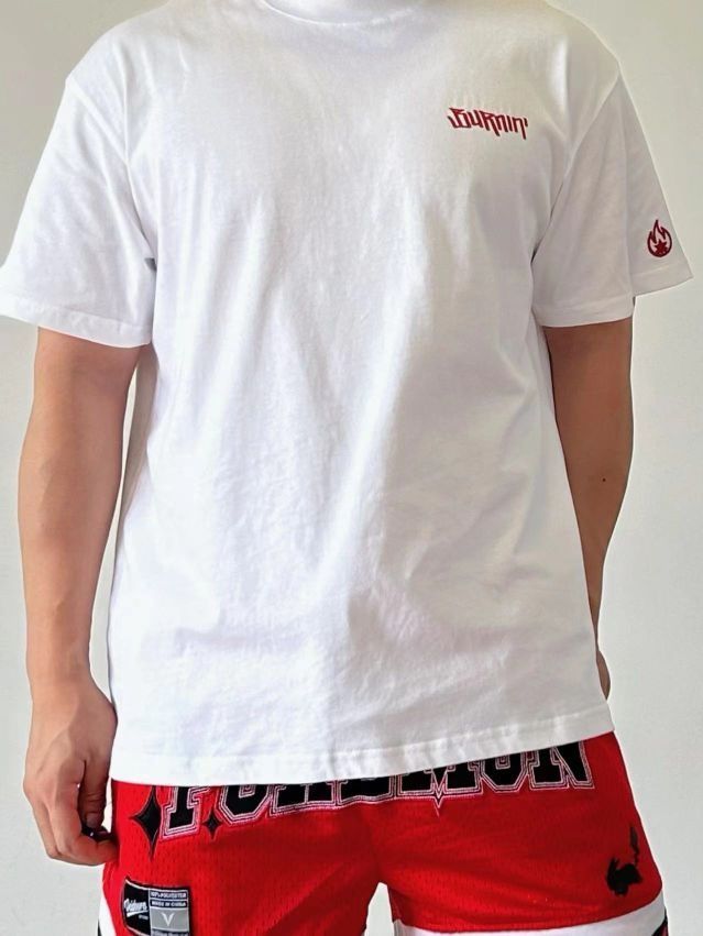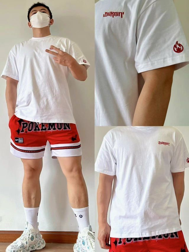 夏天嘛,就得穿得舒服又好看!🌞 今天这件白色T恤,简直就是帅到没话说!😎 胸前那红色的火焰字母设计,再加上袖口小巧精致的小火焰LOGO,简直太抢眼了!👀🔥 搭配一条红色篮球裤,整个夏天都被点燃了!🔥👖一步都在释放着活力与激情。🏀