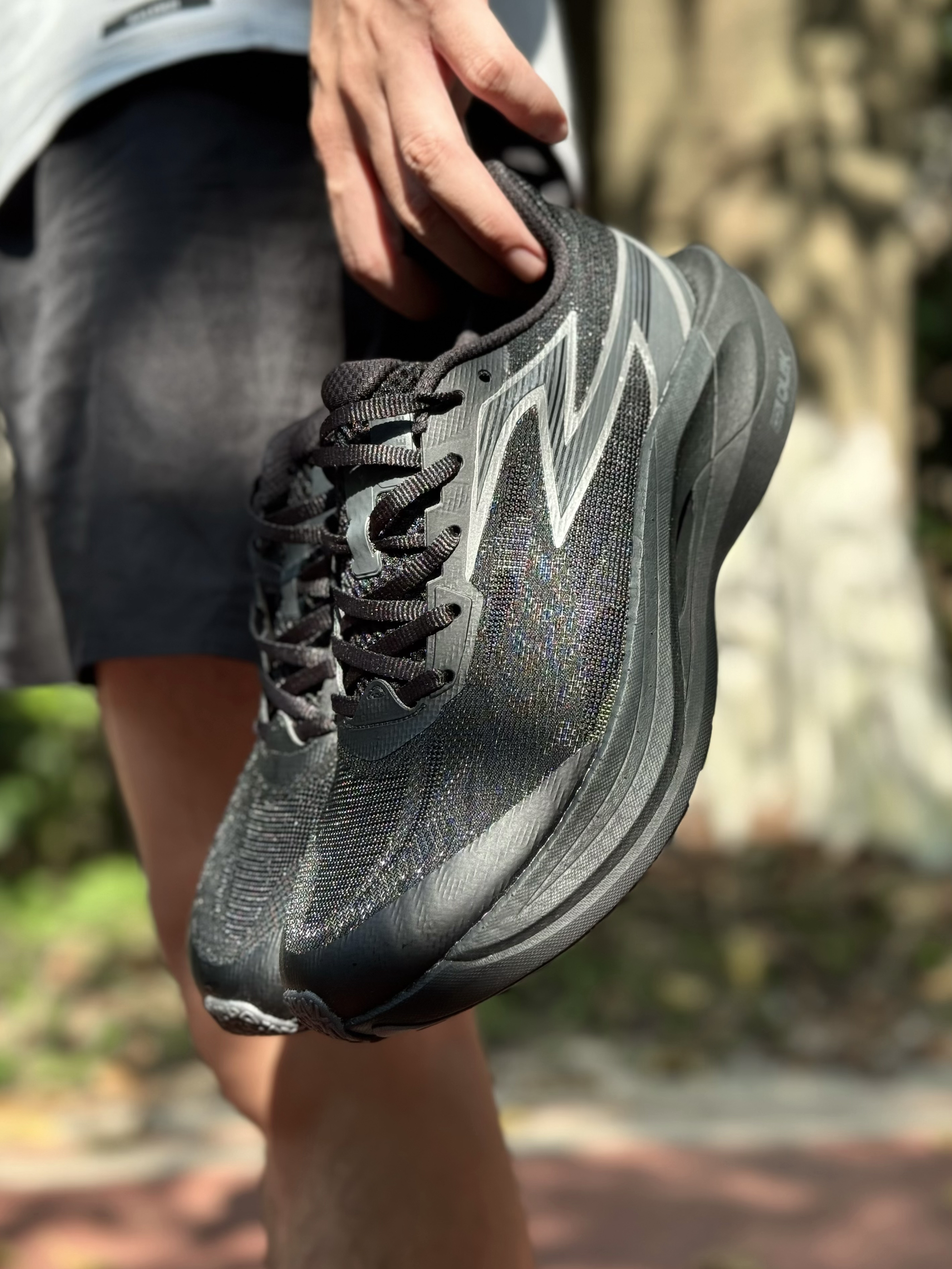 最近又入手了一双黑武士跑鞋,来自361°的飞燃2ET👟,我也管它叫英雄配色,或者是黑银配色! 不得不说,侧面的银色logo在阳光下真的太帅了,而且主体是纯黑色,低调又耐脏,总之很对我的味哈哈~ 配置方面,脂肪族发泡中底+全掌玻纤片,脚感软弹适中,推进力有但不会很激进,这种就很适合平时进行速度训练! 马上快到七夕,我觉得送对象也是个很不错的选择哦~