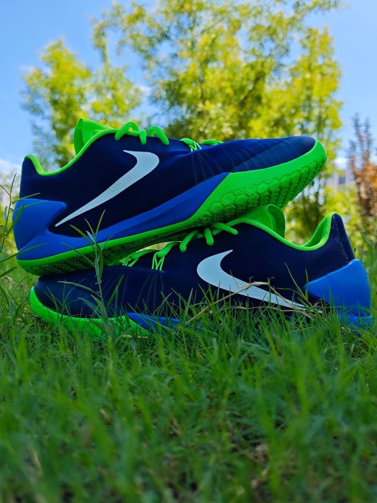 哈喽~大家好 Nike Hyperchase EP篮球鞋 国内版 今日测评 本人身高180☞体重130风格不一 外观:鞋型采用了低帮篮球鞋的设计,配色方面以绿色与蓝色为主,鞋面以网状的设计搭配绿色的鞋带,鞋舌也是以绿色为主,防滑的橡胶大底,底部与侧面都是有着logo的设计 使用感受:鞋子上脚比较轻盈,不单单是双篮球鞋平时搭配也是比较百搭,脚踩下去也是比较软弹的感觉,穿脱比较方便☞大底的纹路解...
