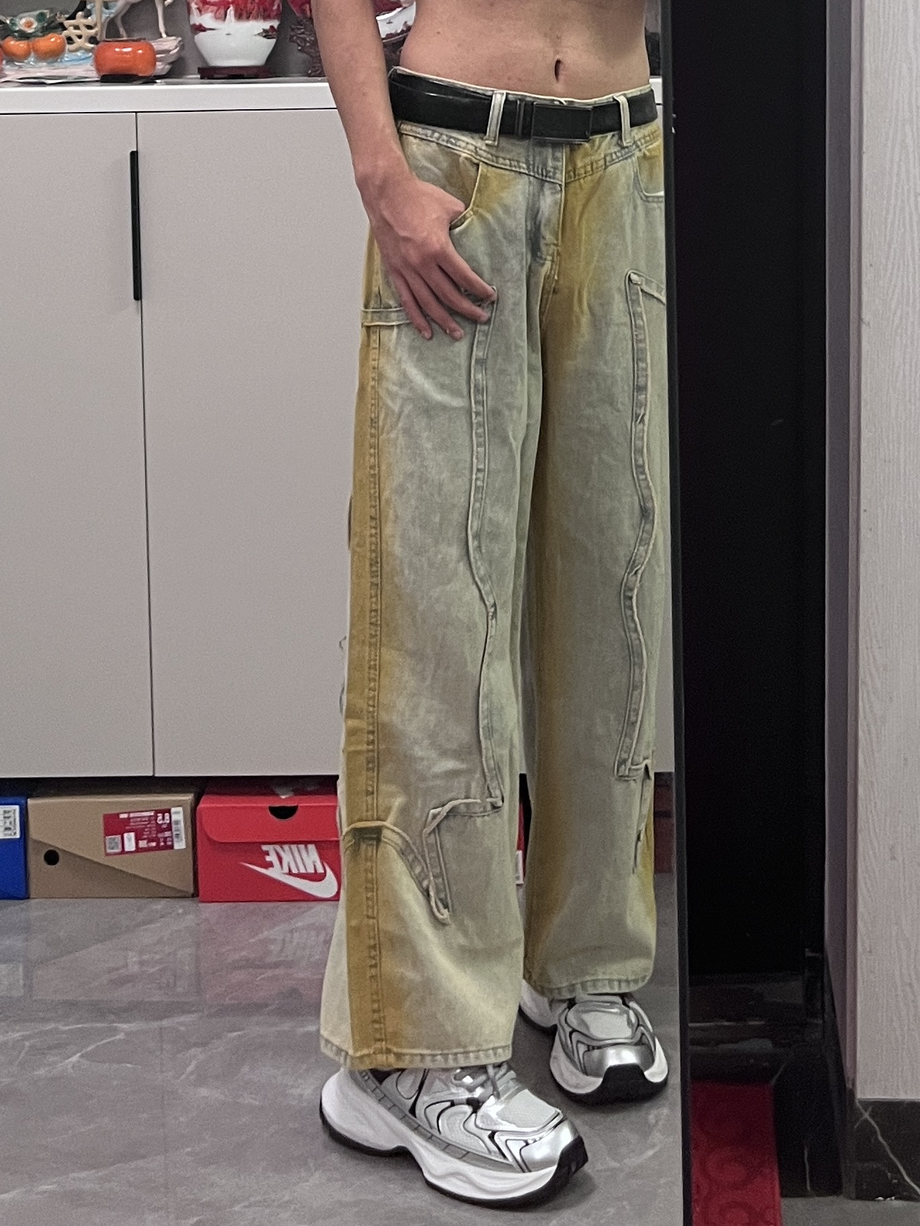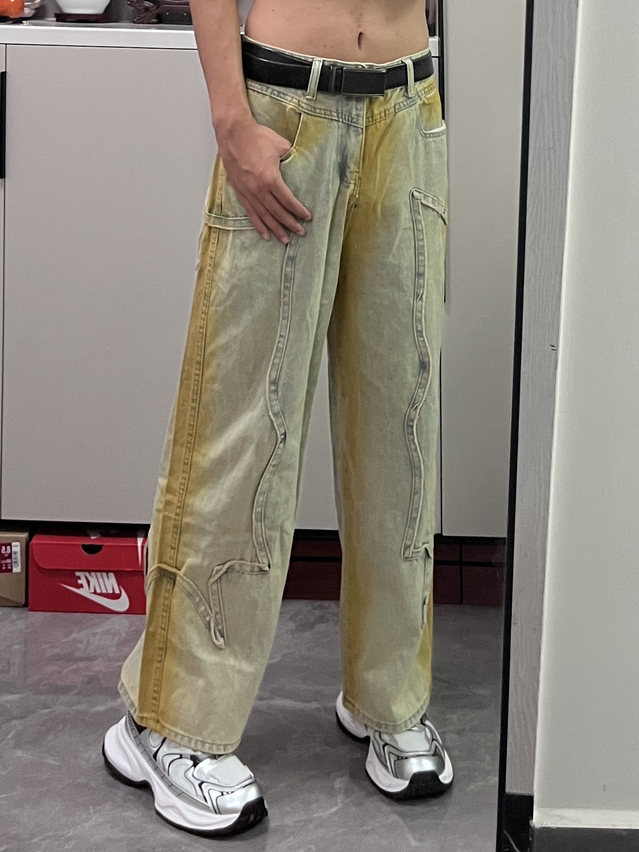 这款牛仔裤真的是太好看了,搭配银色的回力鞋好看不贵,家人们冲他