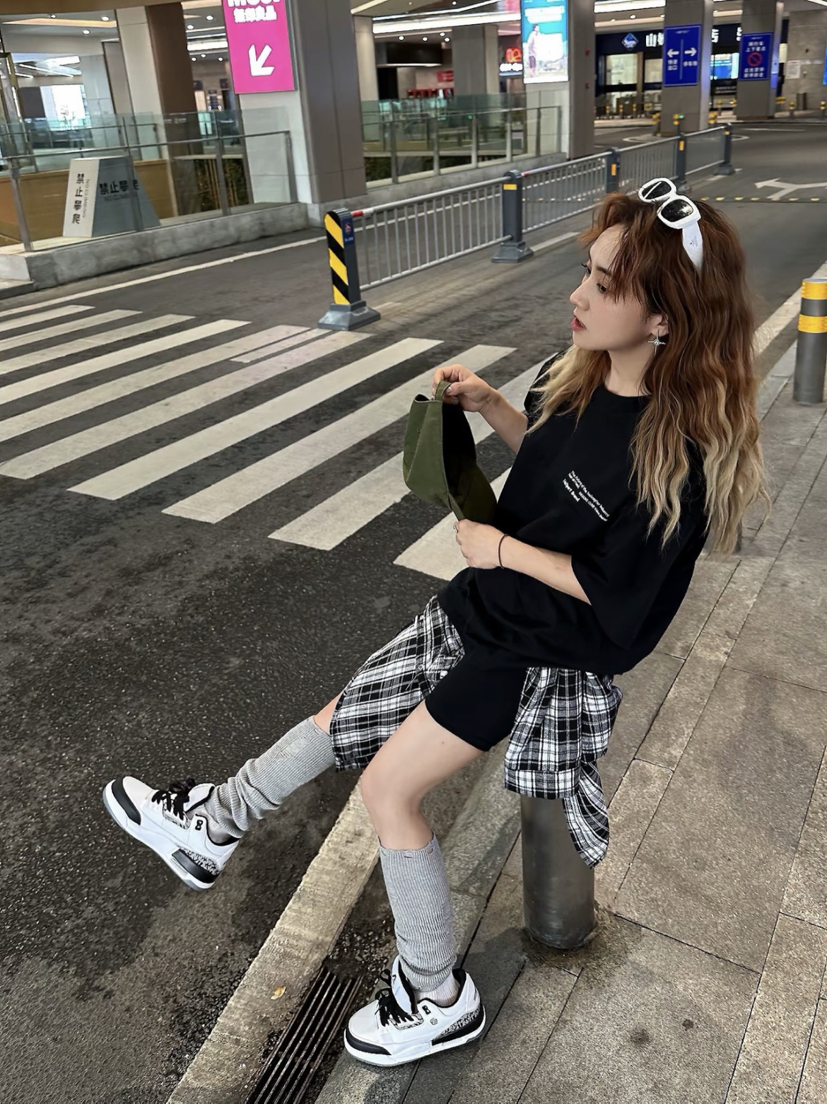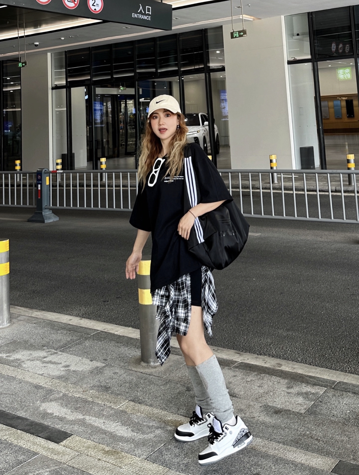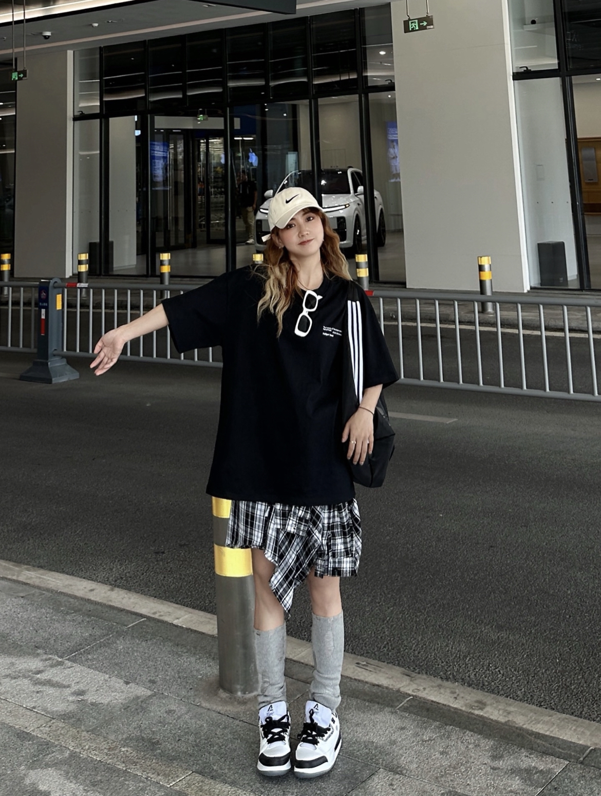 今天穿什么呢? 黑色短袖➕骑行裤 这件短袖也太百搭了吧,胸前的字母样式看起来就很简约又大气,穿搭起来真的很简单,后背的书信字母设计看起来也是很舒服的存在!
