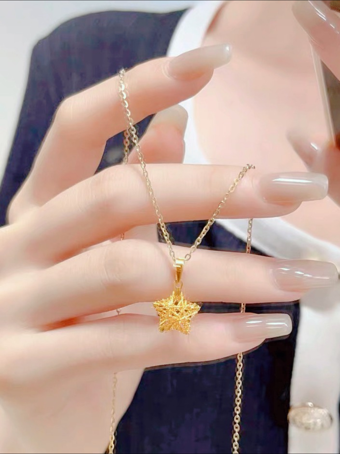 这款五角星项链经过精心设计和制作,确保每一个细节都完美无瑕。五角星的形状经过精细打磨,线条流畅而优美。链条部分则采用优质金属材质,光泽感十足,与五角星相互映衬,更显高贵典雅。戴上贼显白,气质女神立显。 (图片来自网络,侵删)