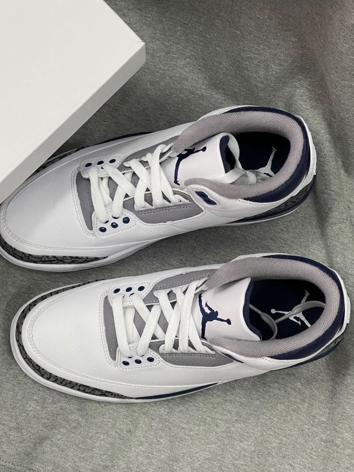 本篇笔记关联了Air Jordan 3 运动休闲鞋 潮流复古抓地支撑缓震合成革圆头 白色/深藏青/水泥灰等商品,为用户提供真实的使用体验和购买参考。