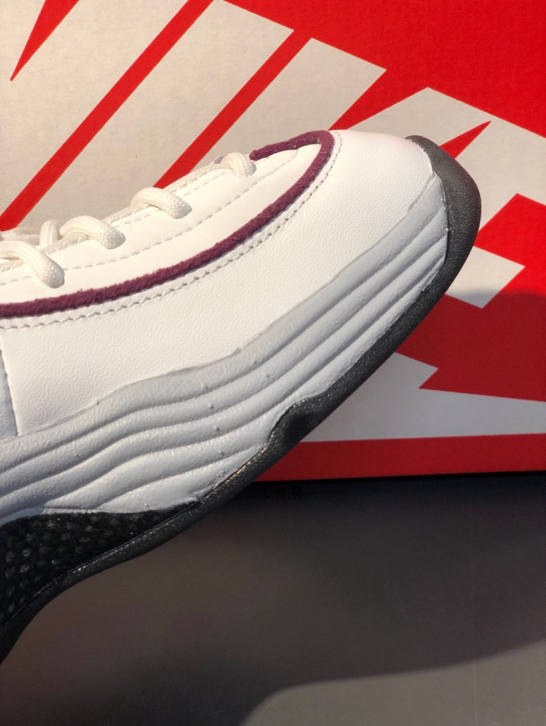 🎖白色鞋身,紫檀红和狼灰色点缀👀搭配原汁味复古鞋型,还是挺好看的 ⚡️波浪中底还延伸到鞋身确实挺醒目吸睛的内里包裹感好,刚穿有些偏硬,穿穿会好一点🏀 ⭐️鞋子挺适合秋冬穿搭的,皮革拼接材质还挺好打理 尺码和平时穿的球鞋一样,喜欢宽松一点的也可以大半码